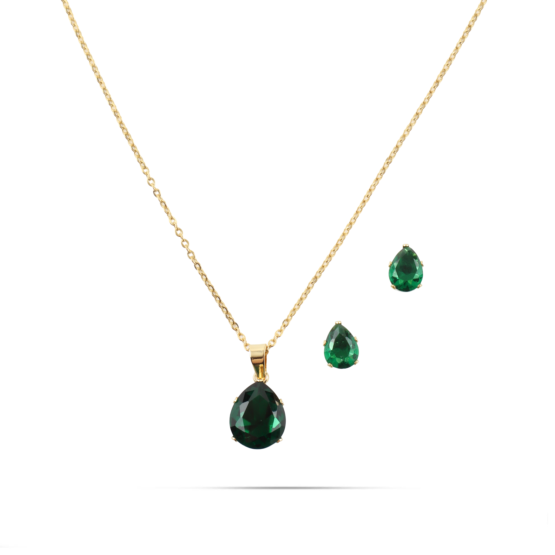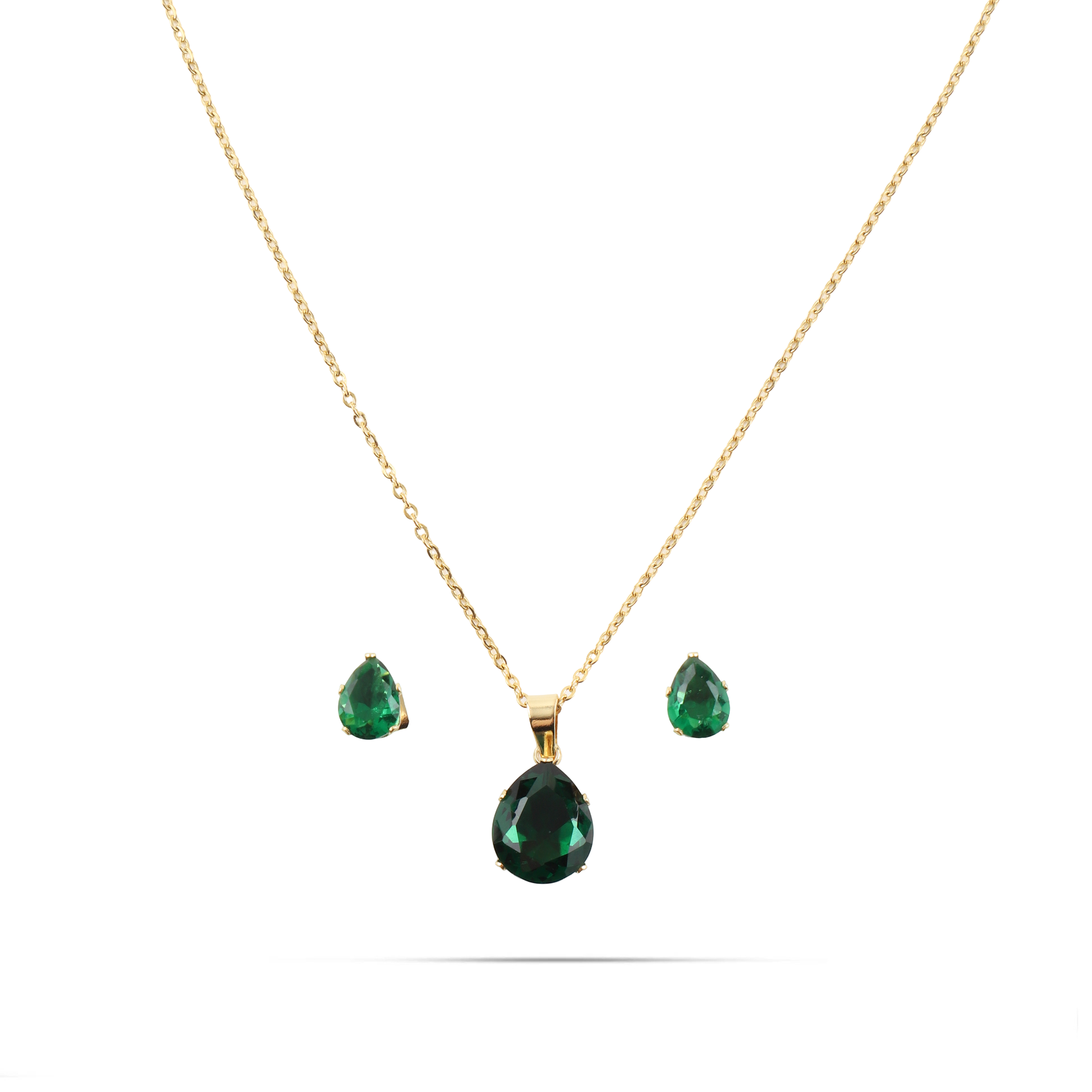 - Κολιέ και σκουλαρίκια με πέτρα ζιργκόν σε πράσινο χρώμα