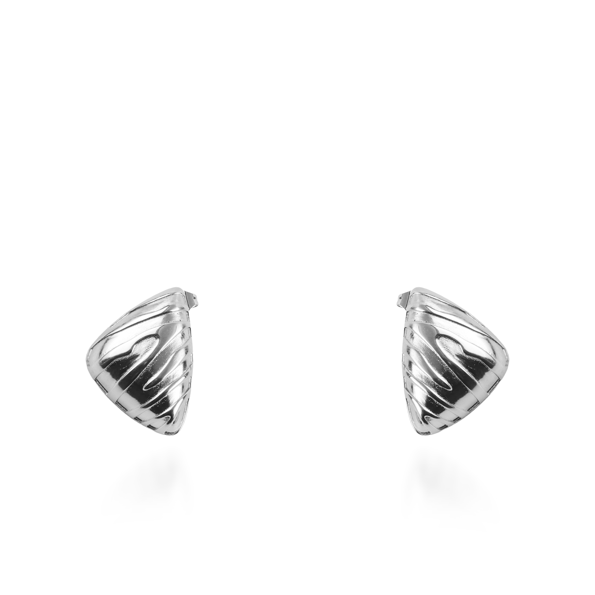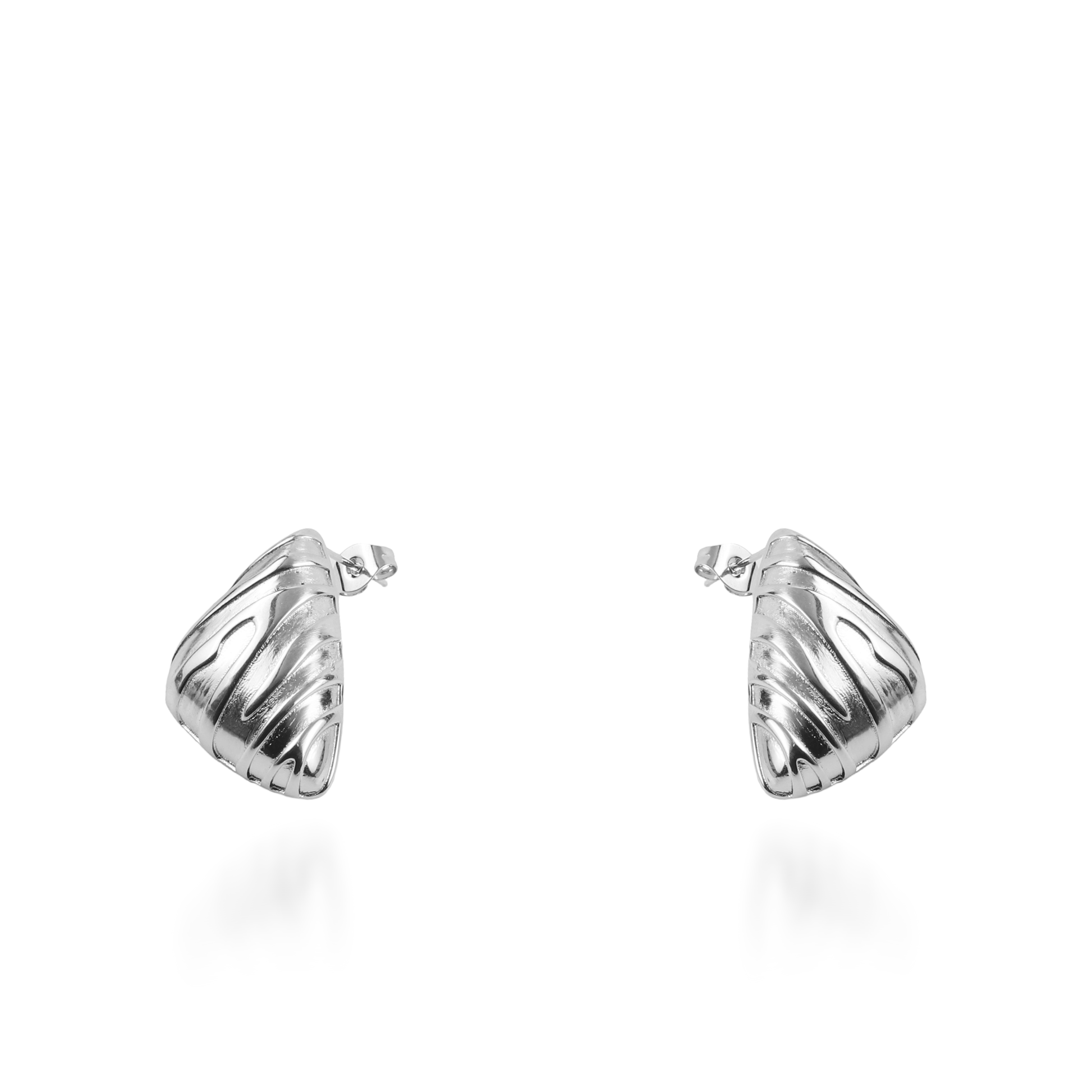 Τα σκουλαρίκια καρφωτά Mar and Mar Aminy σε ασημί χρώμα εντυπωσιάζουν με τον πρωτοποριακό, γεωμετρικό σχεδιασμό τους που παραπέμπει σε τρισδιάστατο πρίσμα. Οι έντονες, αρχιτεκτονικές τους γραμμές και η ανάγλυφη, ραβδωτή υφή στην επιφάνειά τους δημιουργούν ένα μοναδικό παιχνίδισμα με το φως, προσφέροντας έναν "sculptural" όγκο που μαγνητίζει το βλέμμα. Κατασκευασμένα από υψηλής ποιότητας ανοξείδωτο ατσάλι για μέγιστη ανθεκτικότητα και ψυχρή, καθαρή λάμψη, αποτελούν ένα τολμηρό statement κόσμημα με "edgy" χαρακτήρα, ιδανικό για να προσθέσετε μια πινελιά σύγχρονης τέχνης και δυναμισμού σε κάθε σας εμφάνιση. 💎