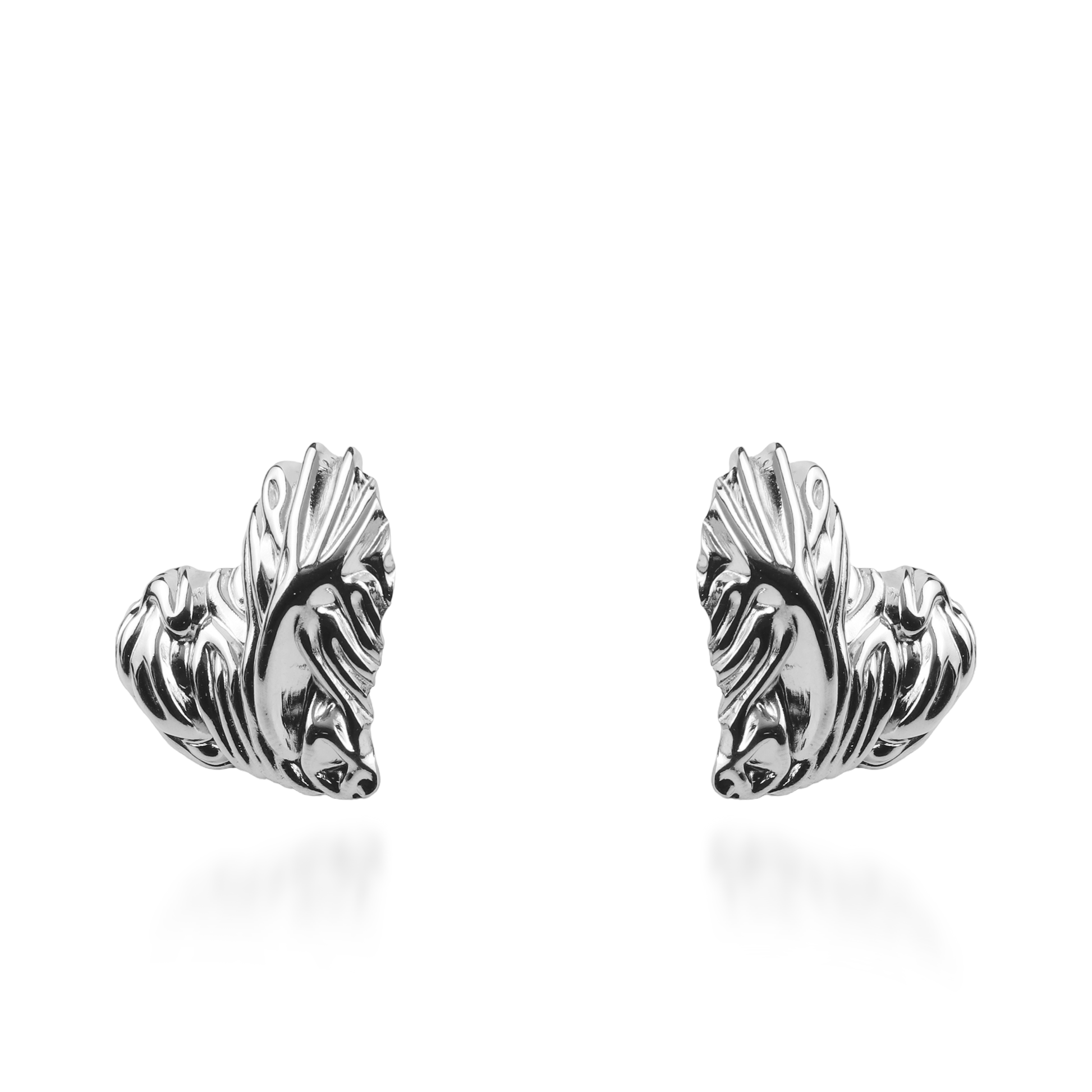 Τα σκουλαρίκια καρφωτά Mar and Mar Kalanthe σε ασημί χρώμα αποτελούν ένα άκρως εντυπωσιακό statement κόσμημα, με τον επιβλητικό τους σχεδιασμό σε σχήμα καρδιάς και το μεγάλο τους μέγεθος να μαγνητίζουν το βλέμμα. Η έντονη ανάγλυφη υφή τους, που θυμίζει ρέον μέταλλο ή σμιλεμένο φτερό, δημιουργεί ένα μοναδικό τρισδιάστατο εφέ και ένα δυναμικό παιχνίδισμα με το φως, προσφέροντας έναν αέρα "high fashion" και καλλιτεχνικής δημιουργίας.