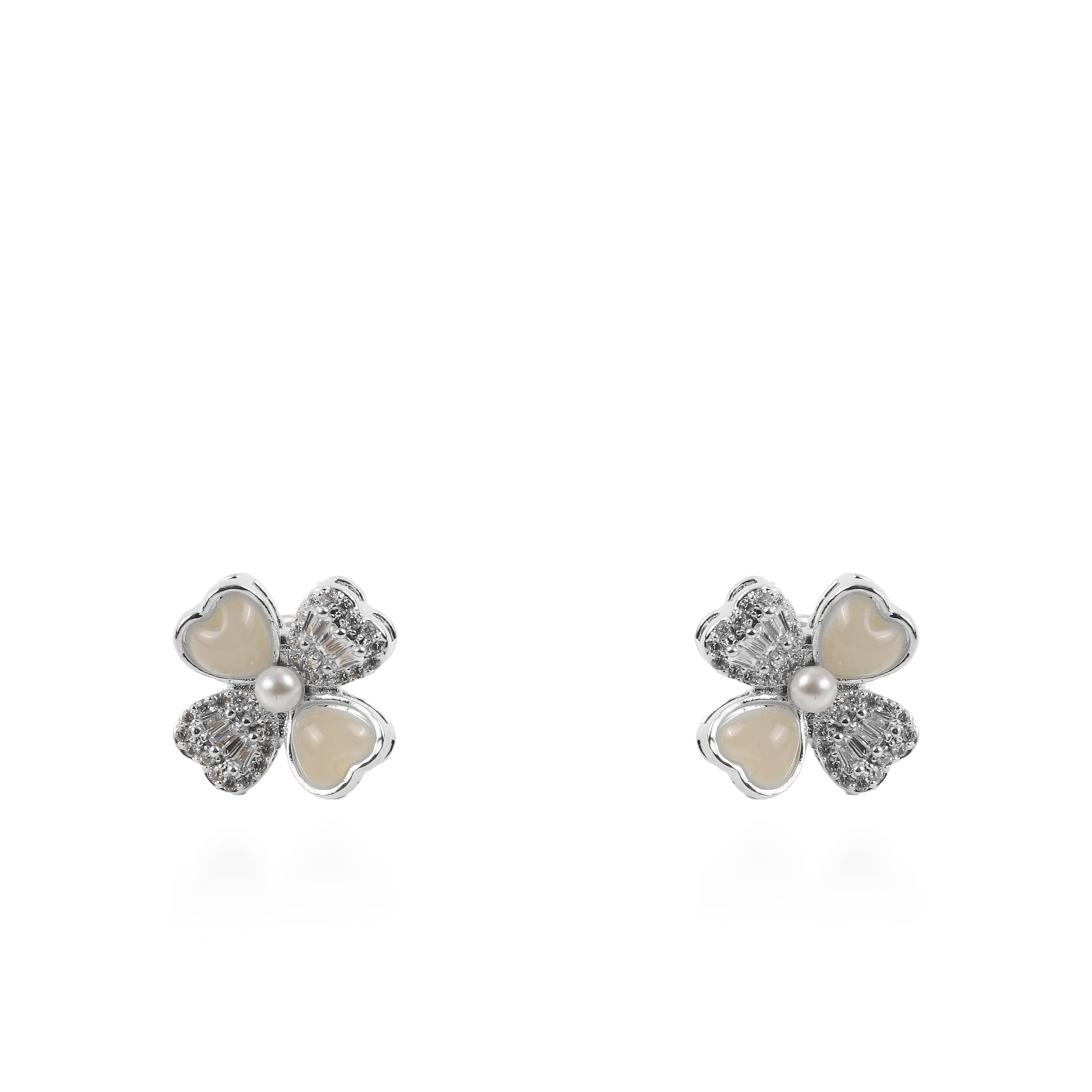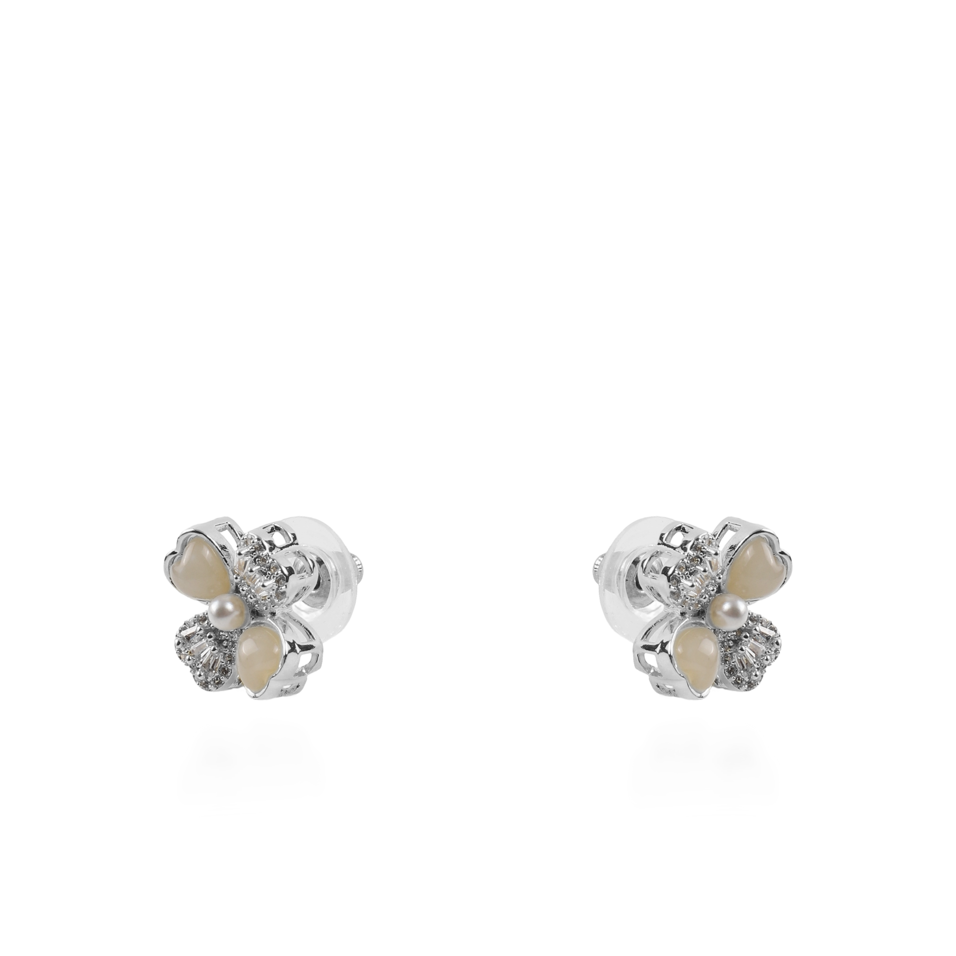 Σκουλαρίκια καρφωτά λουλούδια με ζιργκόν και πέρλες Mar and Mar Loire (Silver)