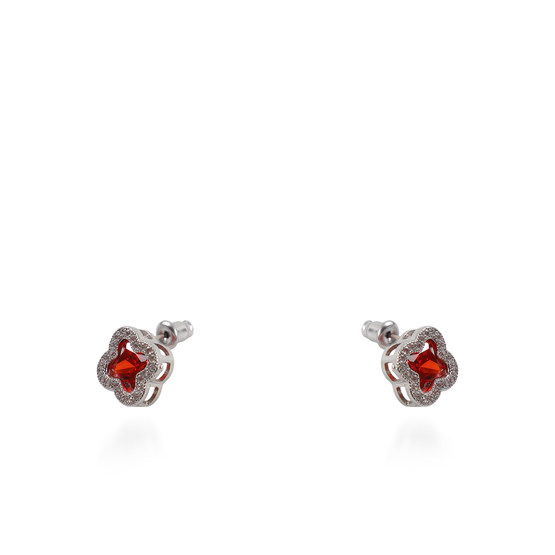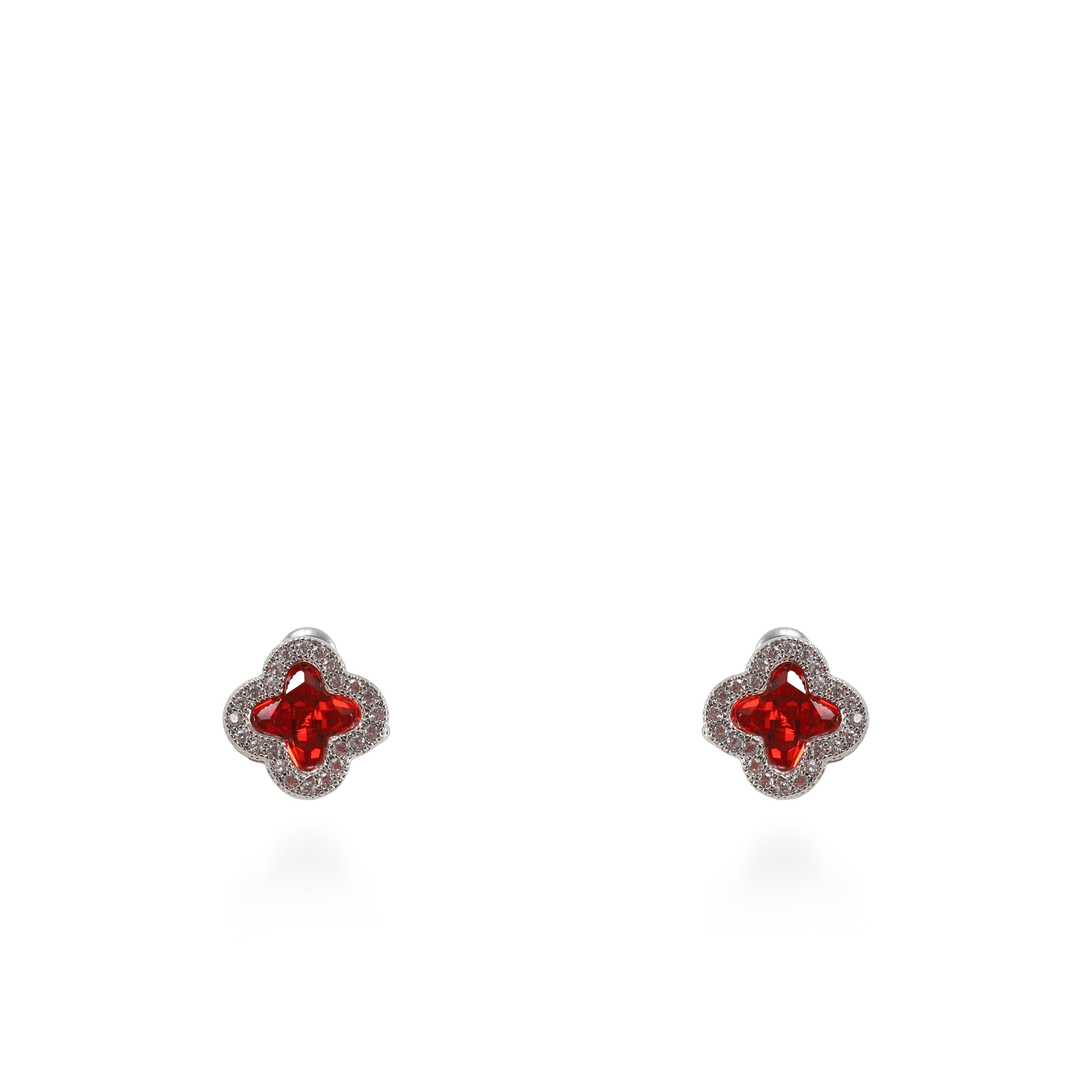 Σκουλαρίκια καρφωτά με ζιργκόν Mar and Mar Clover (Red)