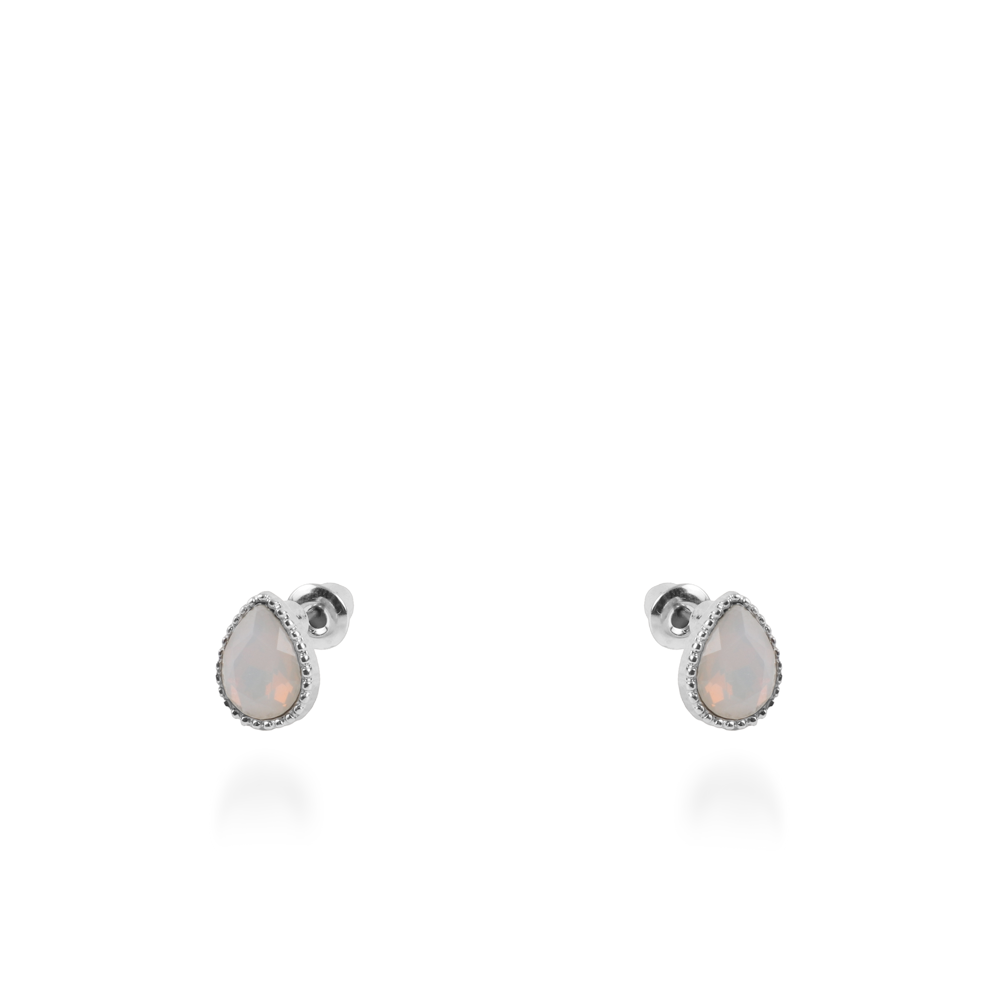 Σκουλαρίκια καρφωτά με ζιργκόν Mar and Mar Teardrops Studs (Pearl White) από ανοξείδωτο ατσάλι