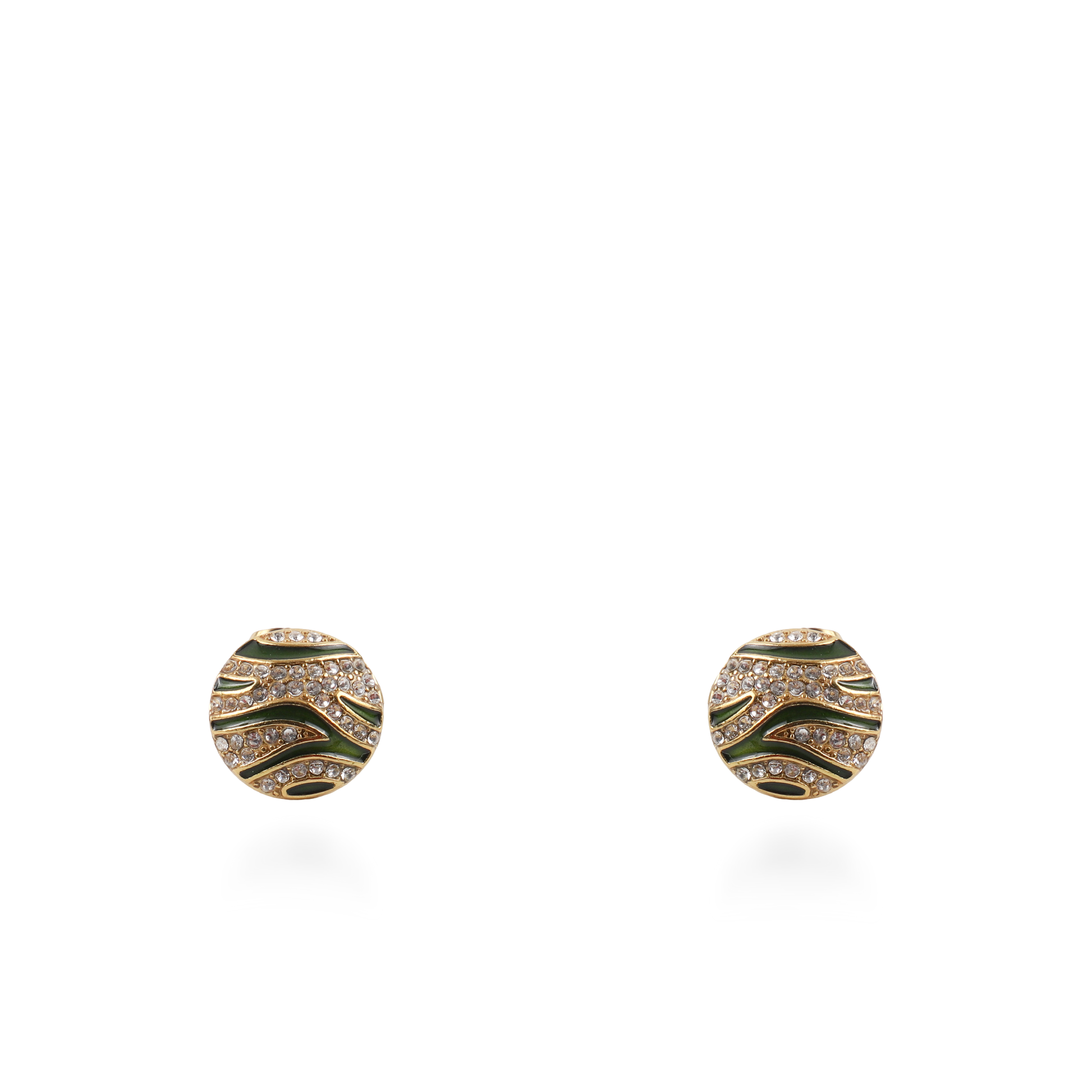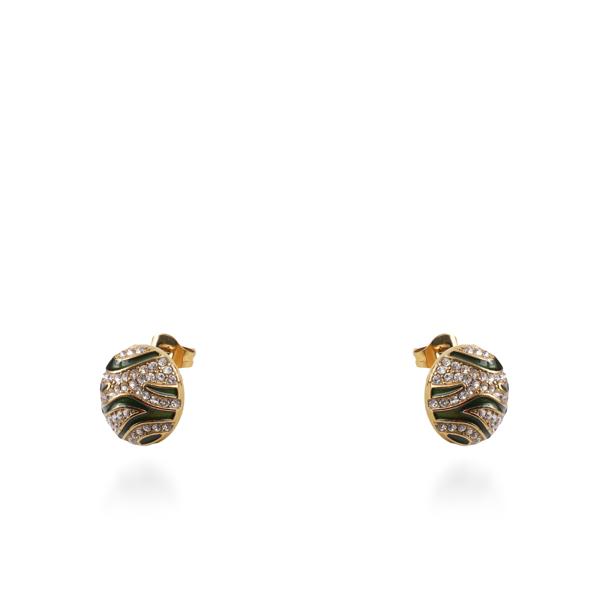 Τα σκουλαρίκια Mar and Mar Zaya σε χρυσή απόχρωση με πράσινο σμάλτο αποτελούν έναν ύμνο στην "exotic chic" αισθητική. Κατασκευασμένα από υψηλής ποιότητας ανοξείδωτο ατσάλι, ξεχωρίζουν για τον ανάγλυφο σχεδιασμό τους που θυμίζει οργανικά μοτίβα της φύσης. Οι εναλλαγές ανάμεσα στις σειρές από αστραφτερά ζιργκόν και το βαθύ πράσινο σμάλτο δημιουργούν μια εντυπωσιακή αντίθεση, προσδίδοντας έναν "luxury wild" χαρακτήρα. Είναι το ιδανικό "statement" αξεσουάρ για τη γυναίκα που αναζητά ένα κόσμημα με προσωπικότητα και διαχρονική χρυσή λάμψη. 🌿✨