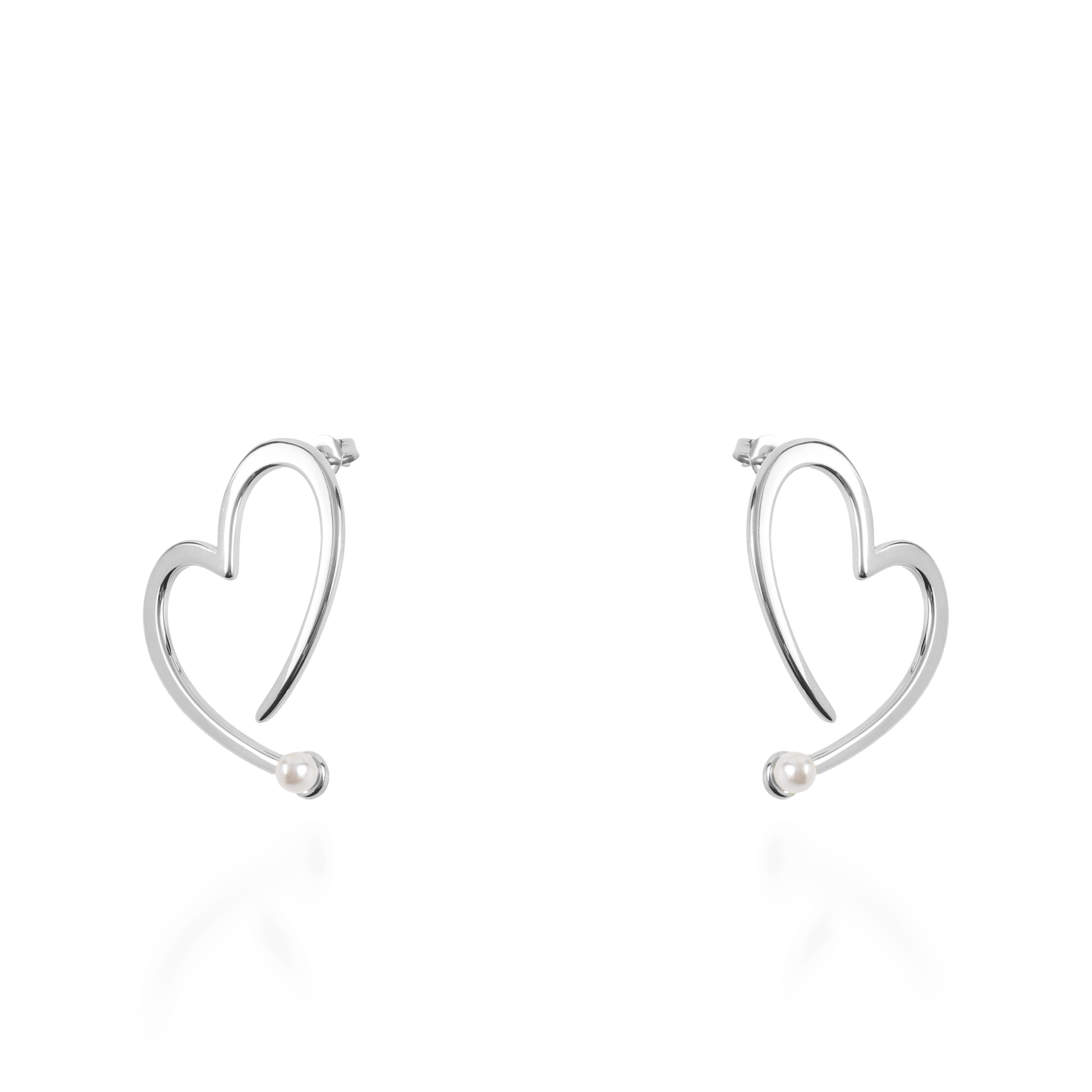 Σκουλαρίκια καρφωτά Mar and Mar Hearts Pearl Silver από ανοξείδωτο ατσάλι