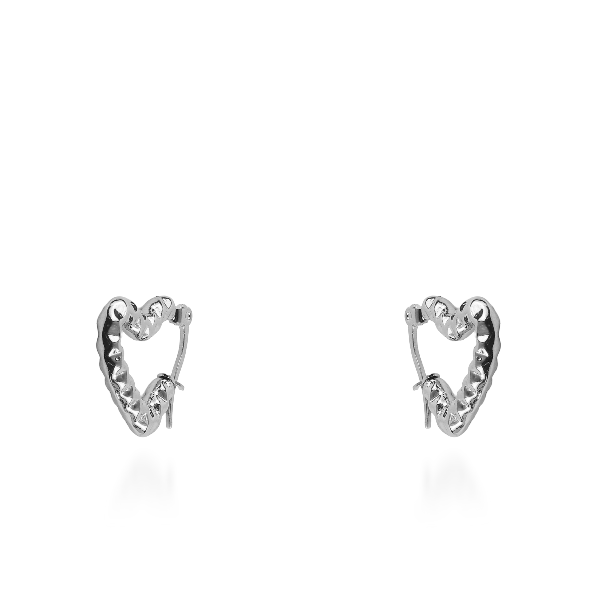 Τα σκουλαρίκια κρίκοι Mar and Mar Amary σε ασημί χρώμα επαναπροσδιορίζουν τον ρομαντισμό με μια σύγχρονη, αρχιτεκτονική ματιά, καθώς ο σχεδιασμός τους σχηματίζει μια διακριτική και κομψή καρδιά. Η έντονη ανάγλυφη υφή τους, που θυμίζει σφυρήλατο μέταλλο, δημιουργεί ένα εντυπωσιακό παιχνίδισμα με το φως και μια αίσθηση «industrial chic» πολυτέλειας. Κατασκευασμένα από υψηλής ποιότητας ανοξείδωτο ατσάλι για μέγιστη ανθεκτικότητα και ψυχρή, καθαρή λάμψη, αποτελούν ένα μοναδικό statement κόσμημα που συνδυάζει τον δυναμισμό με τη θηλυκότητα, ιδανικό για να προσθέσετε χαρακτήρα σε κάθε σας εμφάνιση. 💎