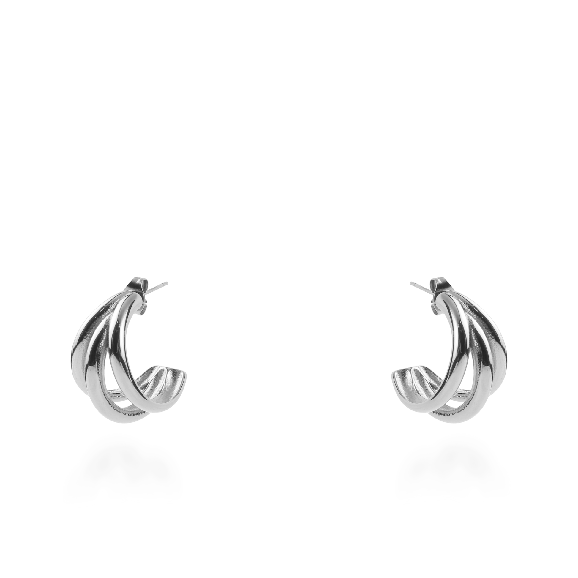 Σκουλαρίκια κρίκοι με τριπλό σχέδιο Mar and Mar Ulina (2 cm) Silver από ανοξείδωτο ατσάλι