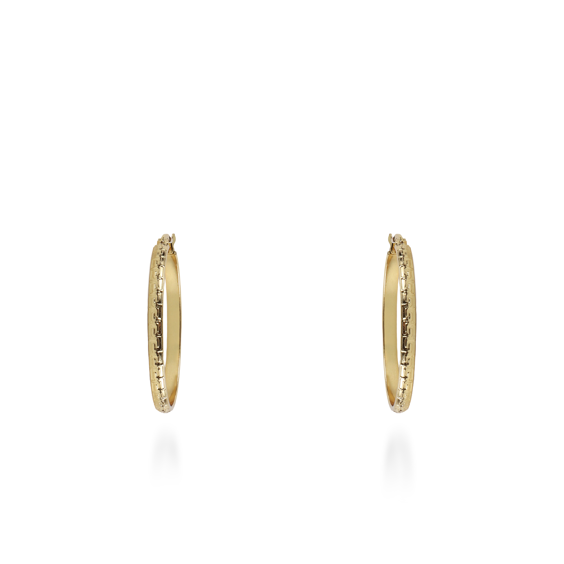 Τα σκουλαρίκια κρίκοι Mar and Mar Acrol σε χρυσό χρώμα είναι μια εκλεπτυσμένη επιλογή που συνδυάζει κομψότητα και μοντέρνο στυλ. Κατασκευασμένα από ανθεκτικό ανοξείδωτο ατσάλι, διαθέτουν διάμετρο 3,5 cm και ανάγλυφο φινίρισμα που προσθέτει λάμψη και χαρακτήρα.