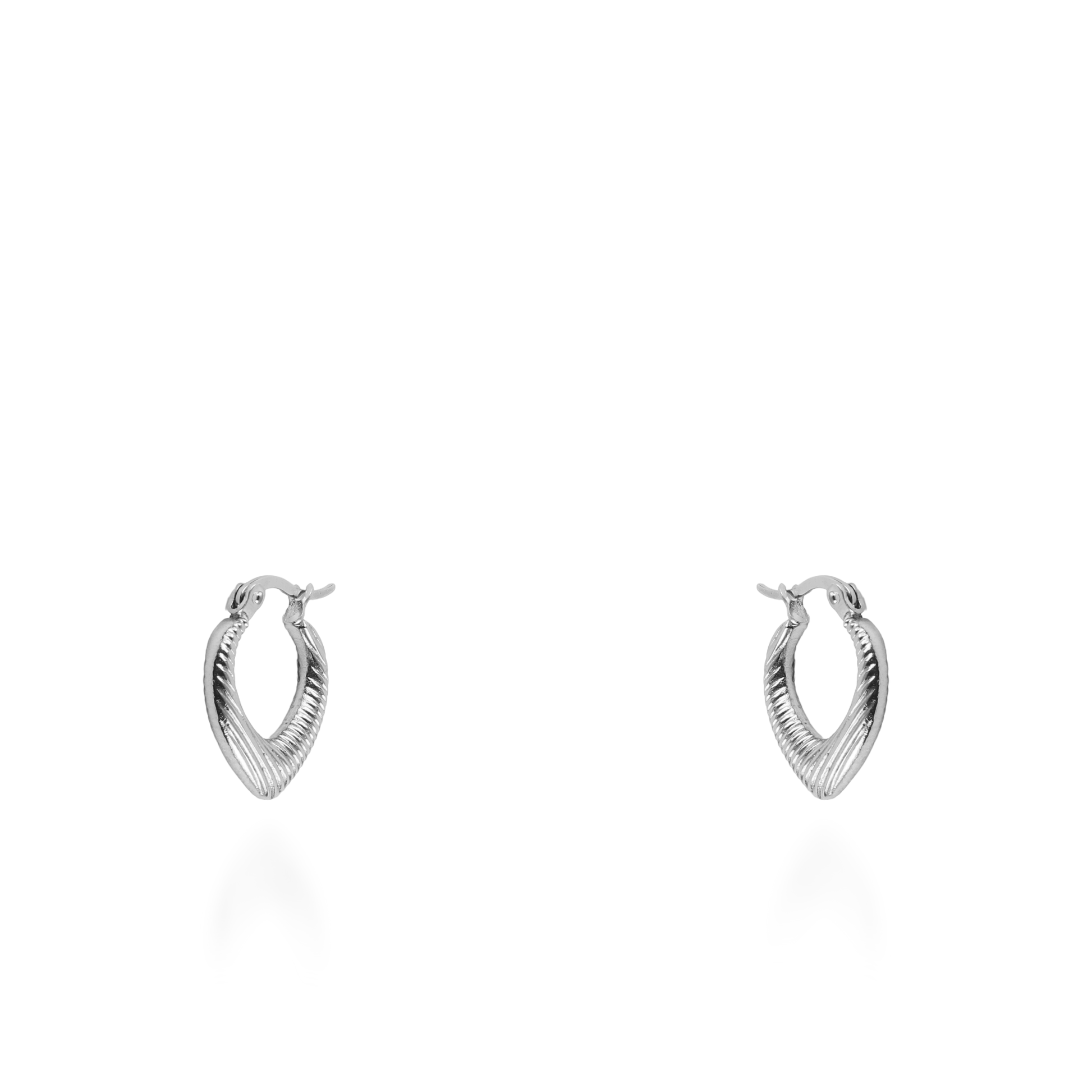 Τα σκουλαρίκια κρίκοι Mar and Mar Eline σε ασημί χρώμα ξεχωρίζουν για τον ιδιαίτερο, "heart-shaped" σχεδιασμό τους, που συνδυάζει τον ρομαντισμό με μια σύγχρονη, αρχιτεκτονική ματιά. Η ανάγλυφη, ραβδωτή τους επιφάνεια δημιουργεί ένα δυναμικό παιχνίδισμα με το φως, προσφέροντας βάθος και έναν σοφιστικέ χαρακτήρα που ξεφεύγει από τους κλασικούς κρίκους. Κατασκευασμένα από υψηλής ποιότητας ανοξείδωτο ατσάλι για μέγιστη ανθεκτικότητα και ψυχρή, κρυστάλλινη λάμψη, αποτελούν ένα minimal αλλά ταυτόχρονα statement αξεσουάρ, ιδανικό για να προσθέσετε μια νότα εκλεπτυσμένης πολυτέλειας και δυναμισμού σε κάθε σας εμφάνιση. 💎