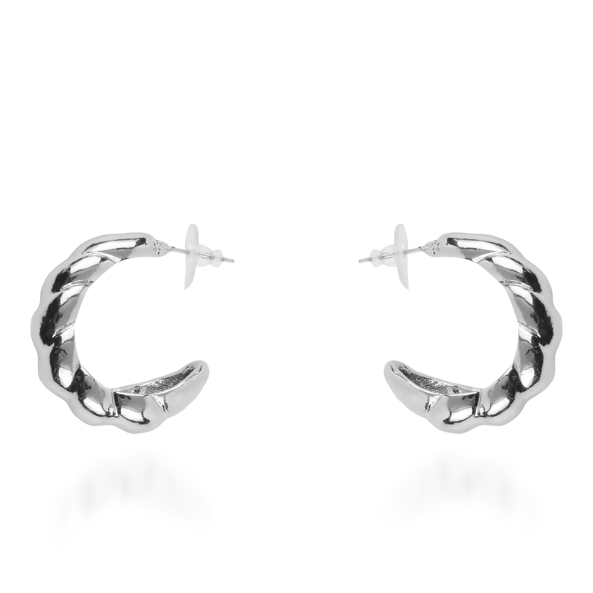 Τα σκουλαρίκια κρίκοι Mar and Mar Kaly σε ασημί χρώμα αποτελούν ένα δυναμικό statement κόσμημα, με τον επιβλητικό όγκο και τον περίτεχνο "twisted" σχεδιασμό τους να κλέβουν τις εντυπώσεις. Οι μεγάλες, ανάγλυφες σπείρες τους δημιουργούν ένα παιχνίδισμα με το φως και τις σκιές, προσφέροντας μια αίσθηση κίνησης και σύγχρονης πολυτέλειας. Κατασκευασμένα από ανοξείδωτο ατσάλι υψηλής ποιότητας για μέγιστη ανθεκτικότητα και λάμψη που παραμένει αναλλοίωτη στον χρόνο, συνδυάζουν την "bold" αισθητική με την κλασική κομψότητα, αποτελώντας την ιδανική επιλογή για να αναβαθμίσετε κάθε σας εμφάνιση με έναν αέρα αυτοπεποίθησης και φινέτσας. 💎