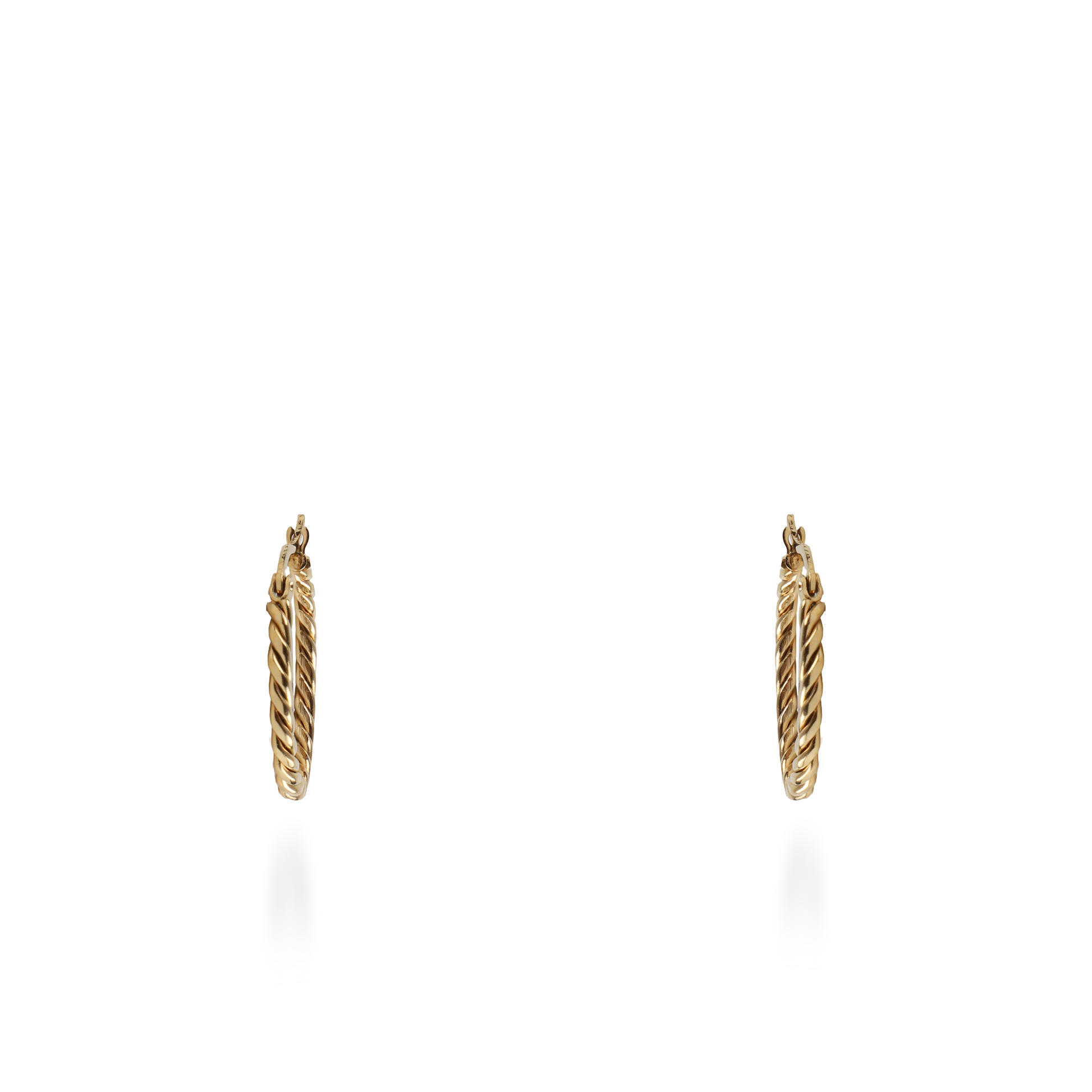 Σκουλαρίκια κρίκοι από ανοξείδωτο ατσάλι σε εκλεπτυσμένο χρυσό χρώμα, με μοναδικό στριφογυριστό σχέδιο που προσθέτει λάμψη και μοντέρνο χαρακτήρα σε κάθε εμφάνιση. Η ανθεκτική κατασκευή τους εξασφαλίζει μακροχρόνια χρήση, ενώ η ζεστή χρυσή απόχρωση τα καθιστά ιδανικά για καθημερινή χρήση και ειδικές περιστάσεις. Ένα κομψό και εντυπωσιακό κόσμημα που ολοκληρώνει με στυλ κάθε σας look.