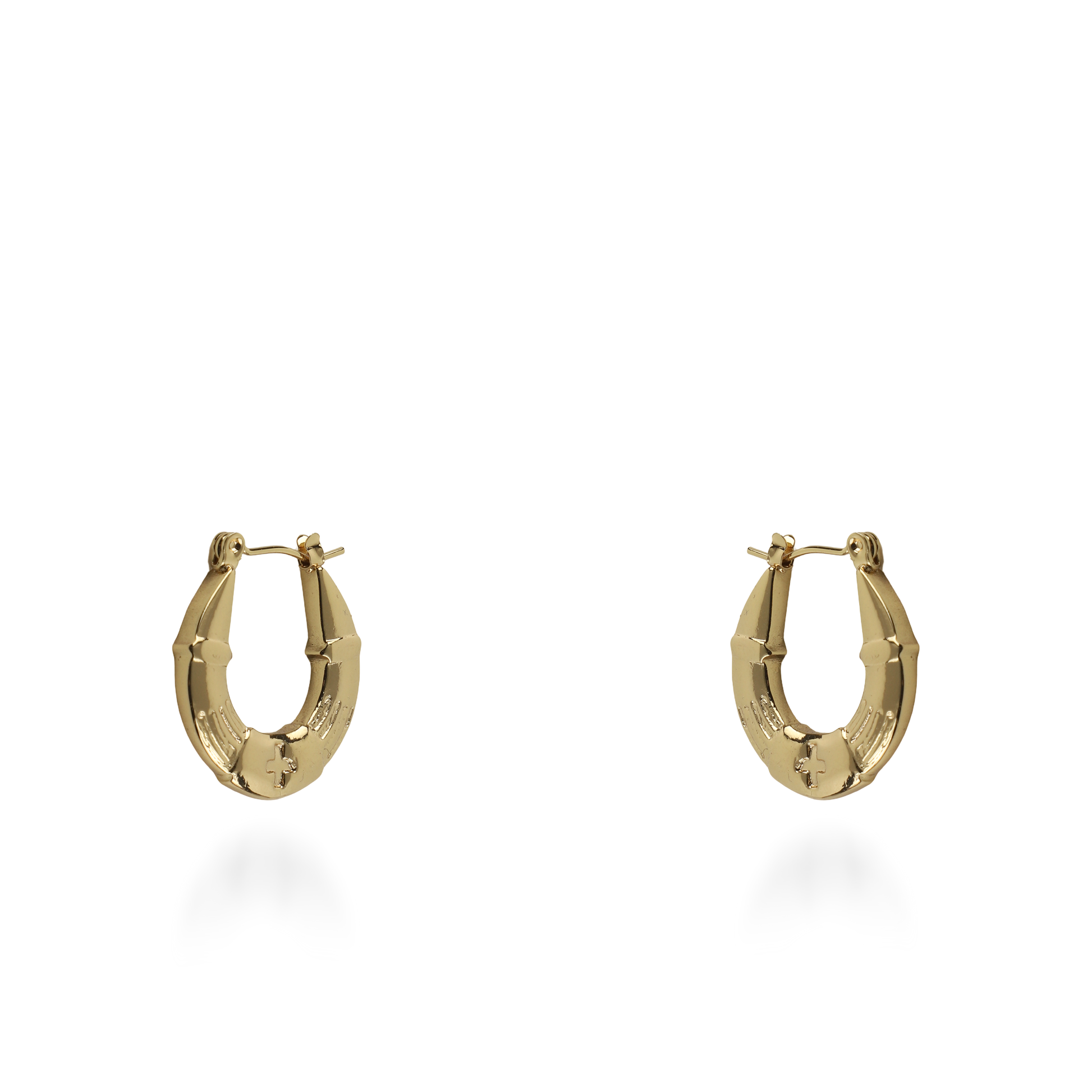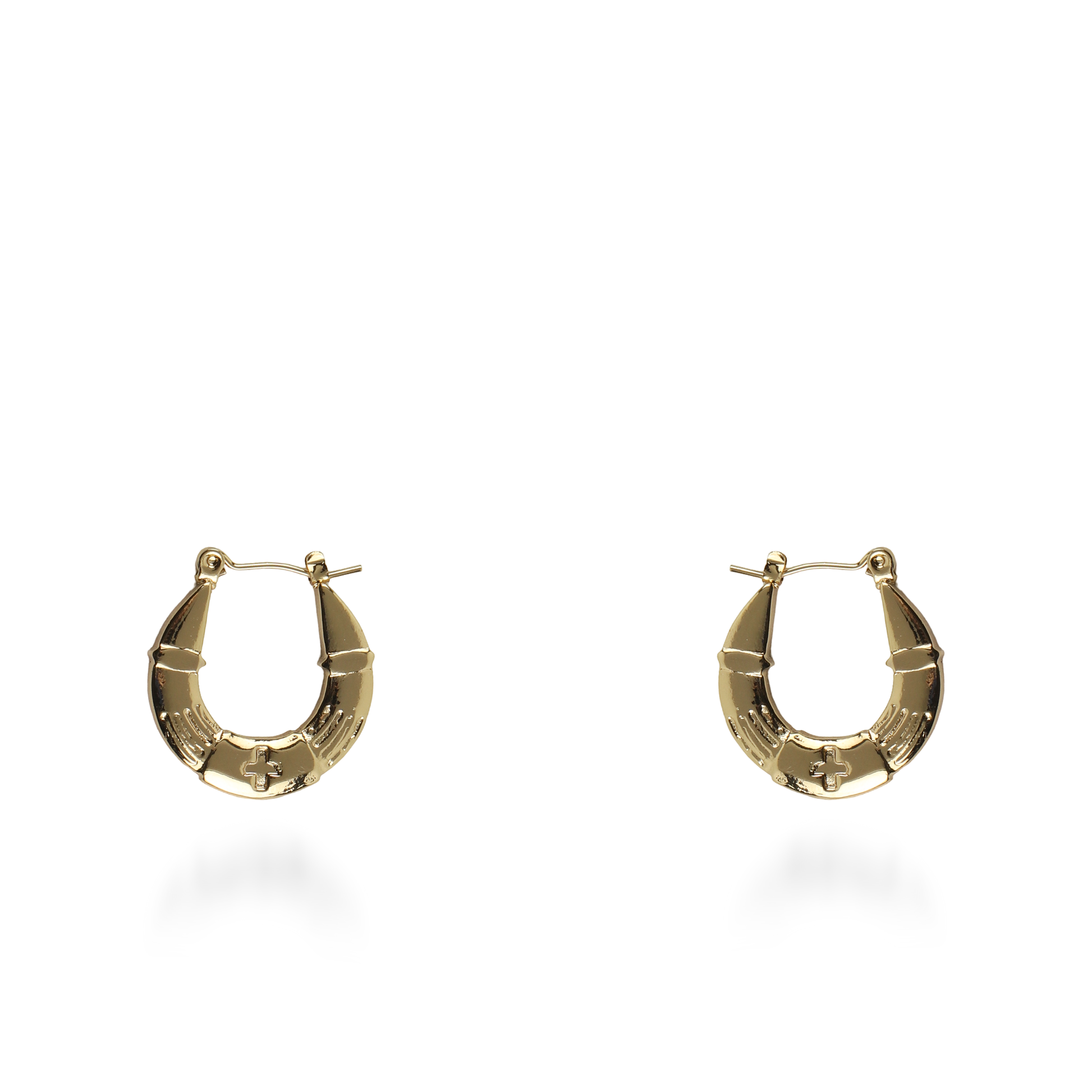 Τα σκουλαρίκια κρίκοι Mar and Mar Zeny σε χρυσό χρώμα ξεχωρίζουν για τον επιβλητικό, αρχιτεκτονικό τους σχεδιασμό που συνδυάζει την "industrial" αισθητική με τη διαχρονική αίγλη των κρίκων. Η ιδιαίτερη, πομπέ επιφάνειά τους με τις ανάγλυφες λεπτομέρειες και το κεντρικό "cross" μοτίβο δημιουργεί ένα δυναμικό παιχνίδισμα με το φως, προσφέροντας έναν "sculptural" όγκο που μαγνητίζει το βλέμμα. Κατασκευασμένα από υψηλής ποιότητας ανοξείδωτο ατσάλι για μέγιστη ανθεκτικότητα και αναλλοίωτη λάμψη, αποτελούν ένα τολμηρό statement αξεσουάρ, ιδανικό για να προσθέσετε έναν αέρα σύγχρονης πολυτέλειας και δυναμικού στυλ σε κάθε σας εμφάνιση. ✨