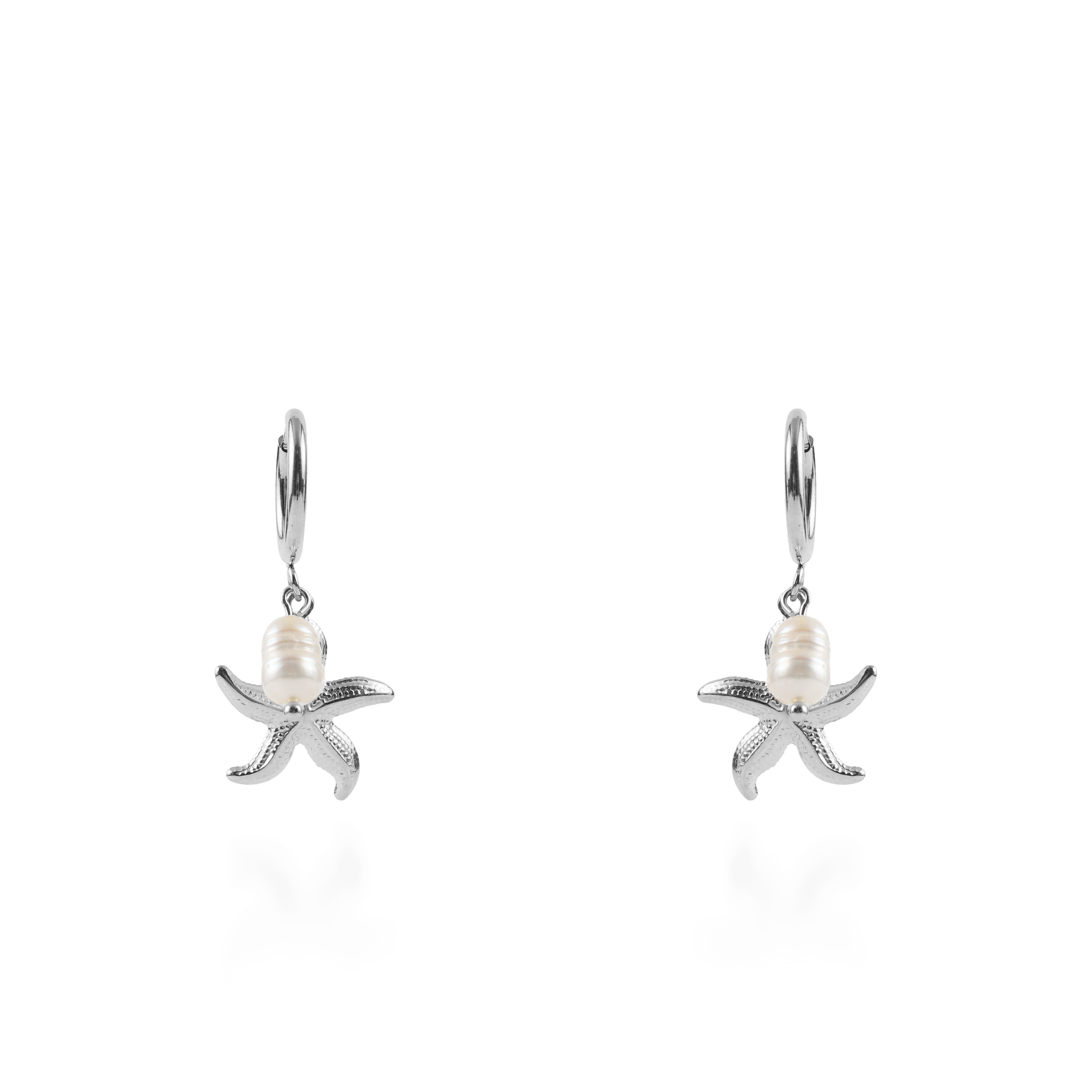 Σκουλαρίκια κρεμαστά με πέρλες Mar and Mar Irida Starfish Silver από ανοξείδωτο ατσάλι