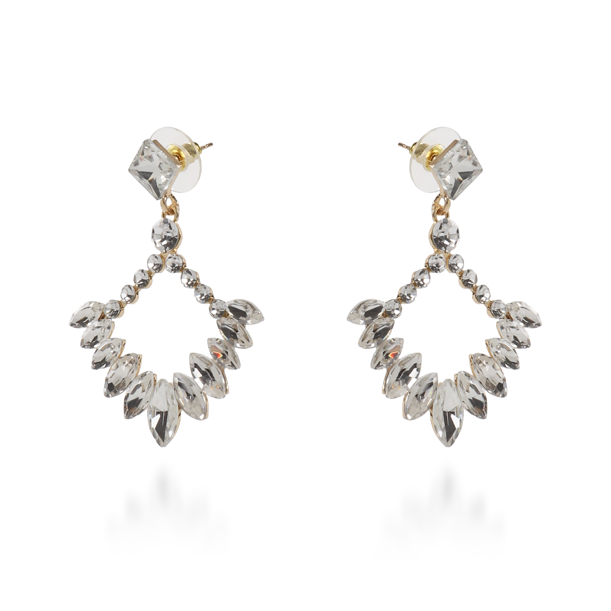 Σκουλαρίκια κρεμαστά από ορείχαλκο σε ασημί χρώμα, διακοσμημένα με λαμπερές πέτρες Zircon σε σχήμα ρόμβου, που προσφέρουν εκθαμβωτική λάμψη και κομψότητα. Αυτό το κόσμημα προσθέτει μία διακριτική αλλά εντυπωσιακή πινελιά στο στυλ σας, ενώ η σχεδίασή του τα καθιστά ιδανικά για καθημερινή χρήση αλλά και για βραδινές εξόδους. Ένα εκλεπτυσμένο κόσμημα που ολοκληρώνει κάθε εμφάνιση με φινέτσα και λάμψη.