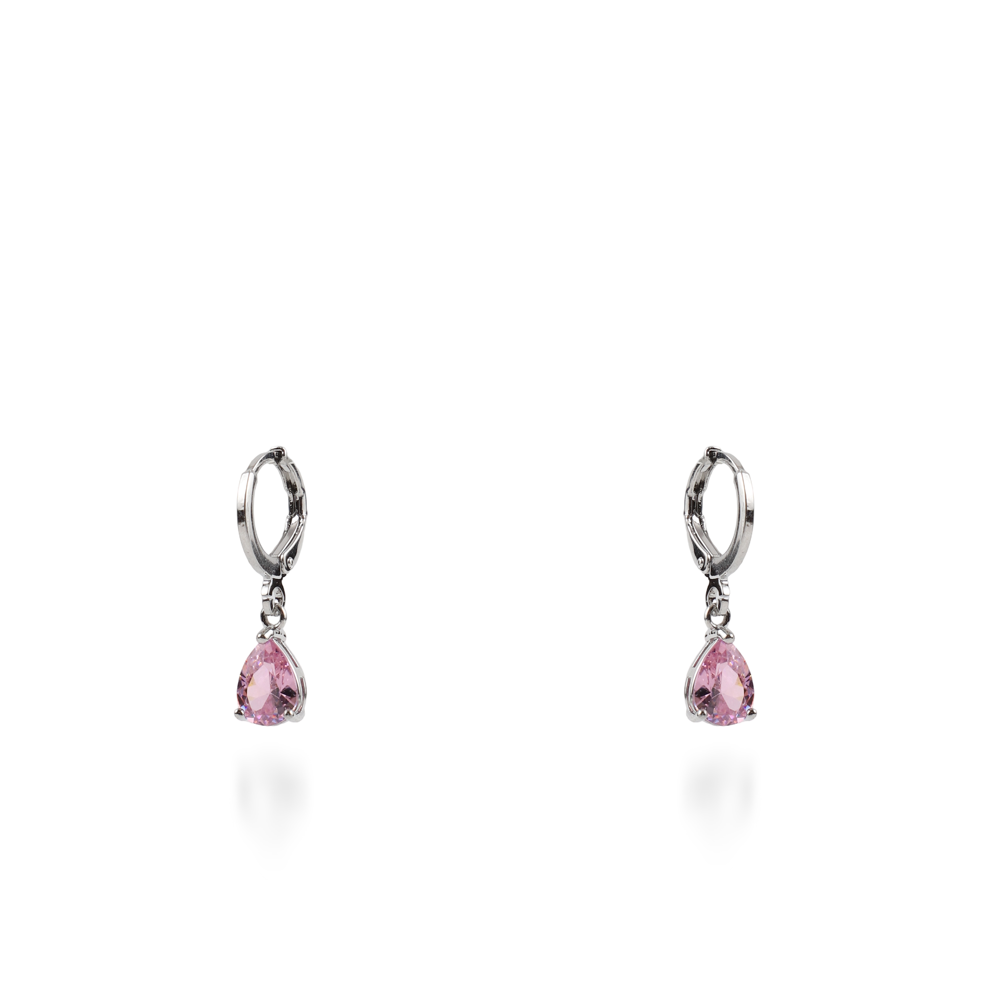 Σκουλαρίκια κρεμαστά με πέτρες ζιργκόν Mar and Mar Quilly Silver (Pink)