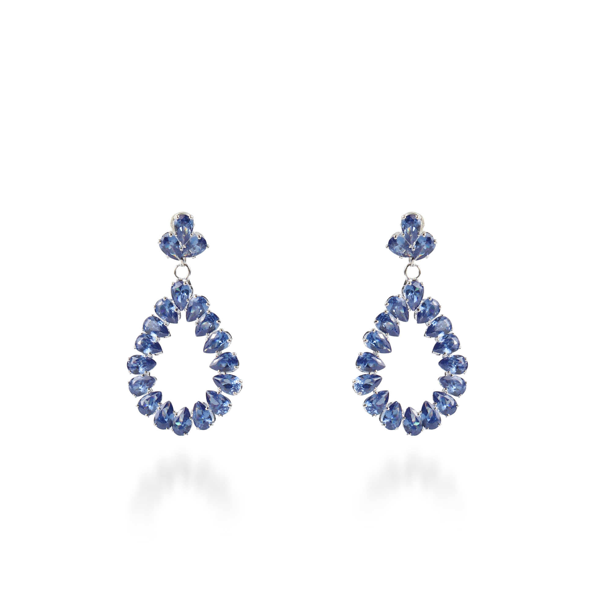 Σκουλαρίκια κρεμαστά σε σχήμα δάκρυ, διακοσμημένα με λαμπερές μπλε πέτρες Zircon, μια εκθαμβωτική επιλογή που χαρίζει κομψότητα και λάμψη σε κάθε σας εμφάνιση. Το διακριτικό τους σχέδιο σε συνδυασμό με τη βαθιά μπλε απόχρωση δημιουργεί ένα εντυπωσιακό και αριστοκρατικό αποτέλεσμα, ιδανικό για να φωτίσει το πρόσωπό σας. Αυτά τα σκουλαρίκια είναι η τέλεια επιλογή για επίσημες περιστάσεις και ιδιαίτερες εμφανίσεις όπου θέλετε να εντυπωσιάσετε με στυλ και φινέτσα.
