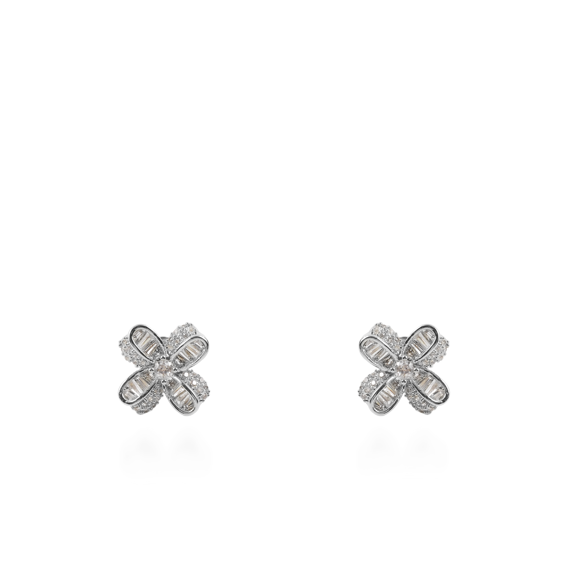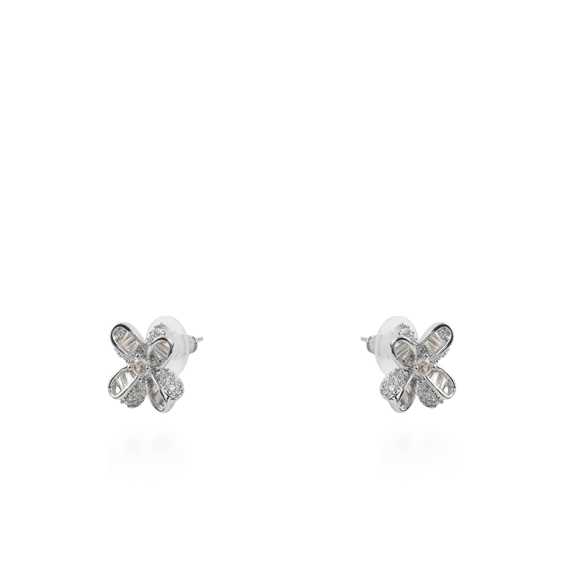 Σκουλαρίκια λουλούδια καρφωτά με ζιργκόν Mar and Mar Lirena (Sliver)