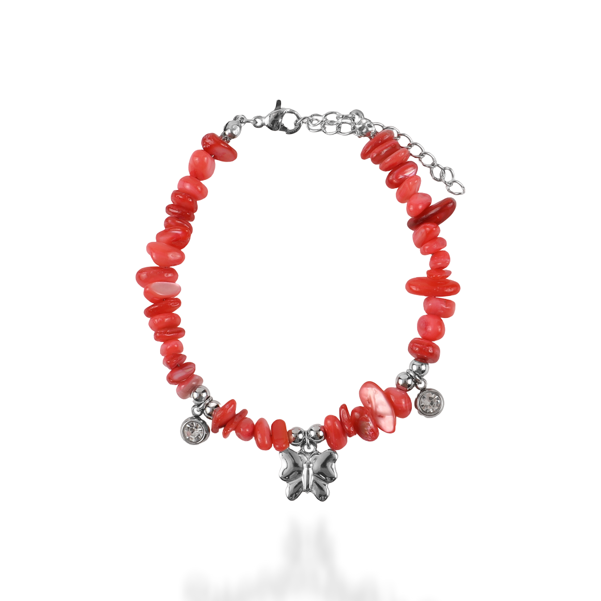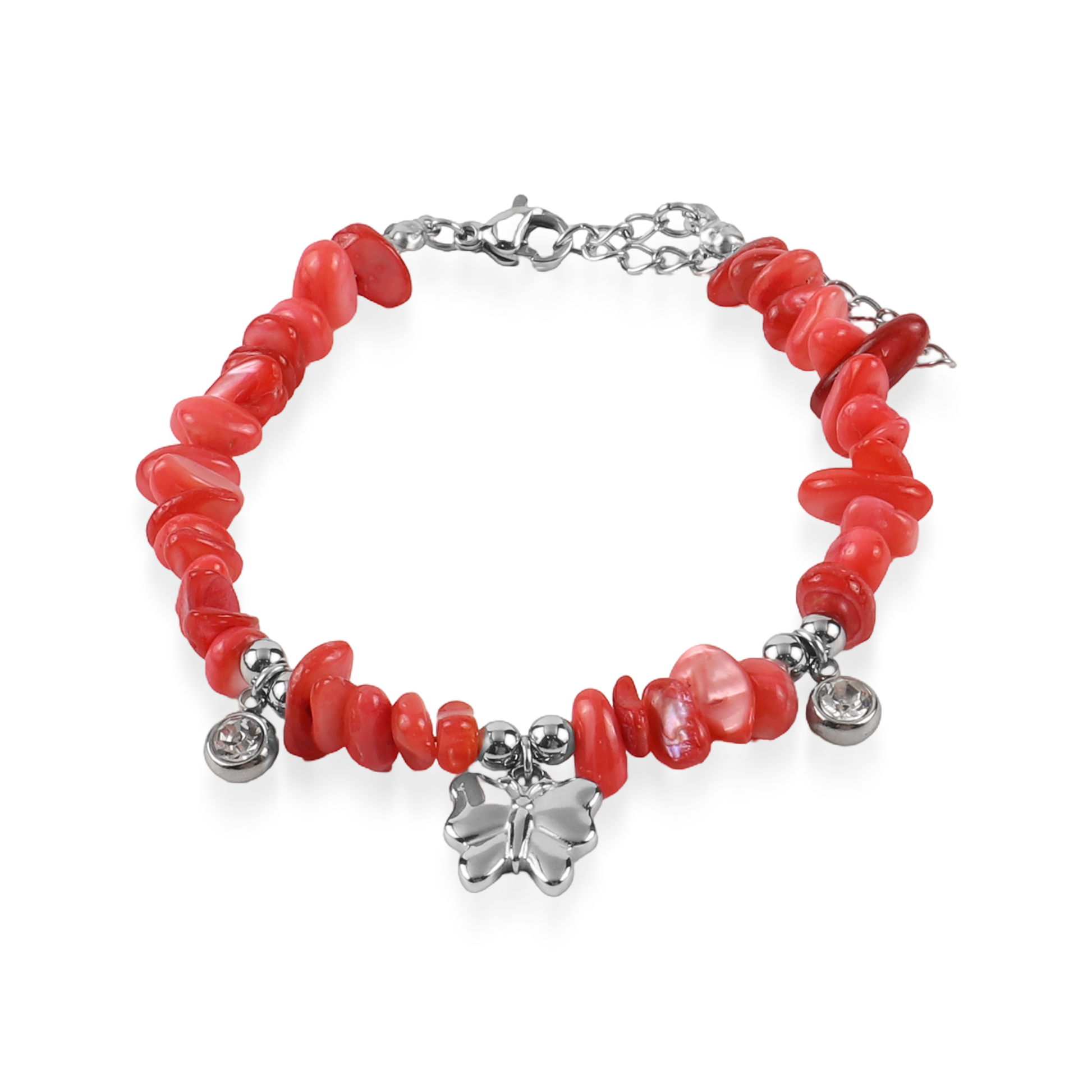 Χειροποίητο βραχιόλι με φυσικά κοράλια Mar and Mar Naida (Red) από ανοξείδωτο ατσάλι