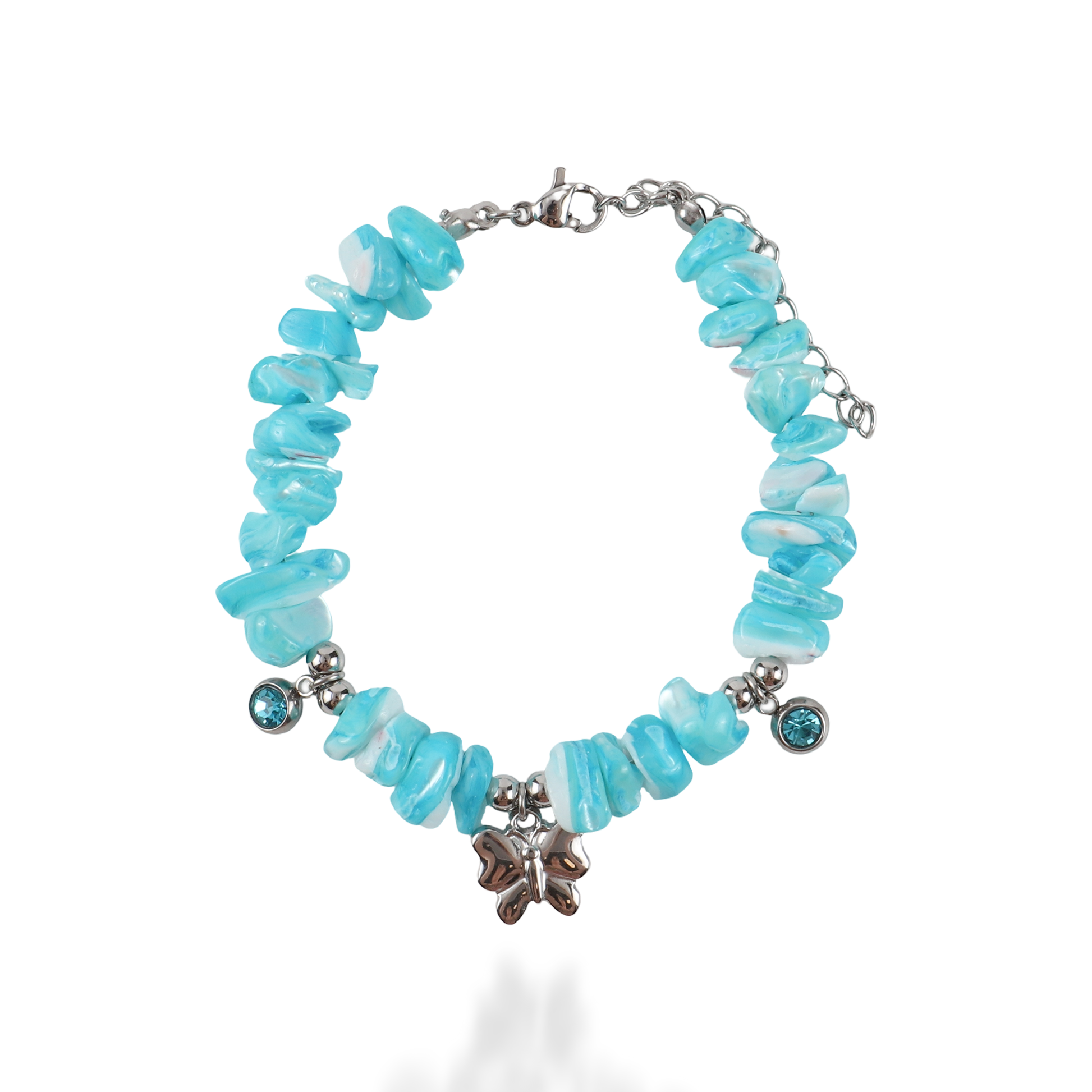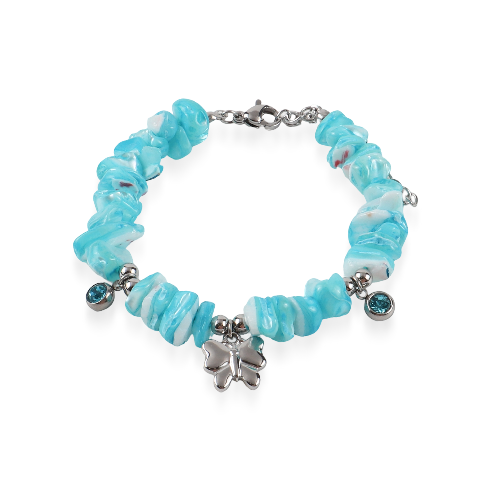 Χειροποίητο βραχιόλι με φυσικά κοράλια Mar and Mar Naida Silver (Light Blue) από ανοξείδωτο ατσάλι