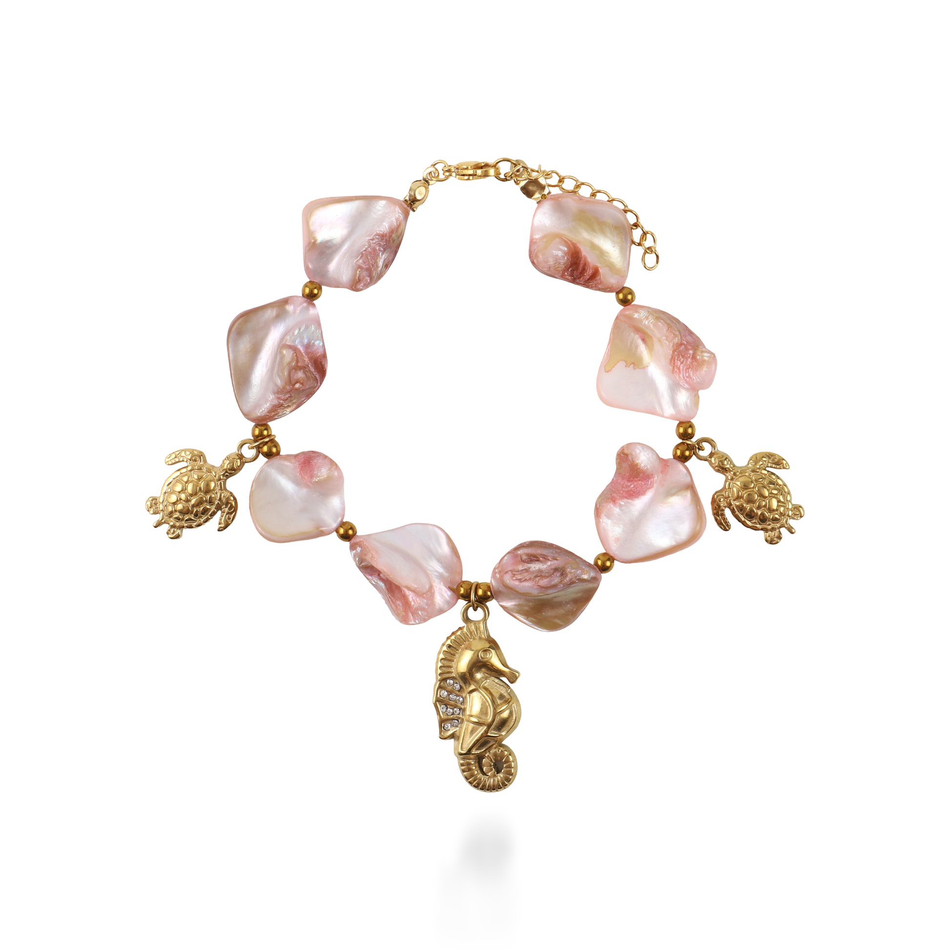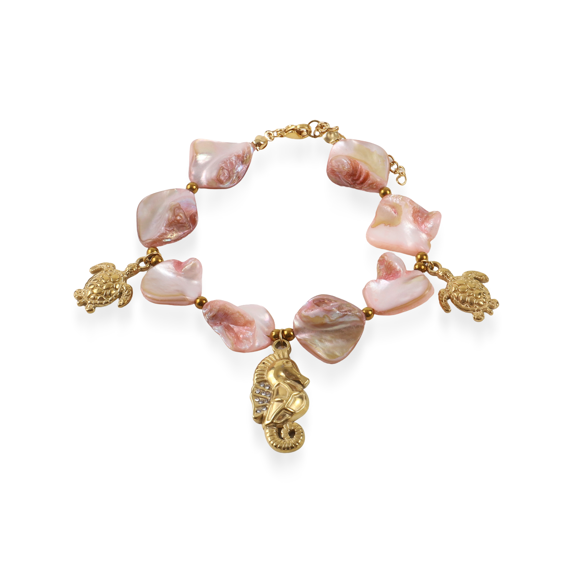 Χειροποίητο βραχιόλι με φυσικά κοχύλια/κοράλια Mar and Mar Coralia (Pink) από ανοξείδωτο ατσάλι