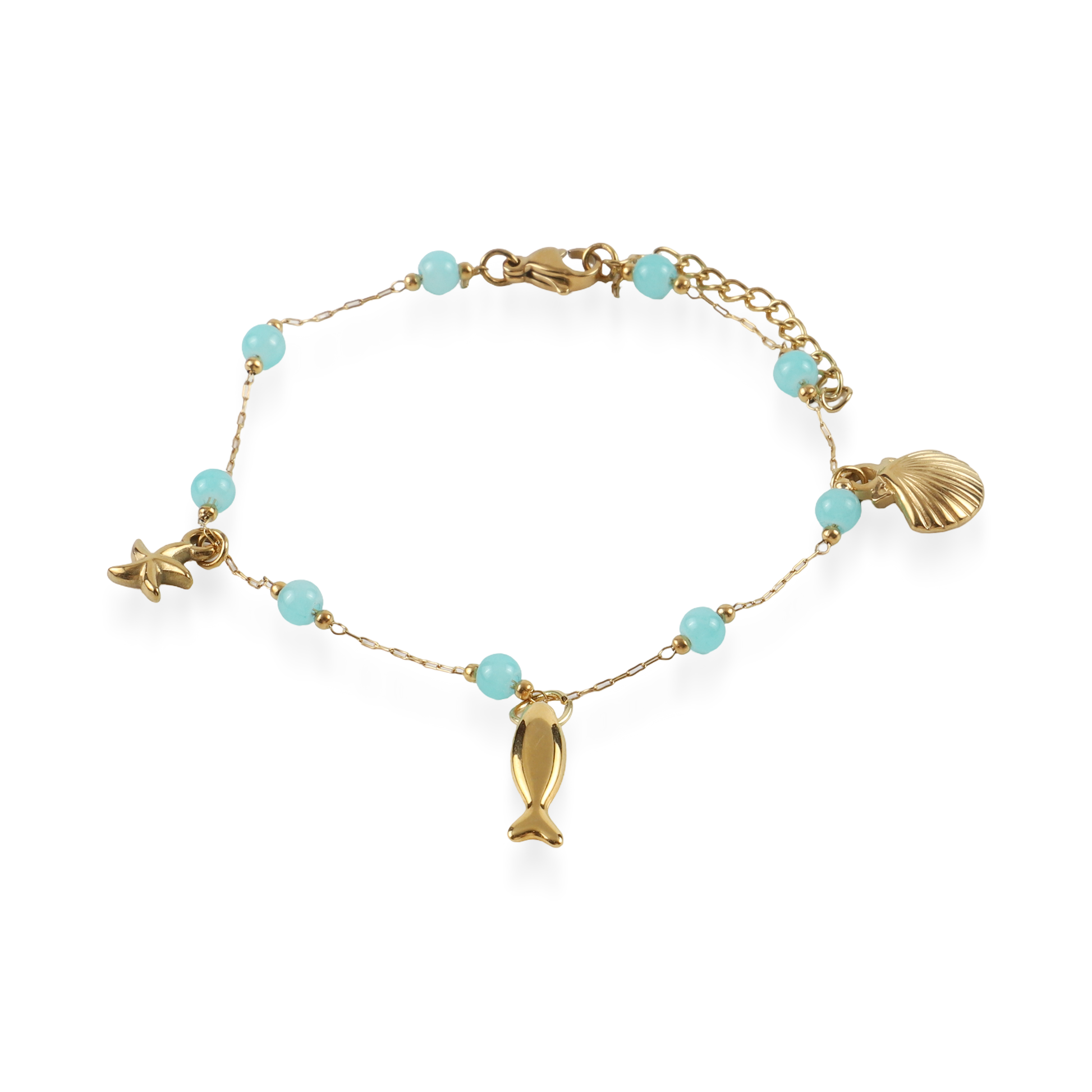 Χειροποίητο βραχιόλι με χάντρες Mar and Mar Aquata (Light Blue) από ανοξείδωτο ατσάλι