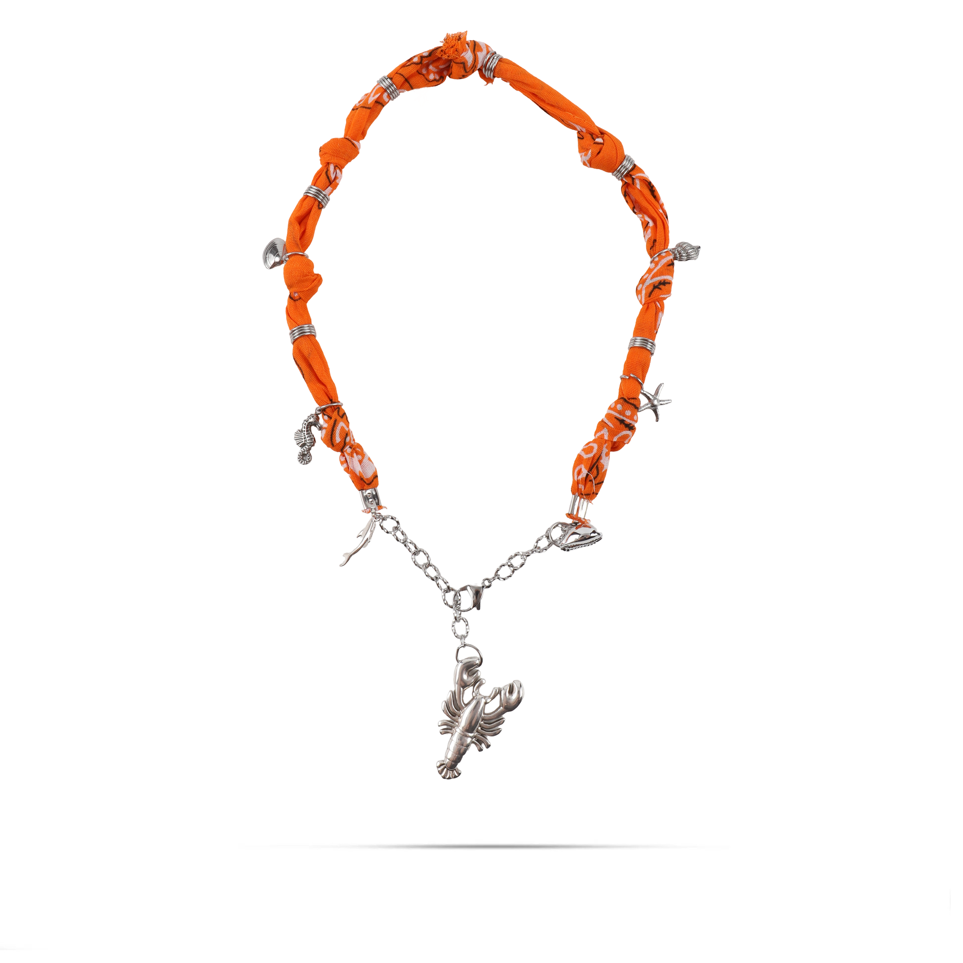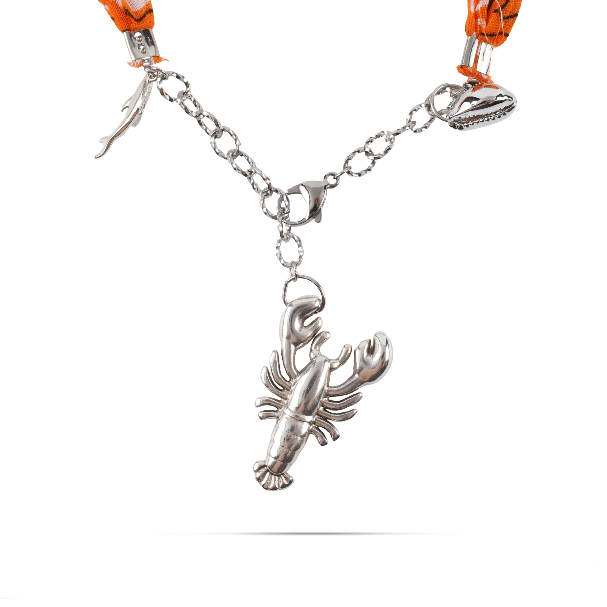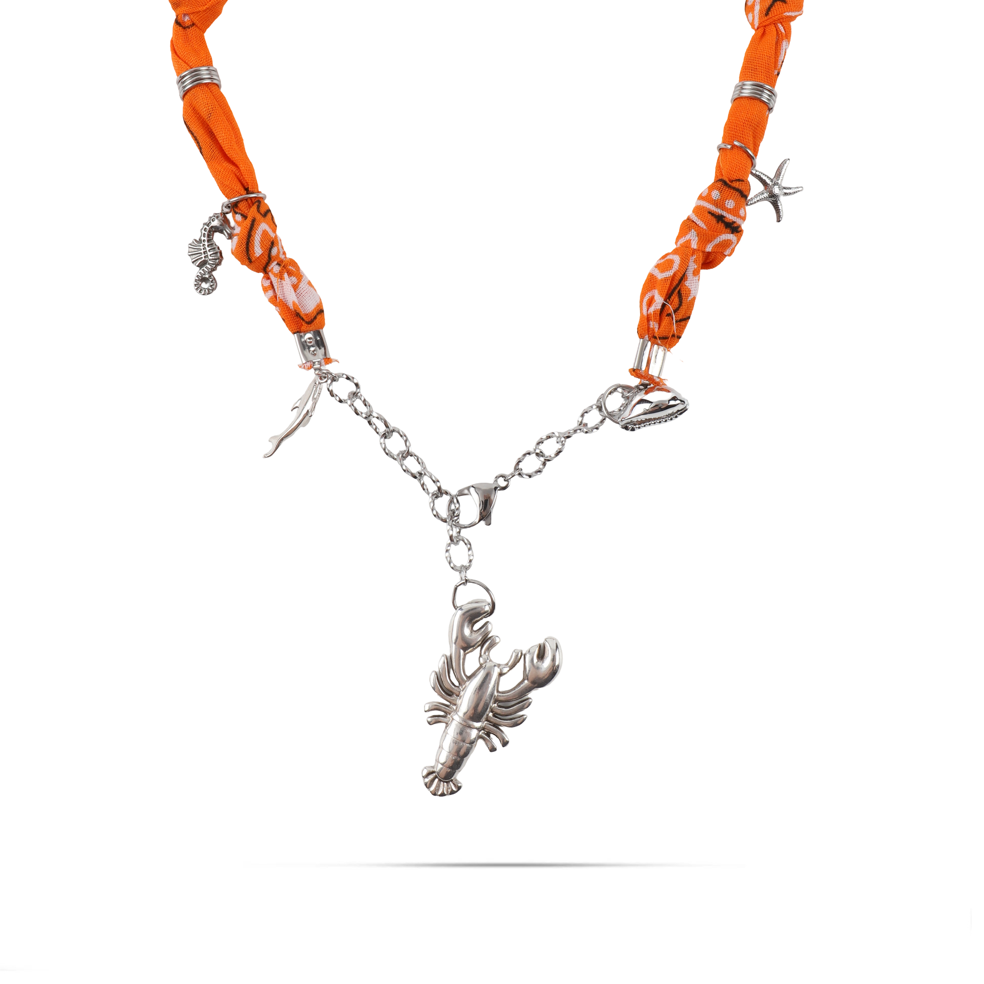 Χειροποίητο κολιέ από μπαντάνα και θαλασσινά στοιχεία Mar and Mar Isaya Lobster (Orange) Silver από ανοξείδωτο ατσάλι