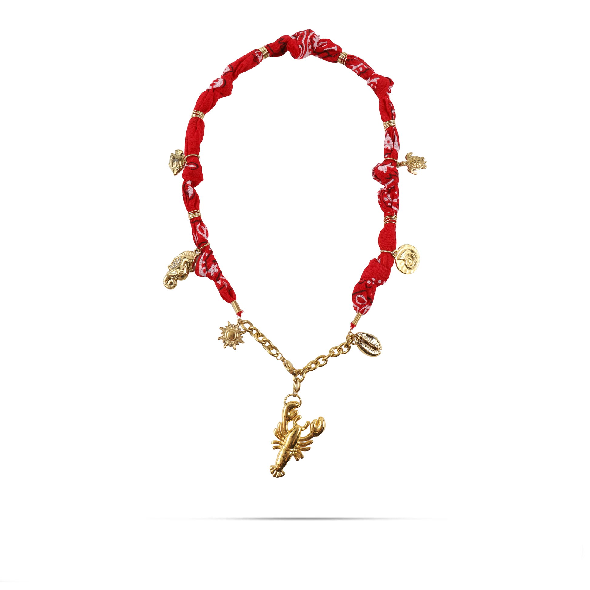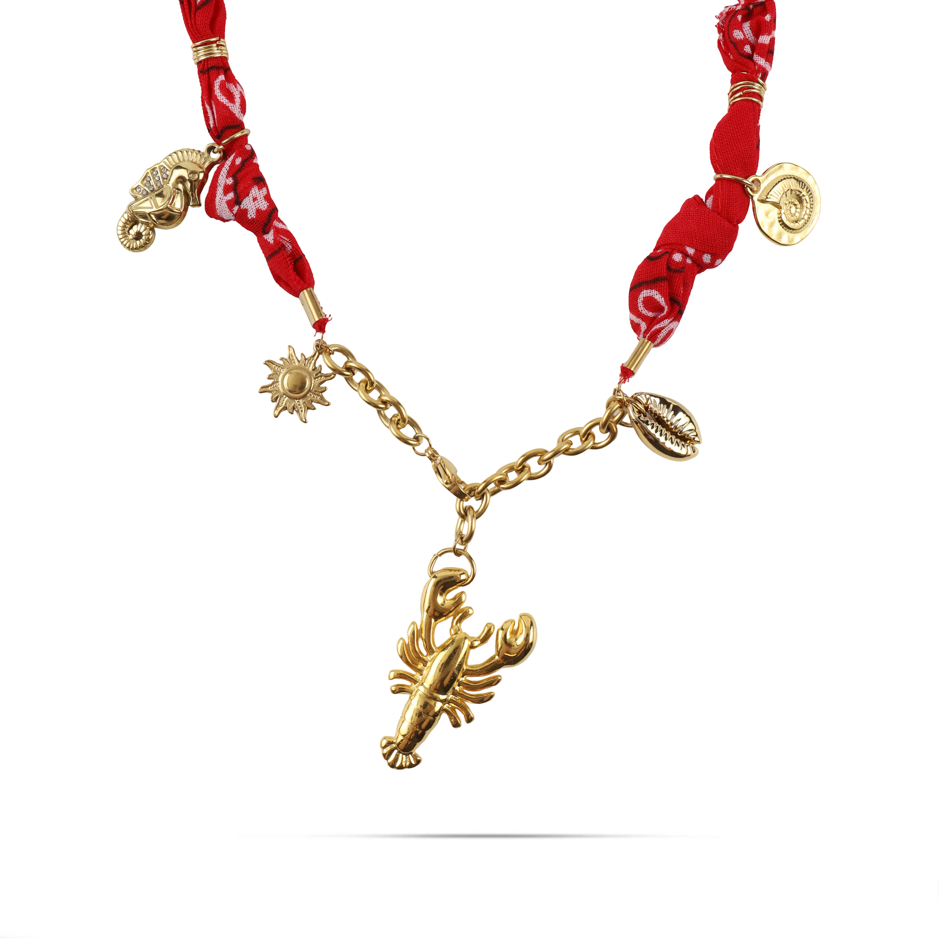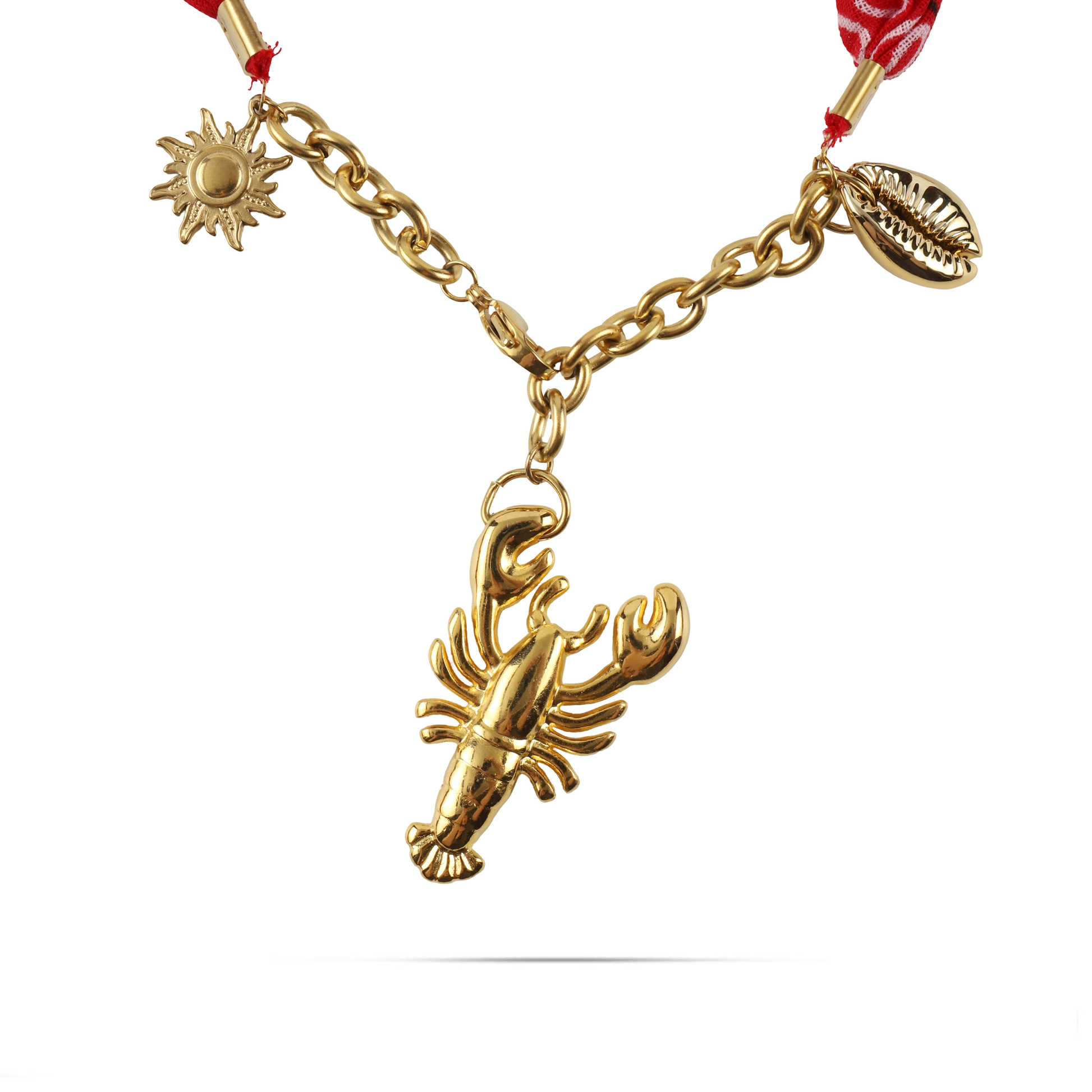 Χειροποίητο κολιέ από μπαντάνα και θαλασσινά στοιχεία Mar and Mar Isaya Lobster (Red) Gold από ανοξείδωτο ατσάλι