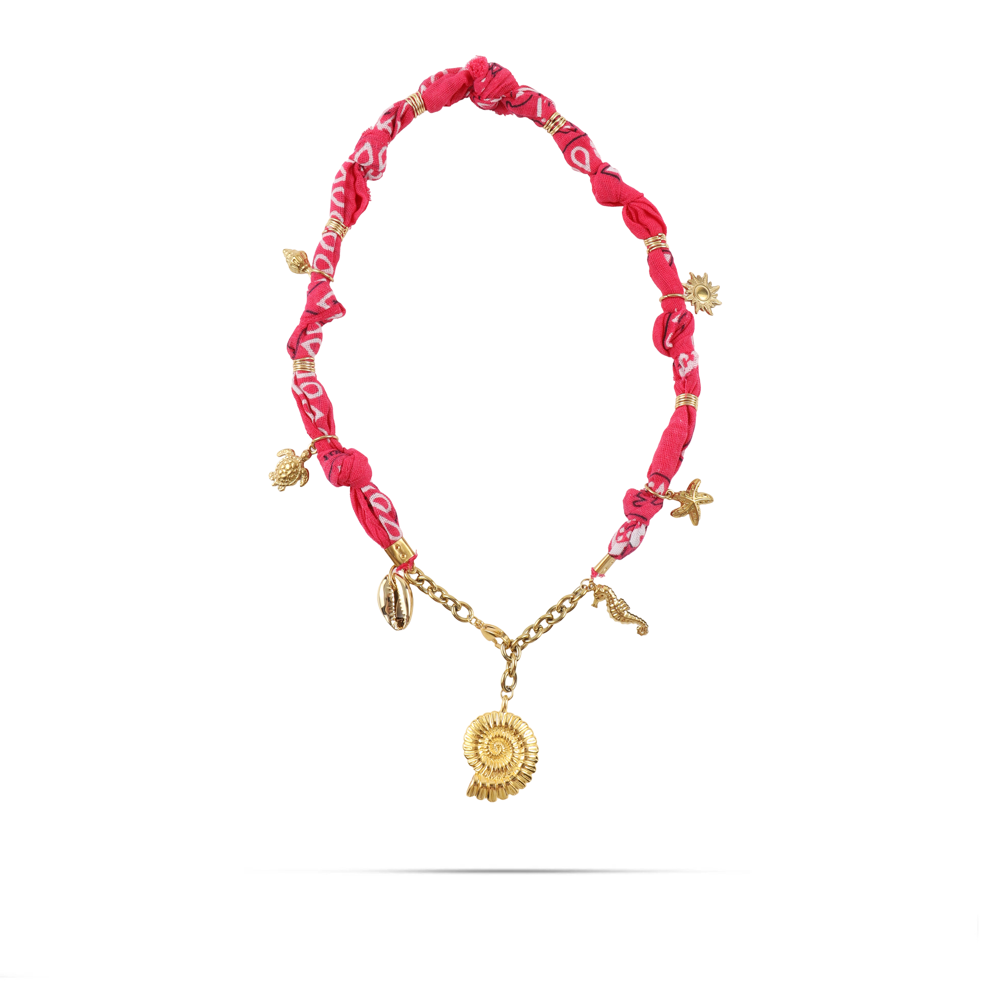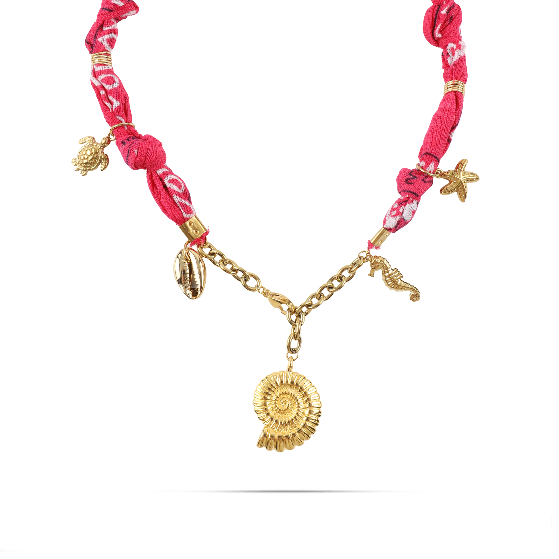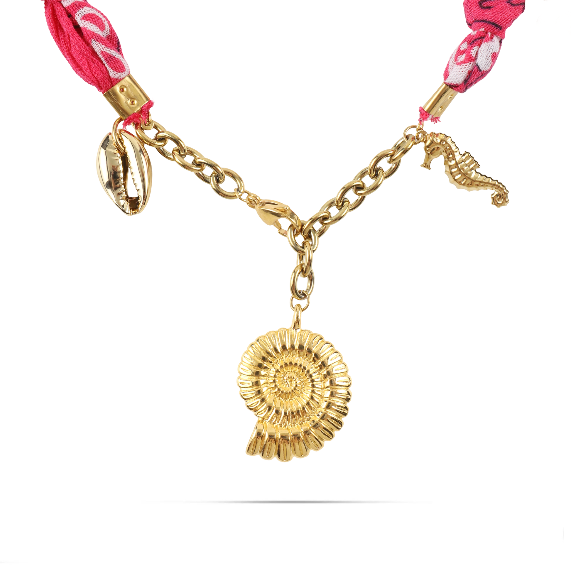 Χειροποίητο κολιέ από μπαντάνα και θαλασσινά στοιχεία Mar and Mar Isaya Seashell (Magenta) Gold από ανοξείδωτο ατσάλι