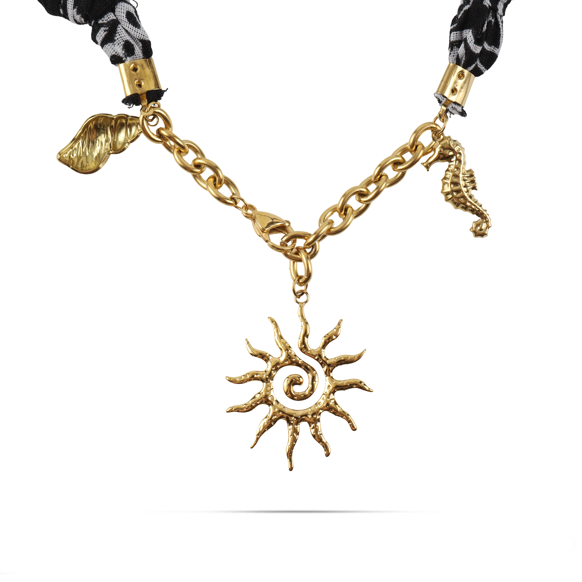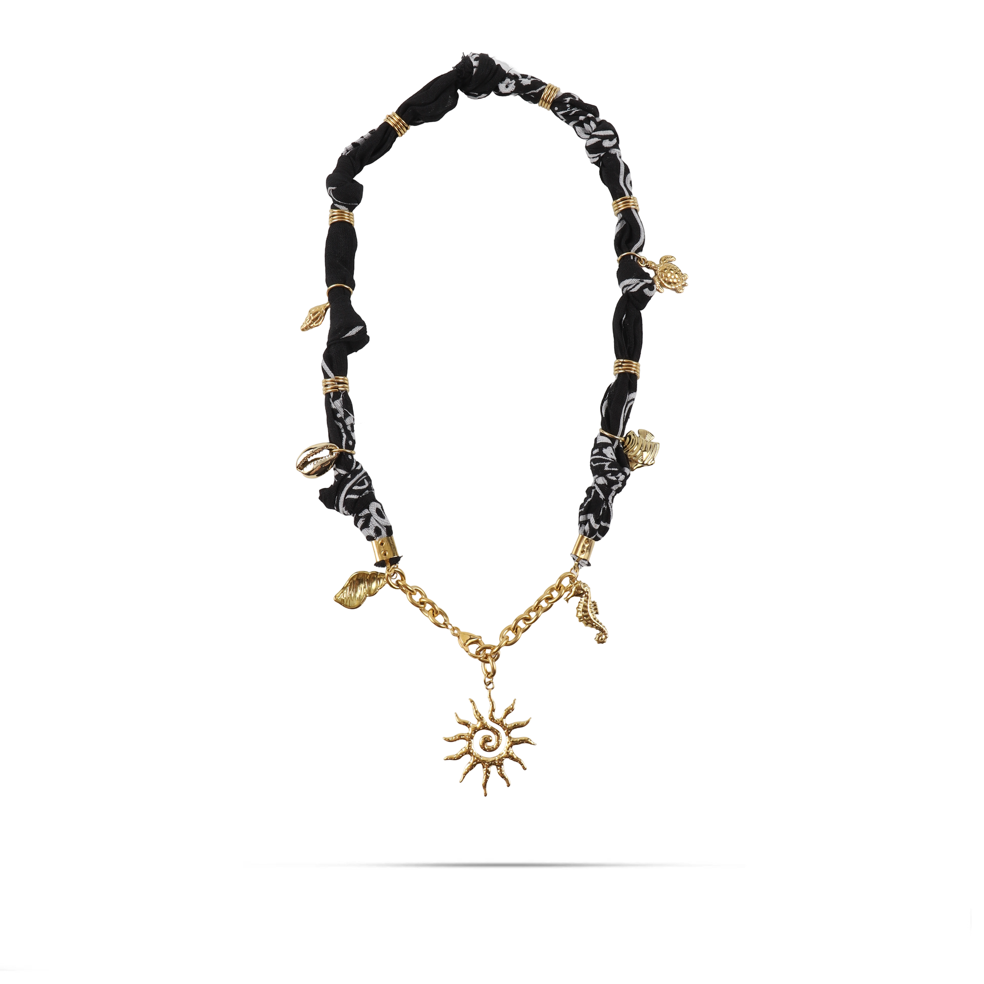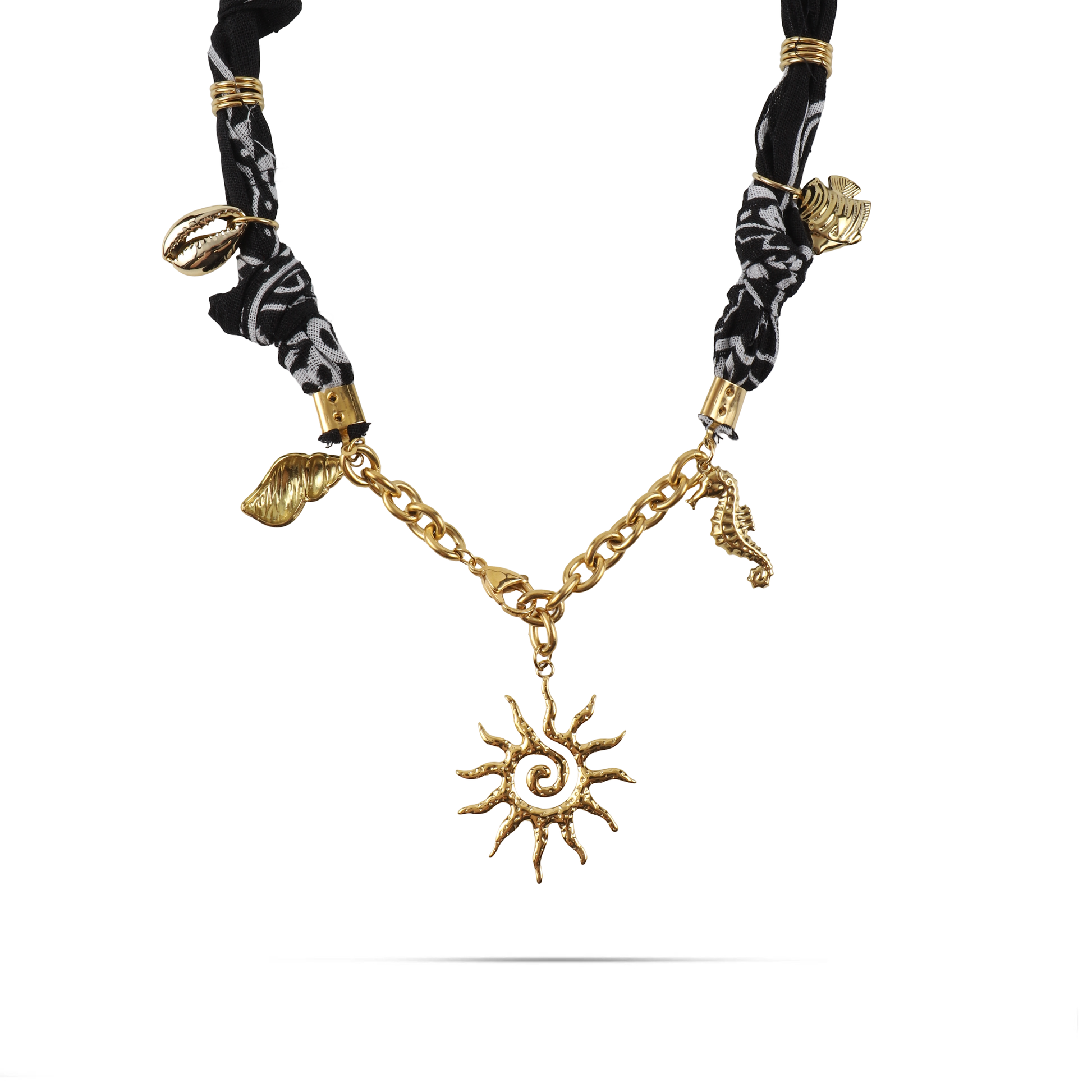 Χειροποίητο κολιέ από μπαντάνα και θαλασσινά στοιχεία Mar and Mar Isaya Sun (Black) Gold από ανοξείδωτο ατσάλι