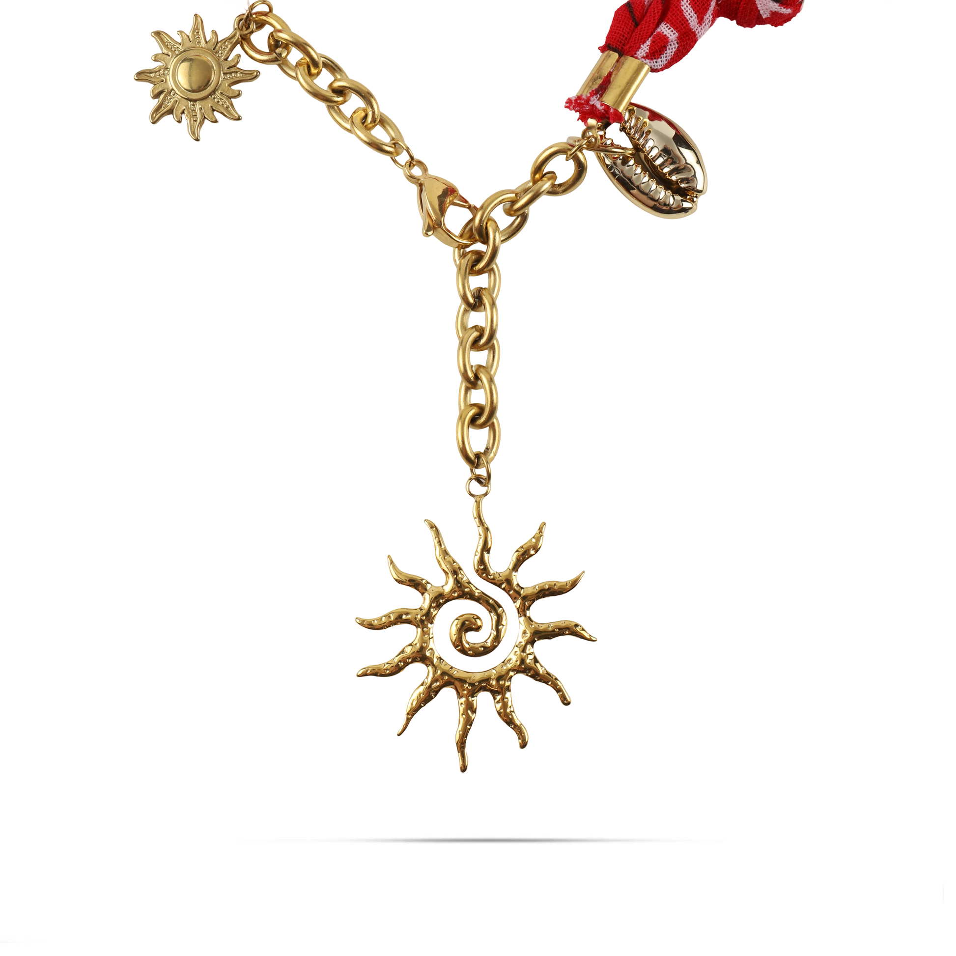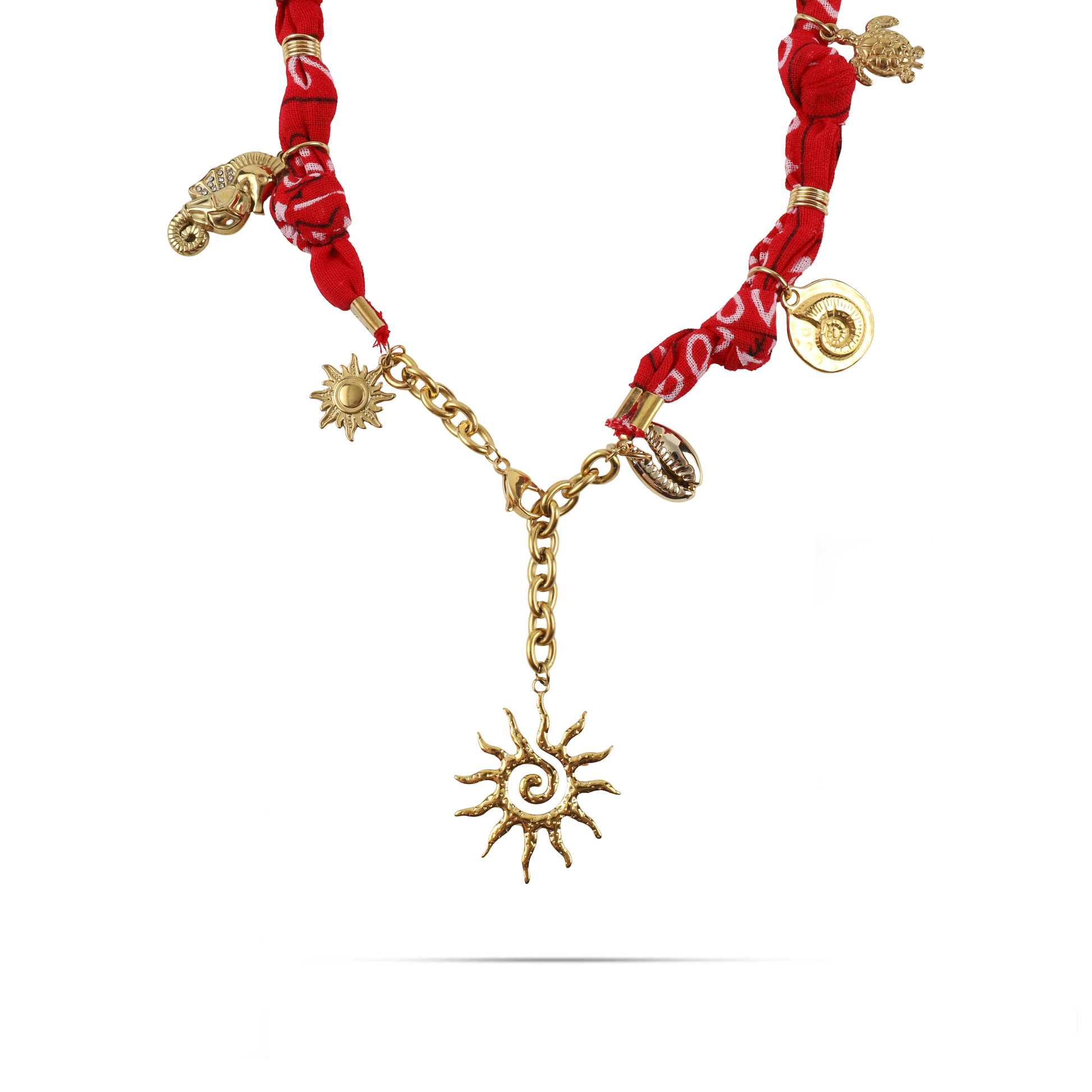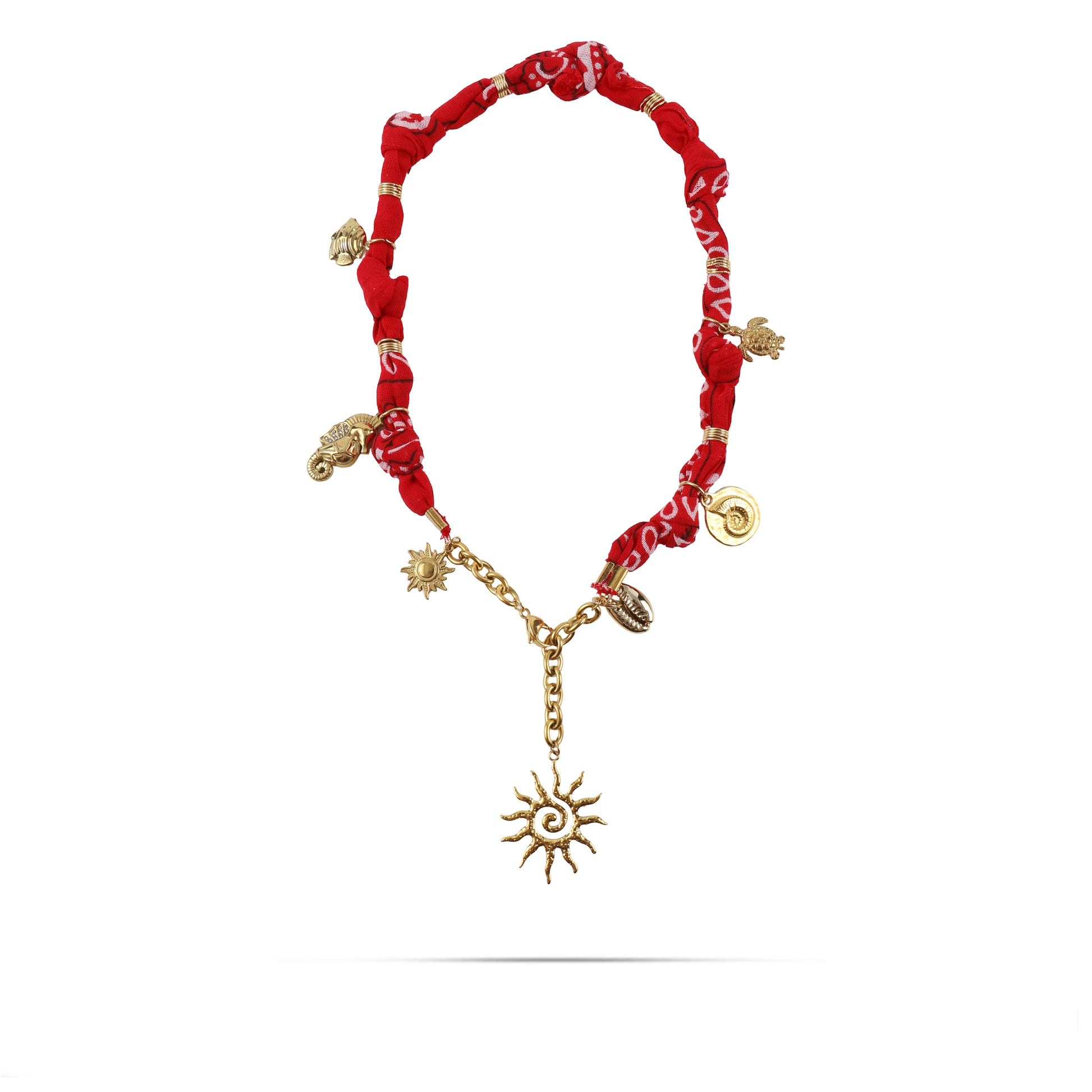 Χειροποίητο κολιέ από μπαντάνα και θαλασσινά στοιχεία Mar and Mar Isaya Sun (Red) Gold από ανοξείδωτο ατσάλι