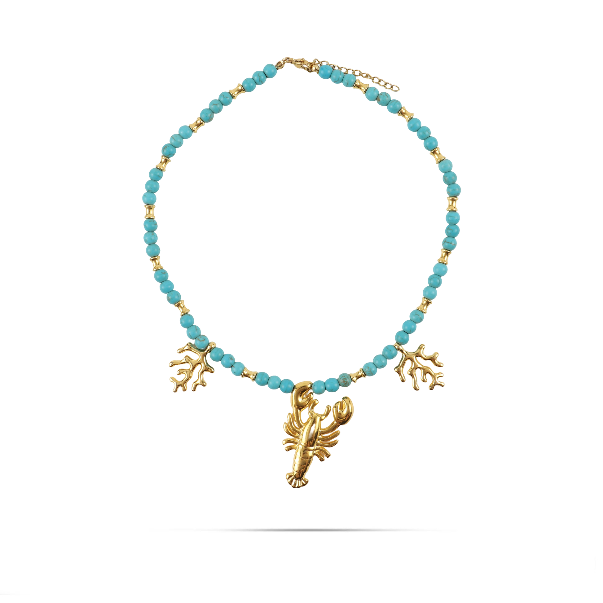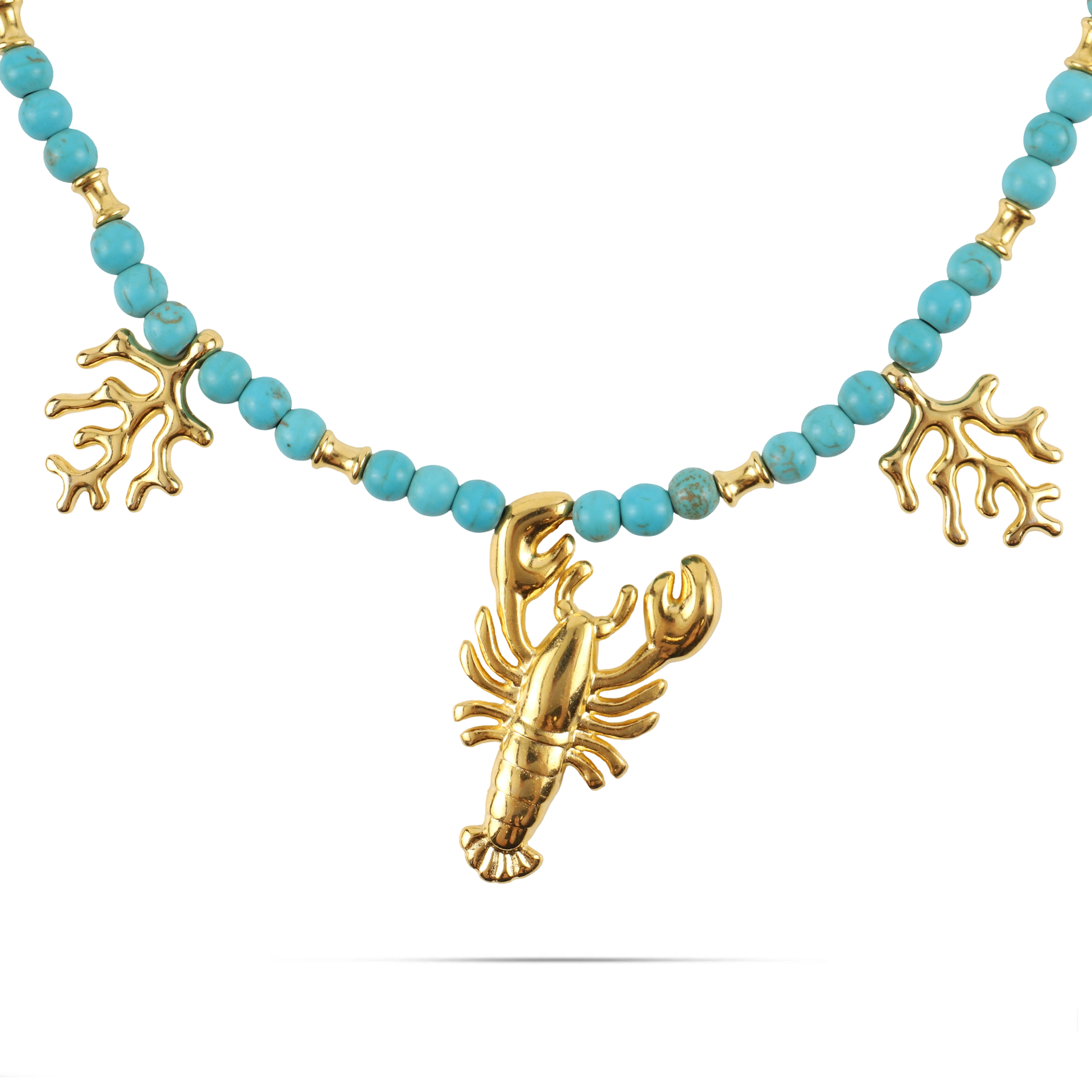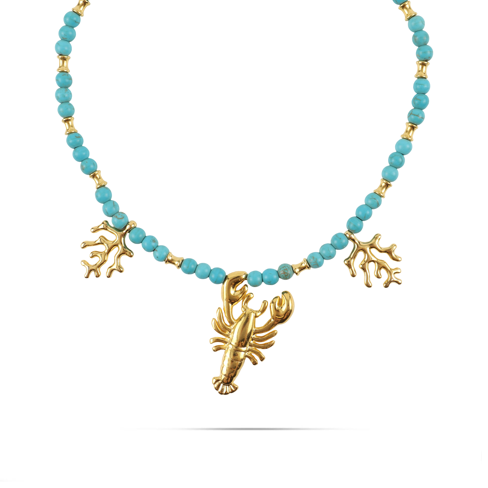 Χειροποίητο κολιέ με αστακό και κοράλια Mar and Mar Lobster Corals με φυσικές ορυκτές πέτρες Χαολίτη από ανοξείδωτο ατσάλι
