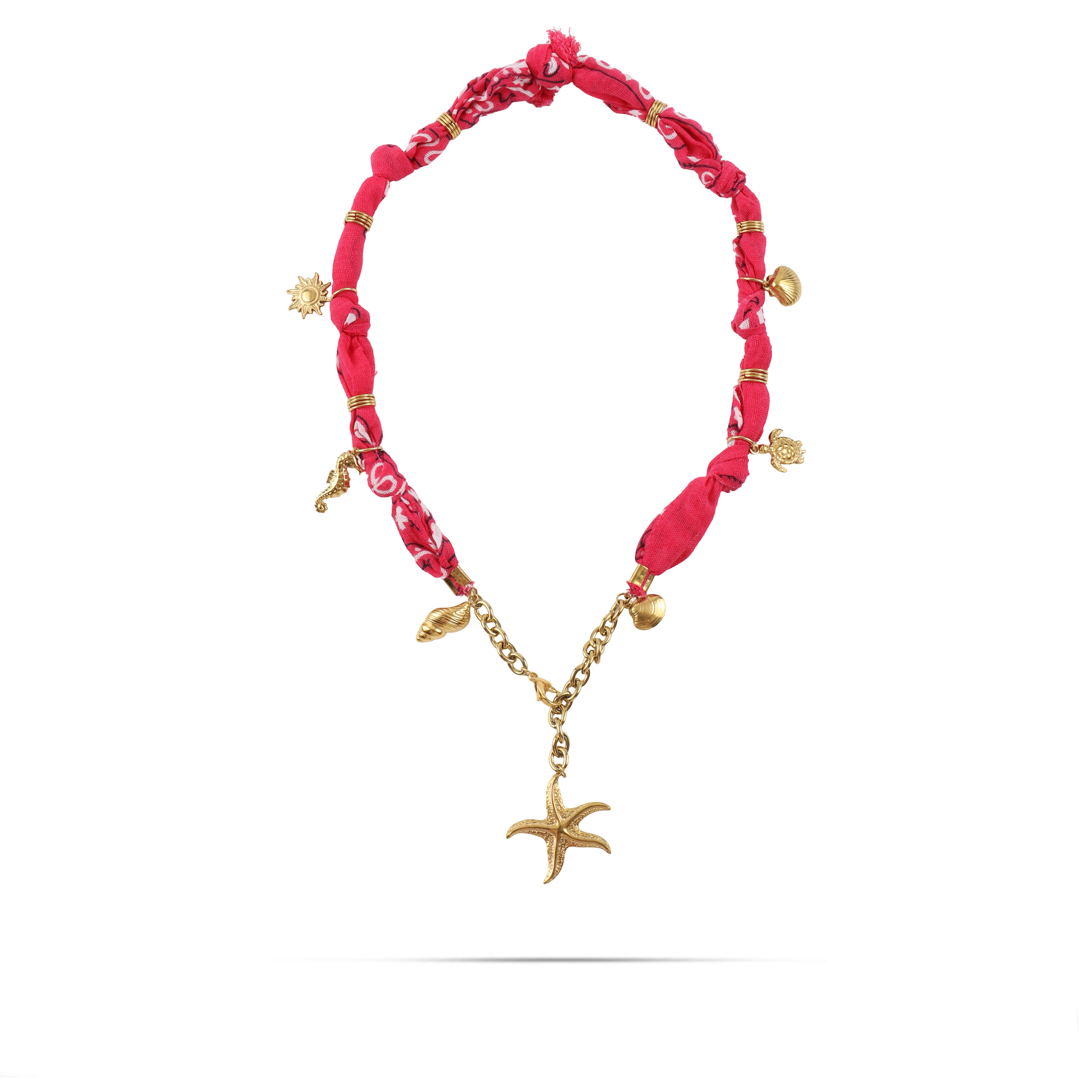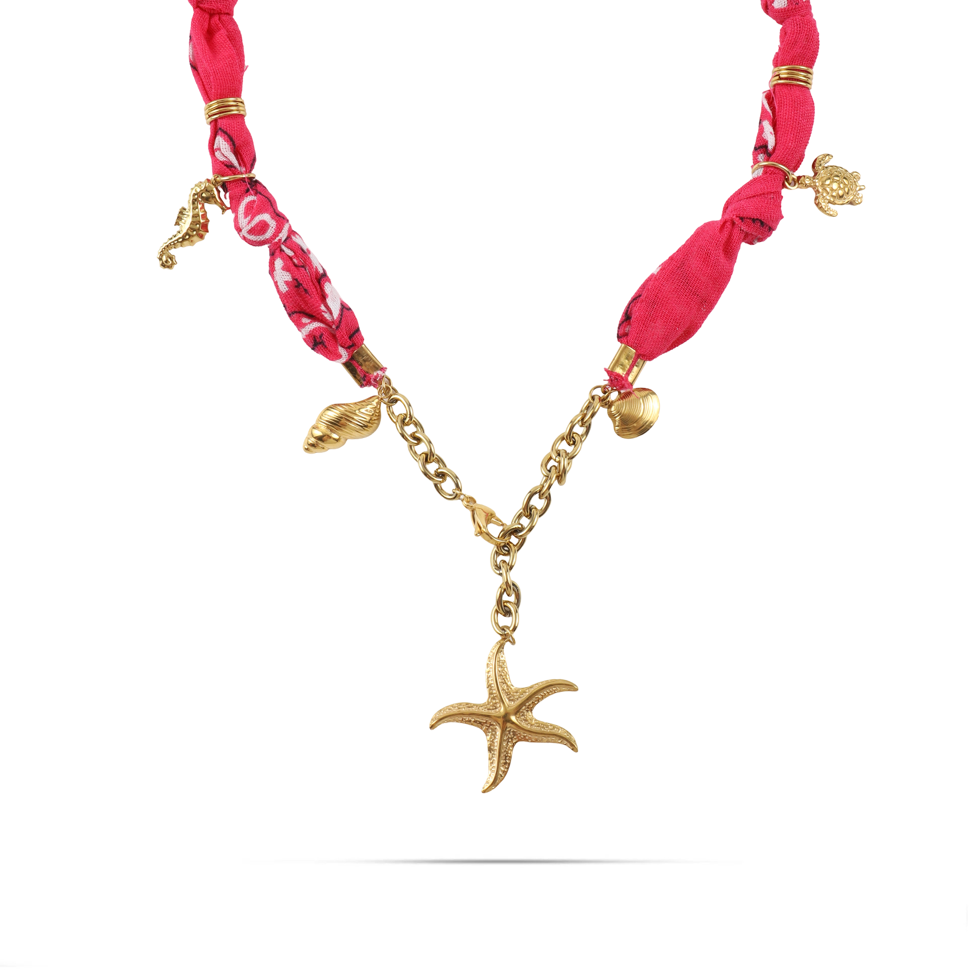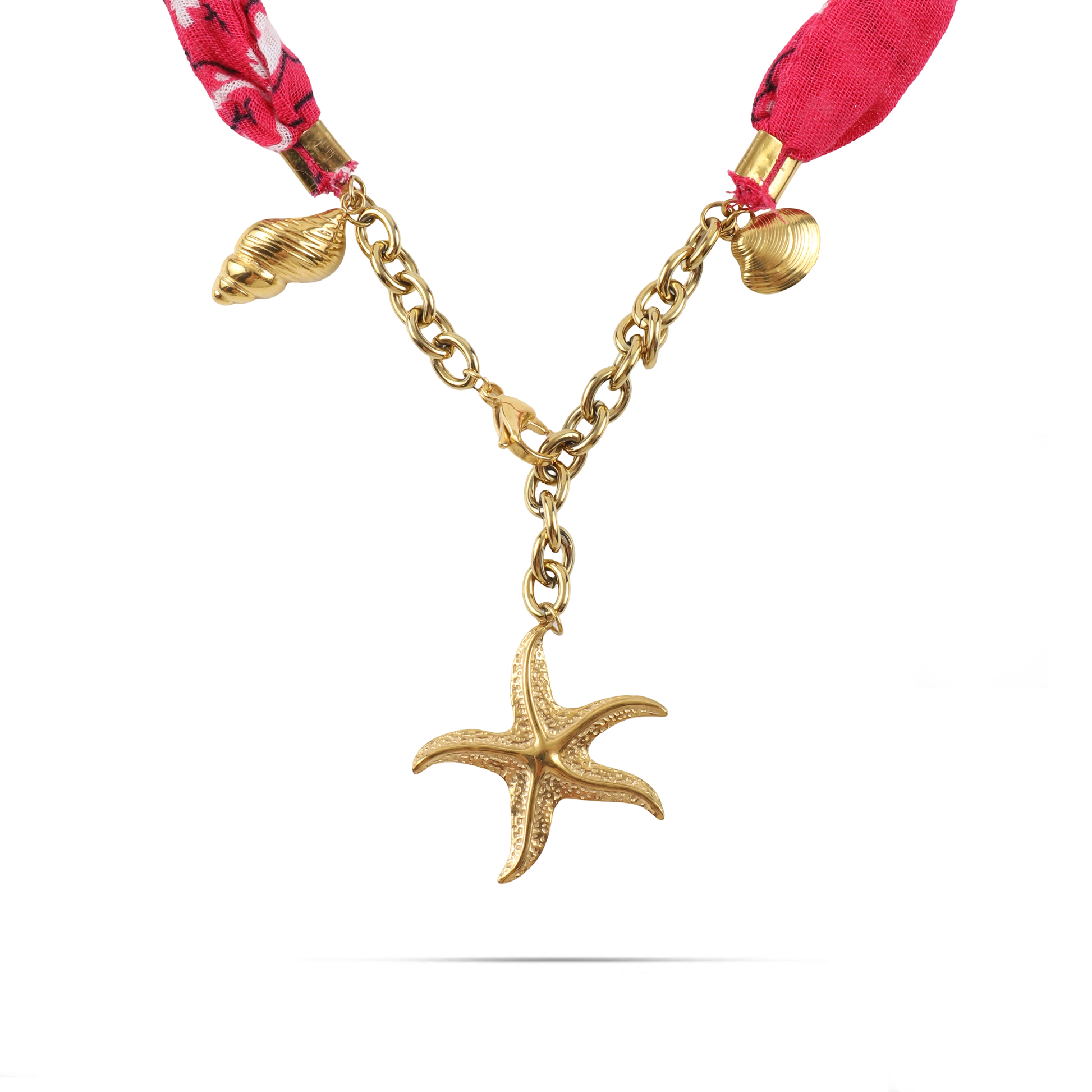 Χειροποίητο κολιέ από μπαντάνα και θαλασσινά στοιχεία Mar and Mar Isaya Starfish (Magenta) Gold από ανοξείδωτο ατσάλι