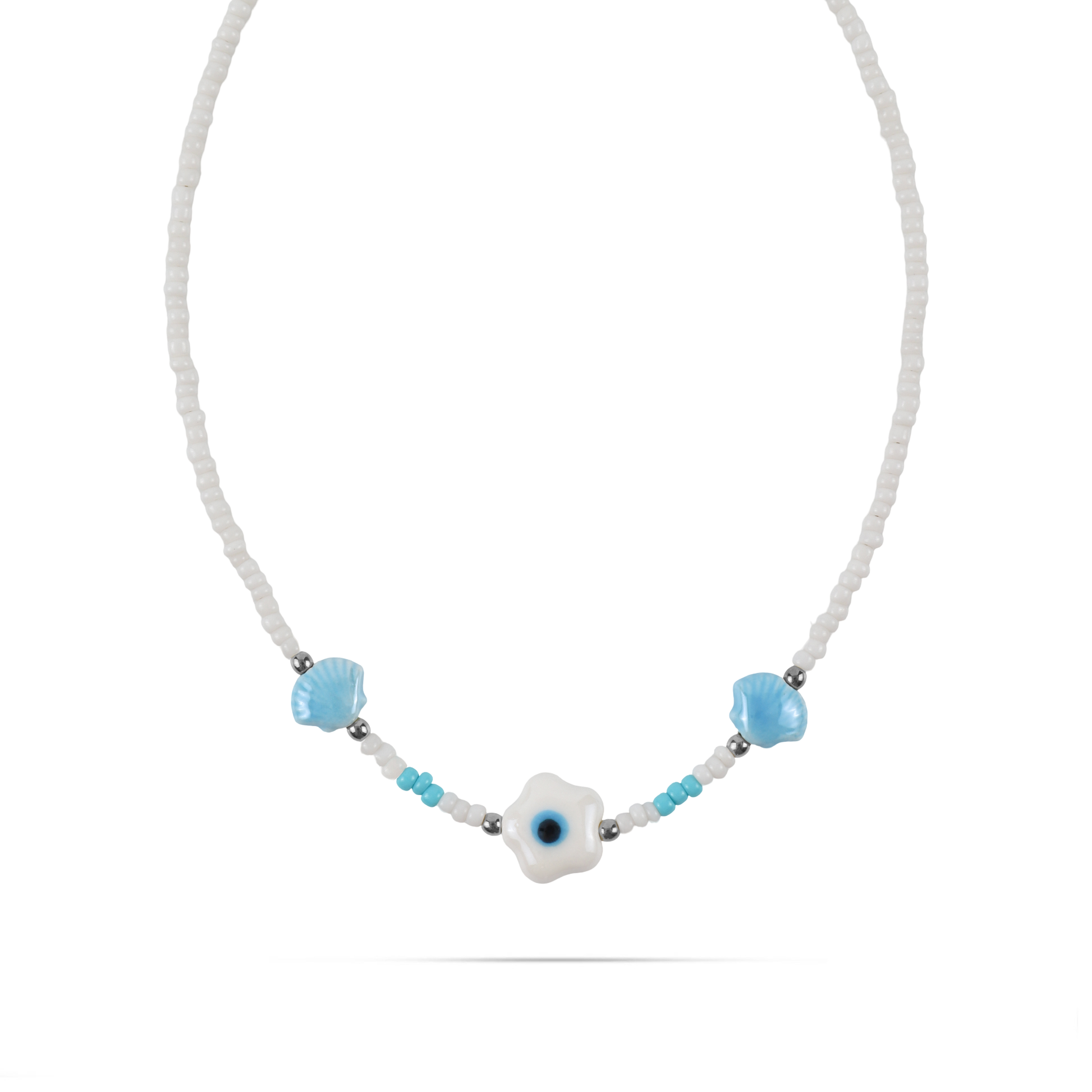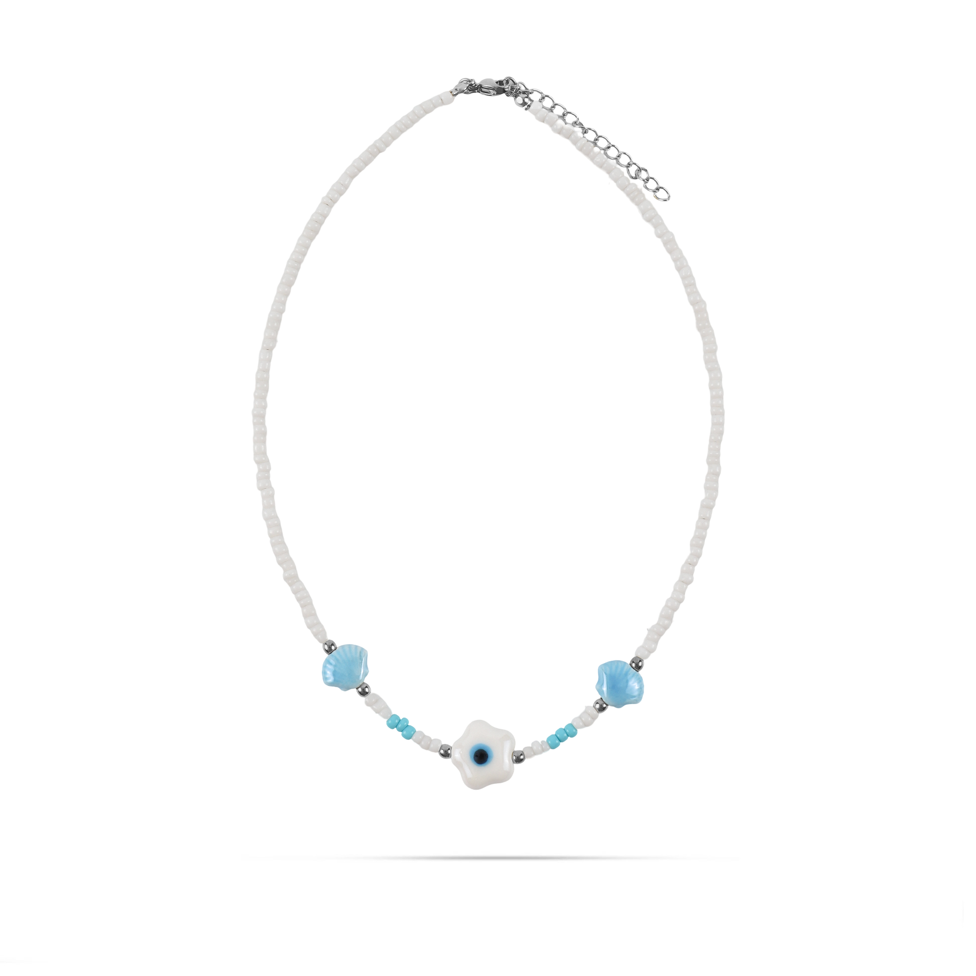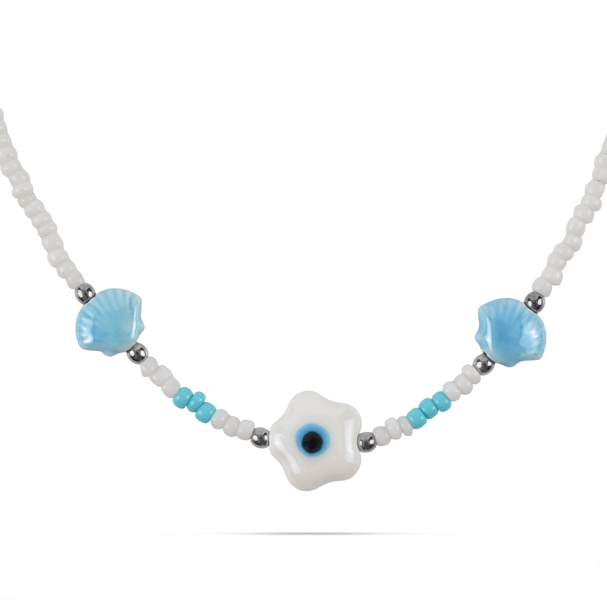 Χειροποίητο κολιέ με πήλινα στοιχεία και χάντρες Mar and Mar Aelia eye Silver από ανοξείδωτο ατσάλι