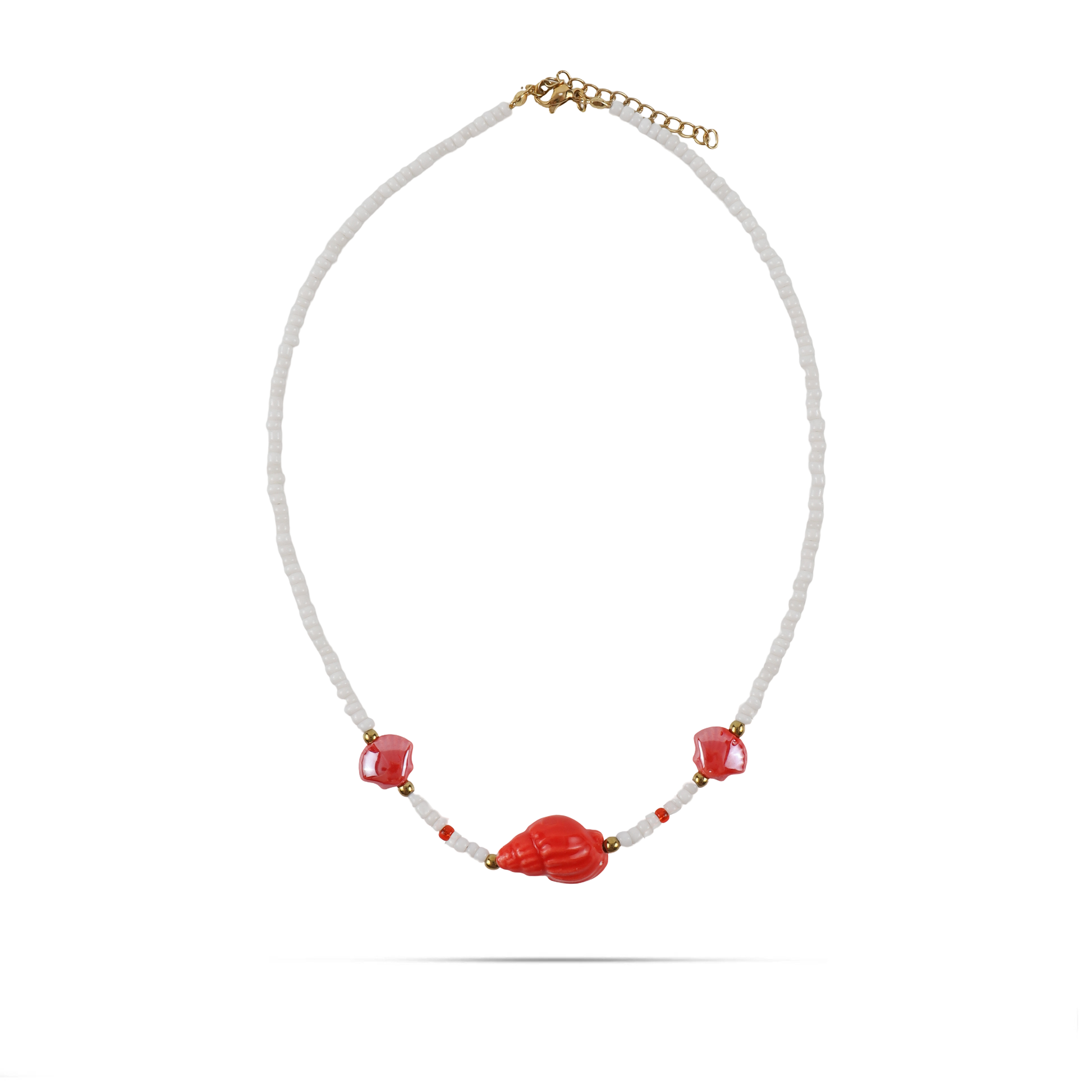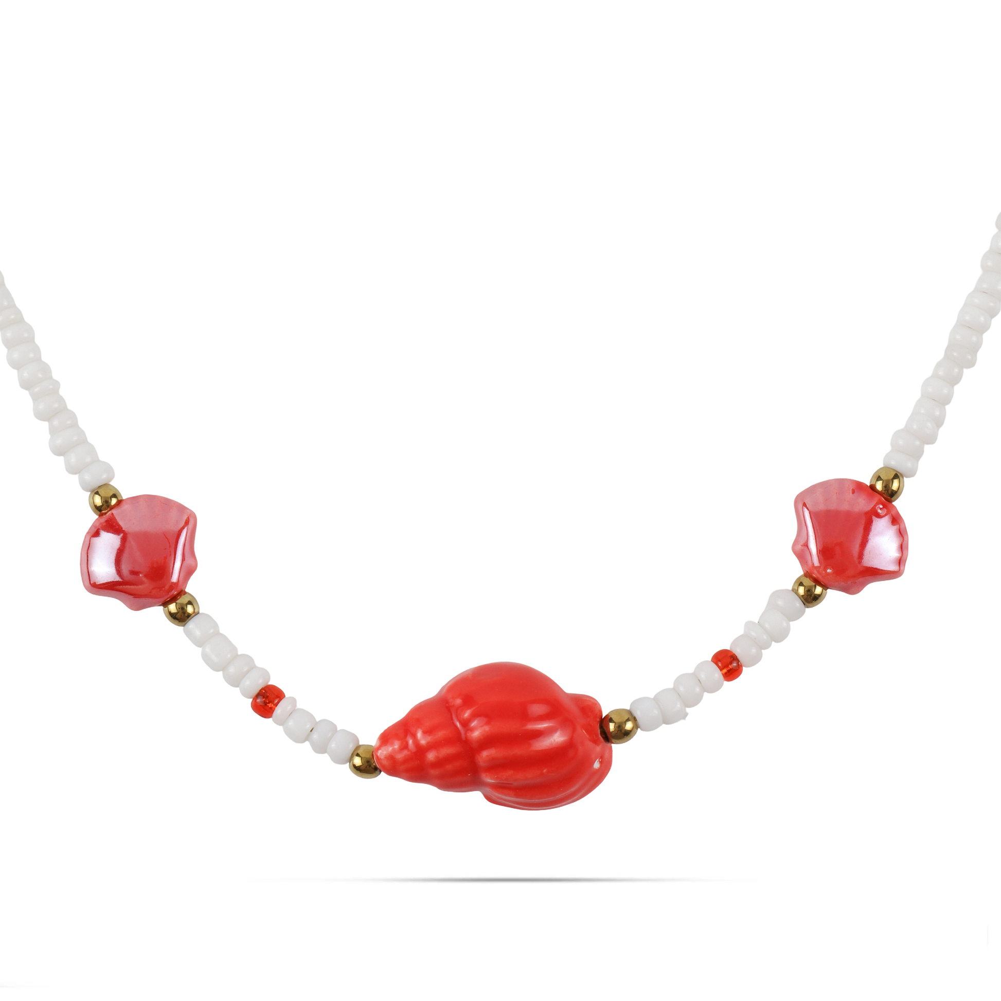 Χειροποίητο κολιέ με πήλινα στοιχεία και χάντρες Mar and Mar Aelia seashell από ανοξείδωτο ατσάλι