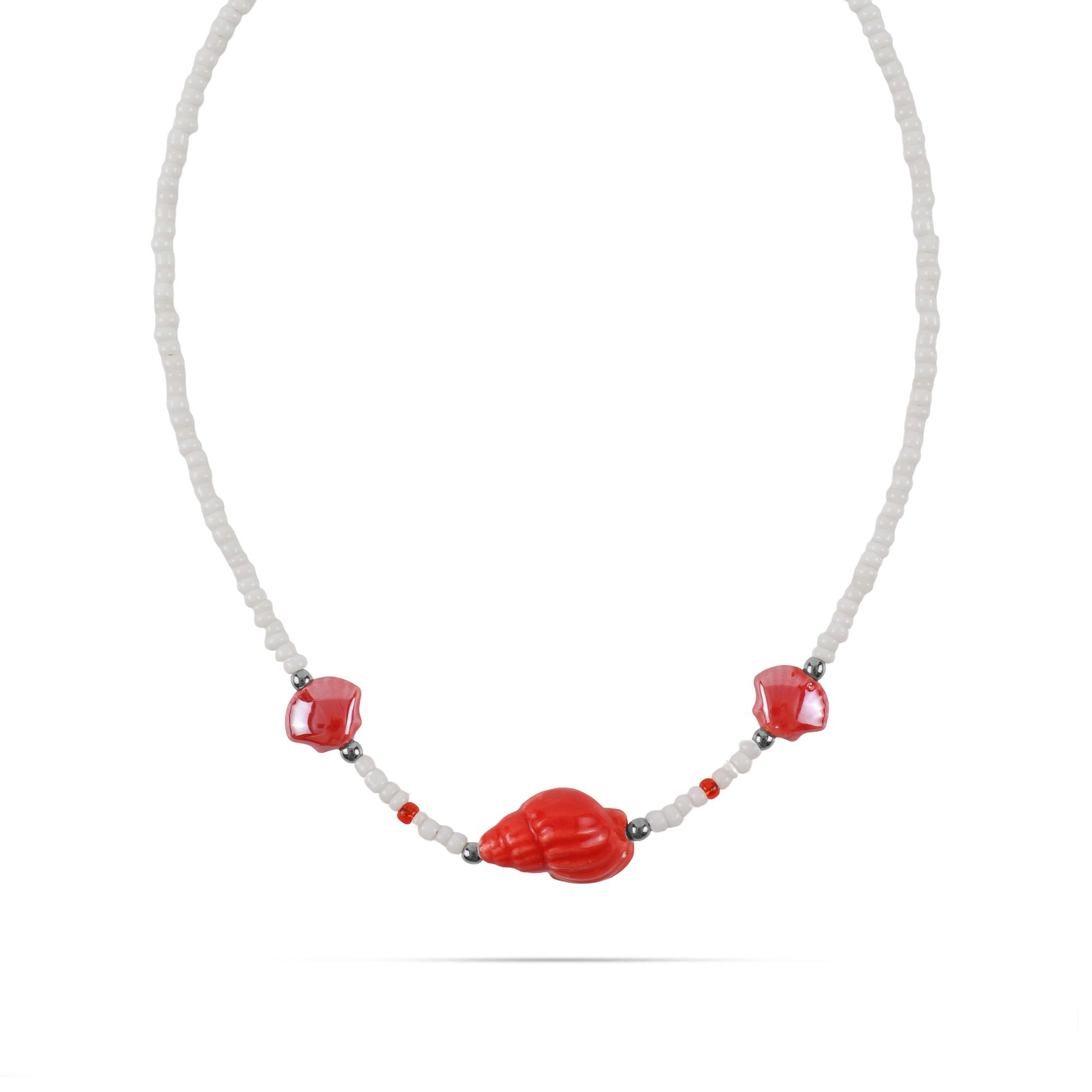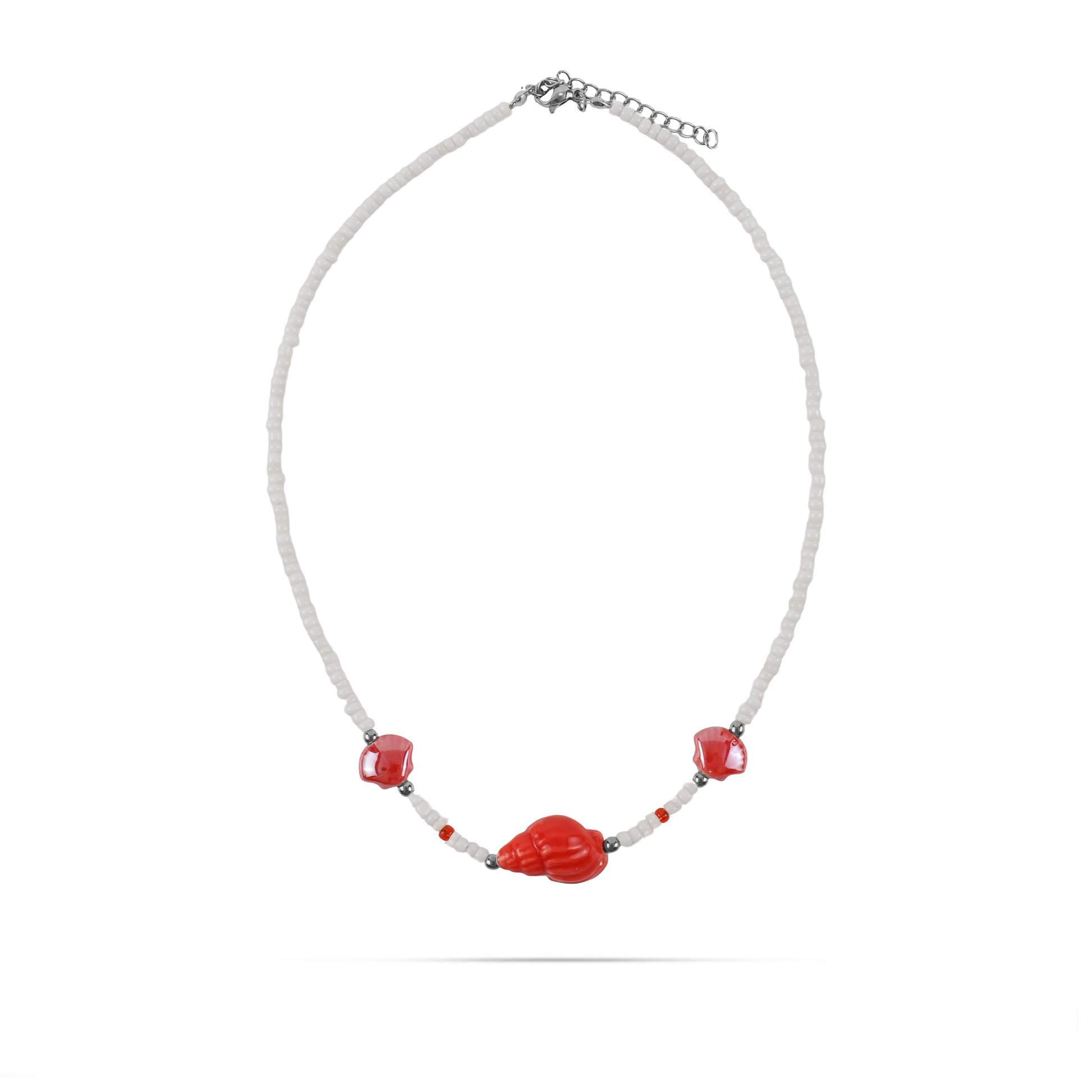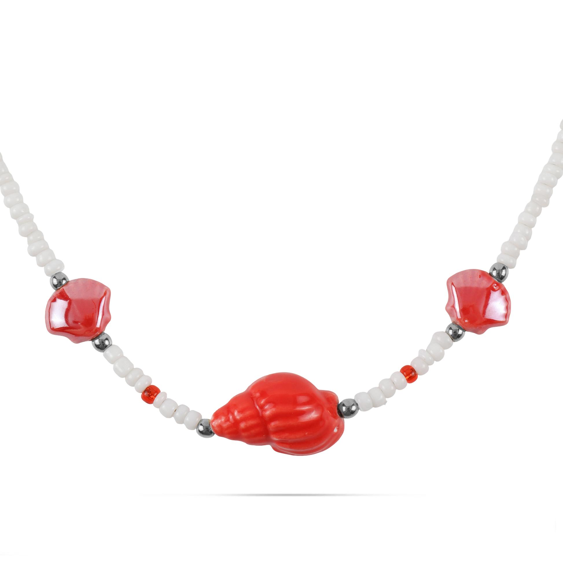 Χειροποίητο κολιέ με πήλινα στοιχεία και χάντρες Mar and Mar Aelia seashell Silver από ανοξείδωτο ατσάλι