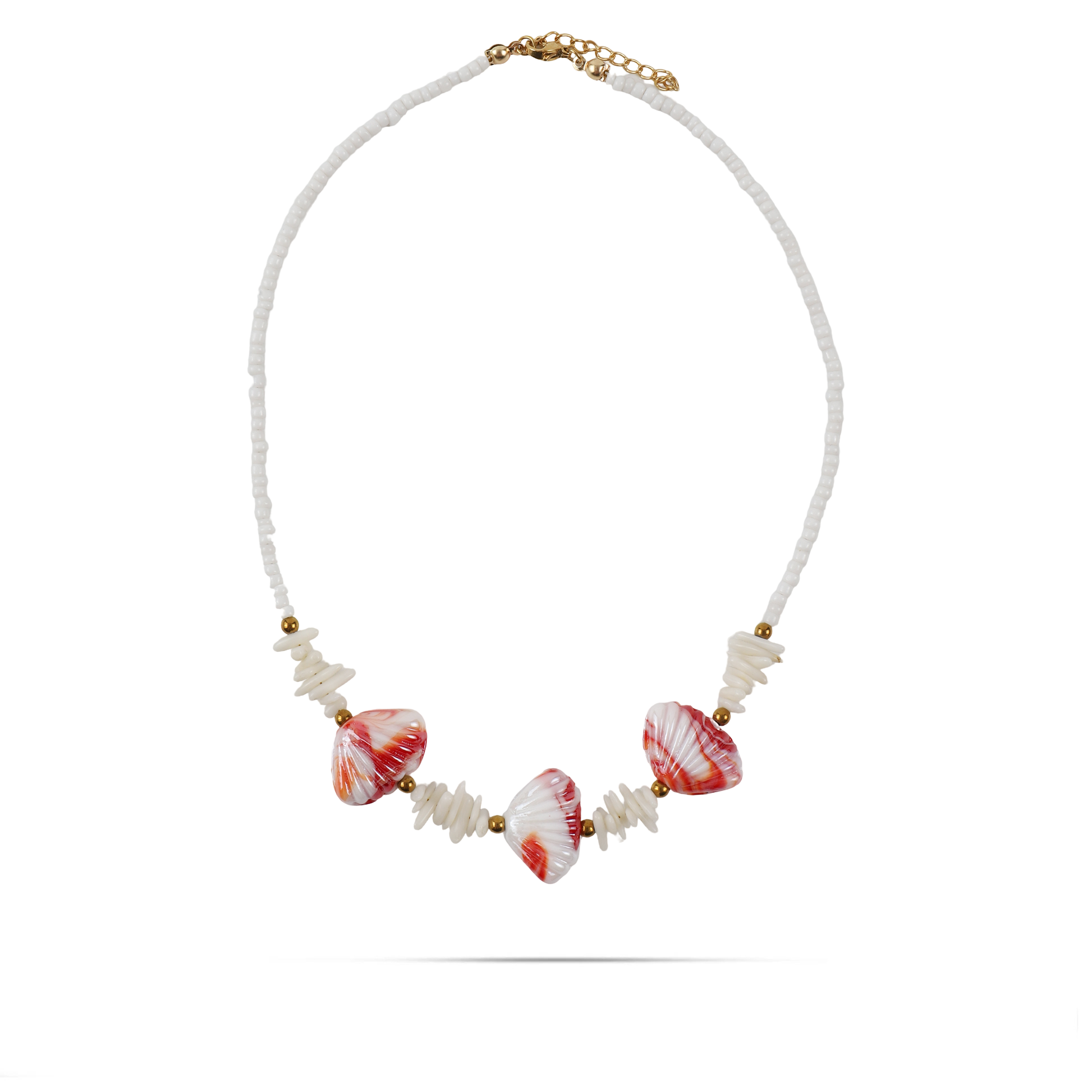 Αναβαθμίστε το στυλ σας με αυτό το μοναδικό χειροποίητο κολιέ από φυσικά κοράλια και Μουράνο. Η συνδυασμένη λάμψη του κόκκινου χρώματος θα προσθέσει φωτεινότητα σε κάθε εμφάνισή σας. Κατασκευασμένο από ανοξείδωτο ατσάλι, είναι ανθεκτικό και διαχρονικό. Ιδανικό για τις γυναίκες που αναζητούν μια διακριτική πινελιά πολυτέλειας στο ντύσιμό τους.