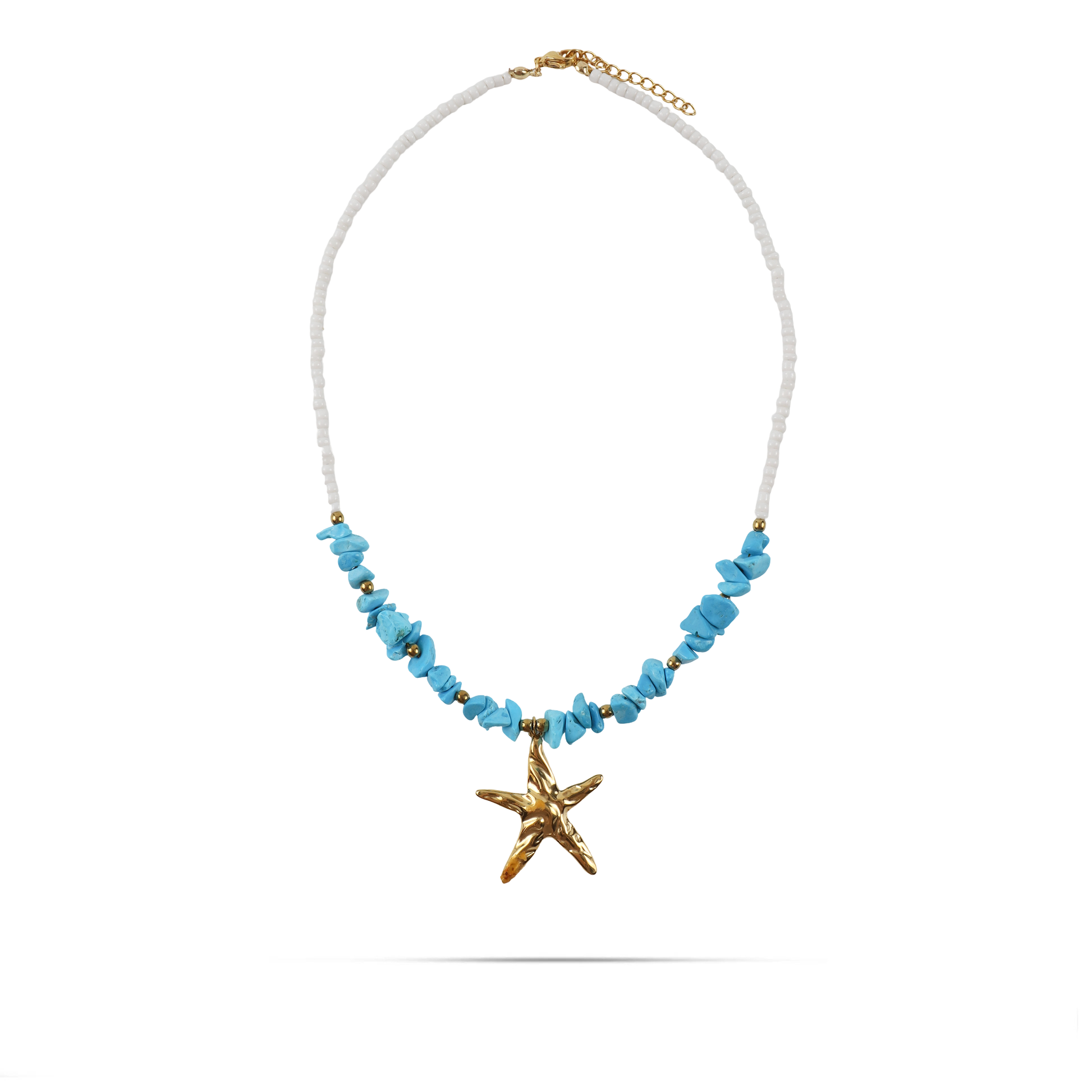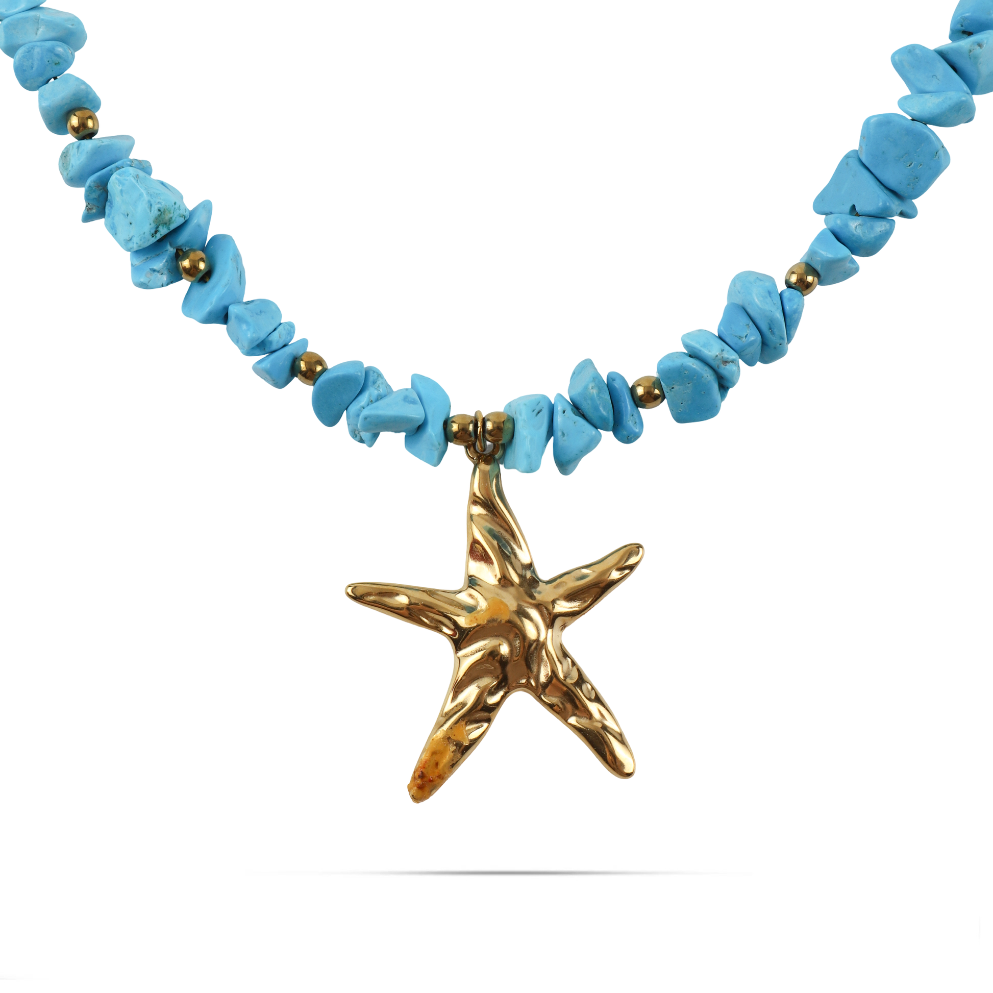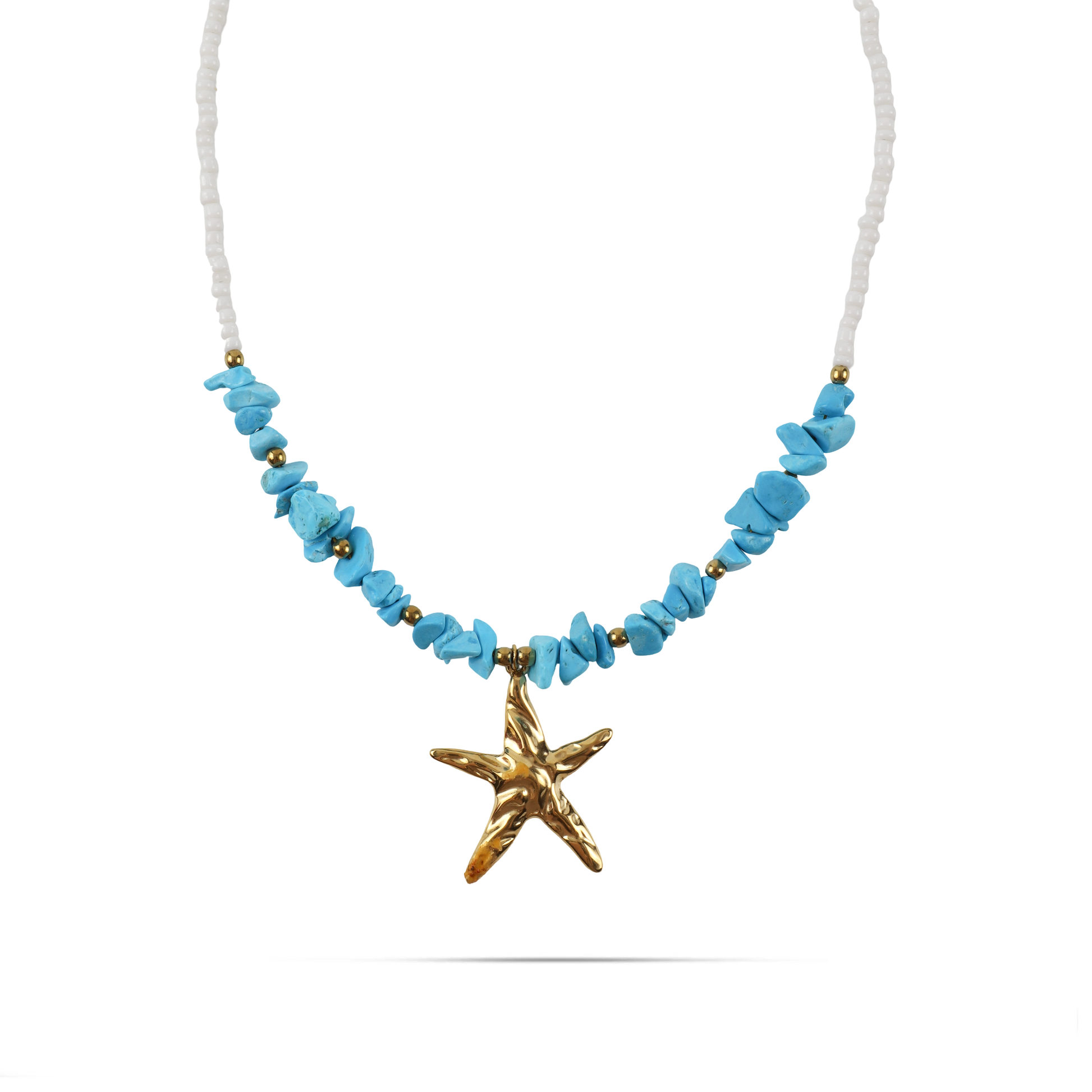 Χειροποίητο κολιέ με φυσικά κοράλια και χάντρες Mar and Mar Naida Starfish (blue) από ανοξείδωτο ατσάλι