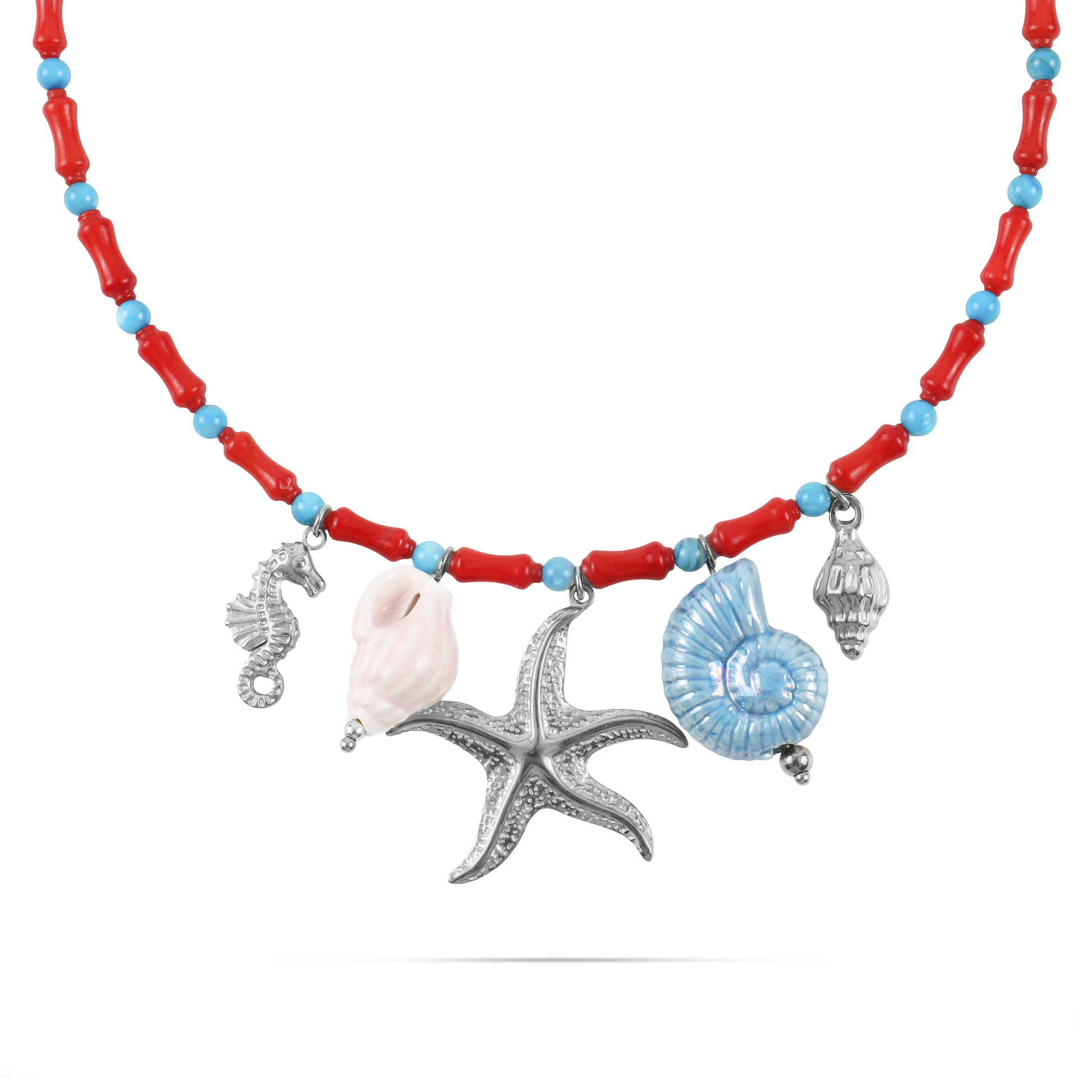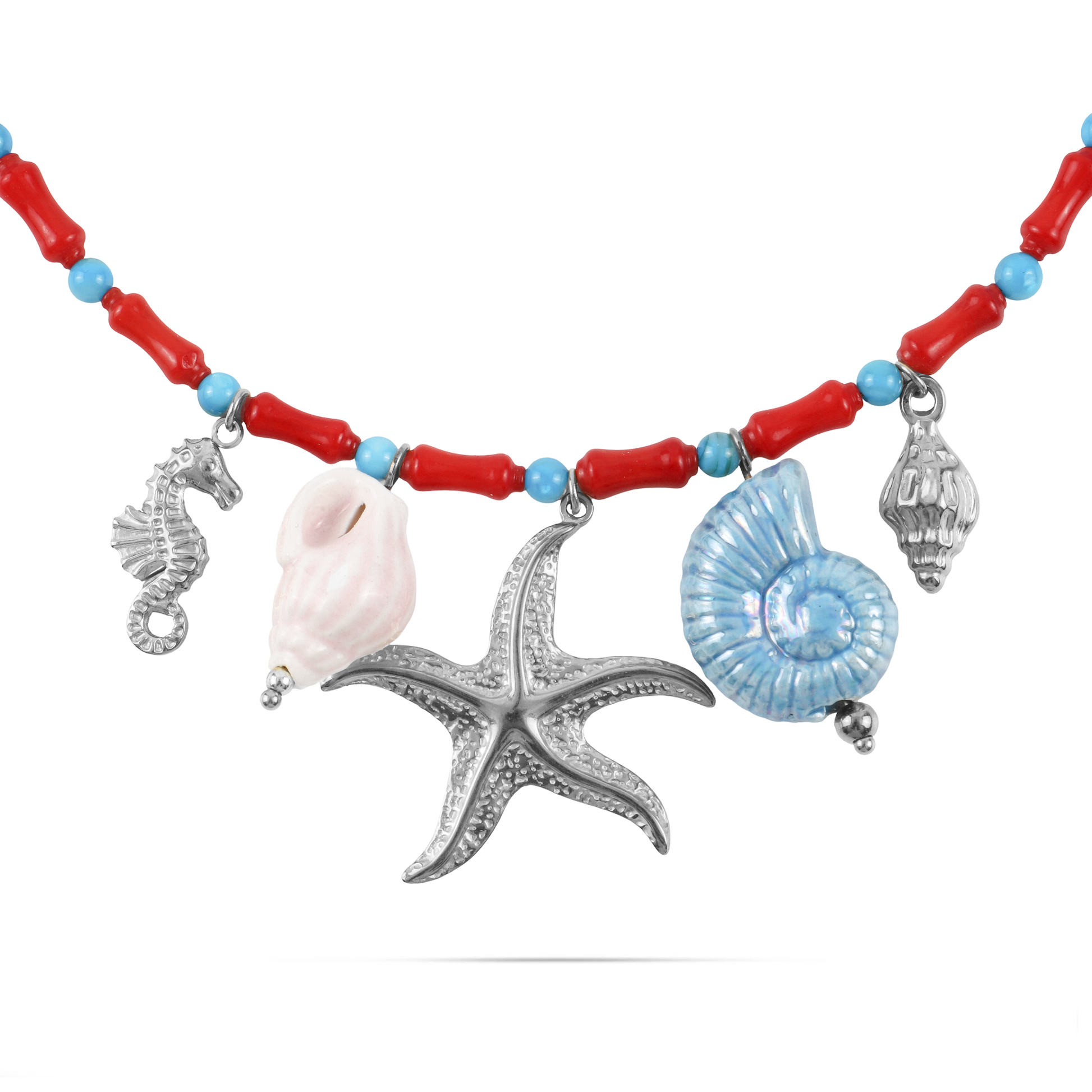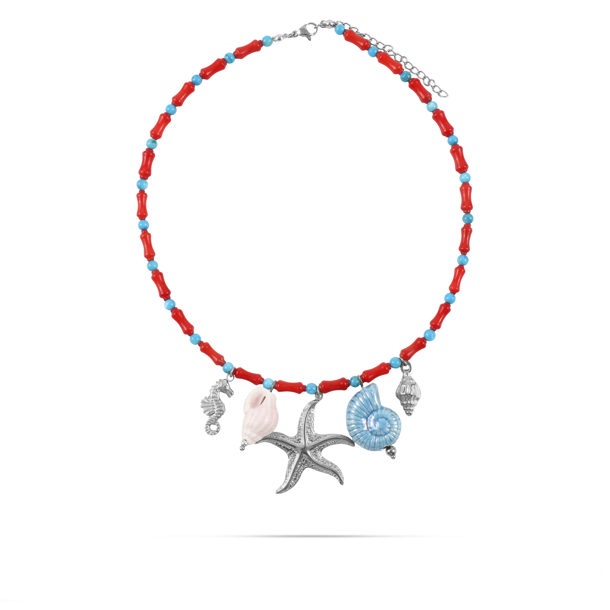 Χειροποίητο κολιέ με φυσικά κοχύλια και κοράλια Mar and Mar Navalia Silver από ανοξείδωτο ατσάλι
