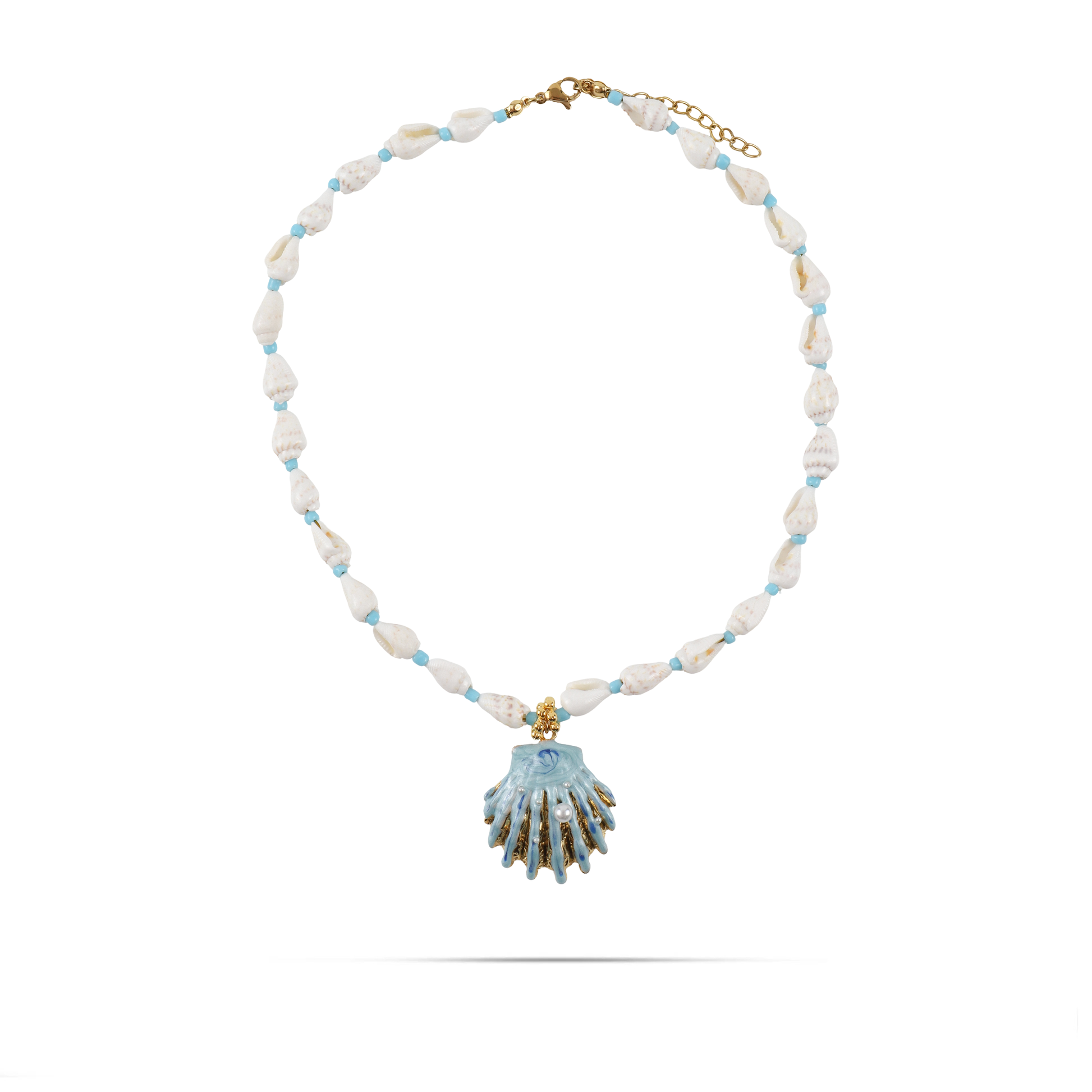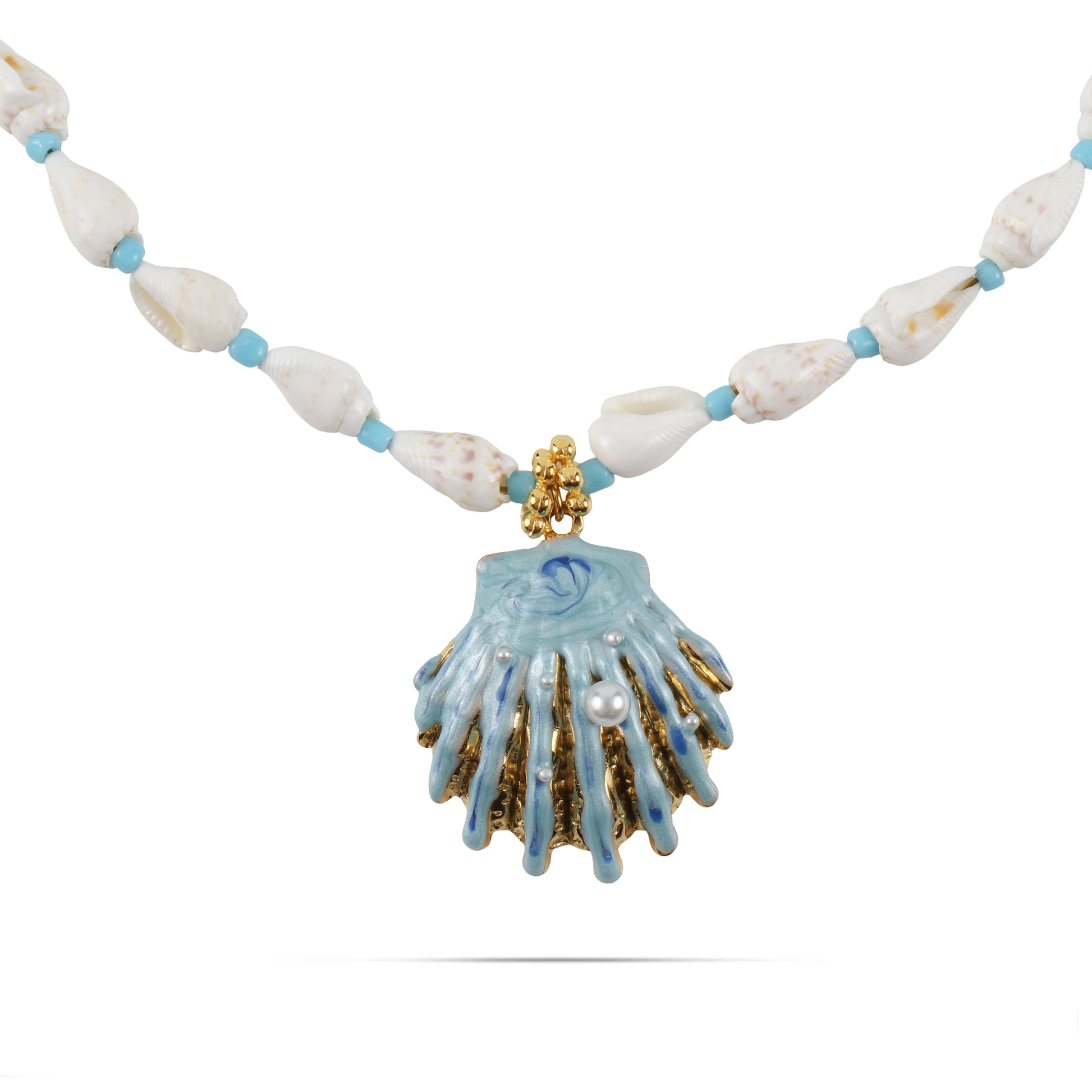 Χειροποίητο κολιέ με φυσικά κοχύλια και χάντρες Mar and Mar Jaleia Seashell από ανοξείδωτο ατσάλι