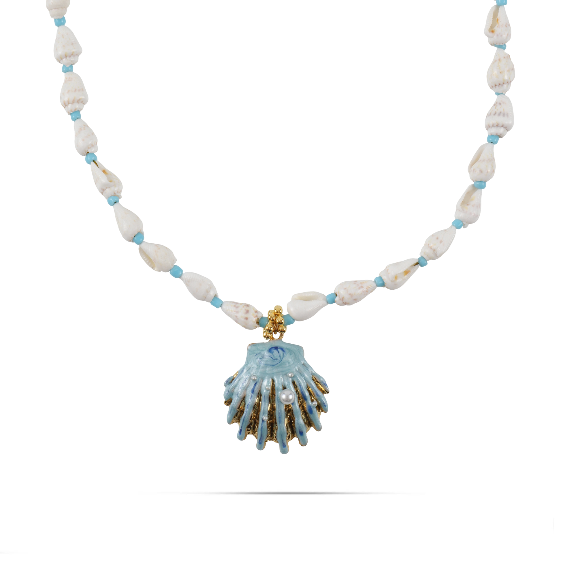 Αναβαθμίστε το στυλ σας με το υπέροχο χειροποίητο κολιέ Mar and Mar Jaleia Seashell από ανοξείδωτο ατσάλι. Κάθε κοχύλι και πέρλα είναι προσεκτικά τοποθετημένα για ένα μοναδικό αποτέλεσμα, ενώ το κρεμαστό κοχύλι στο κέντρο ολοκληρώνει τη φυσική, καλοκαιρινή του αισθητική.