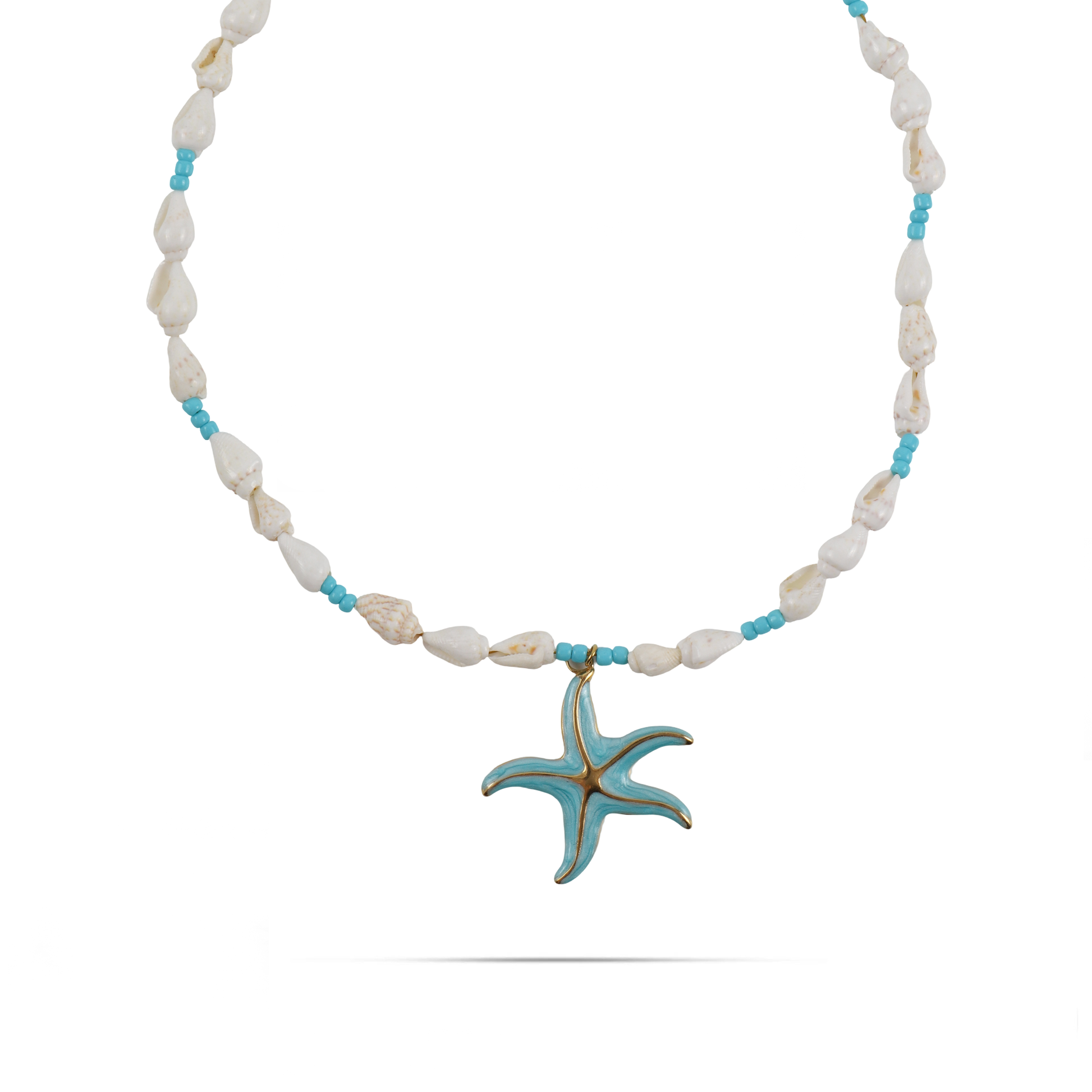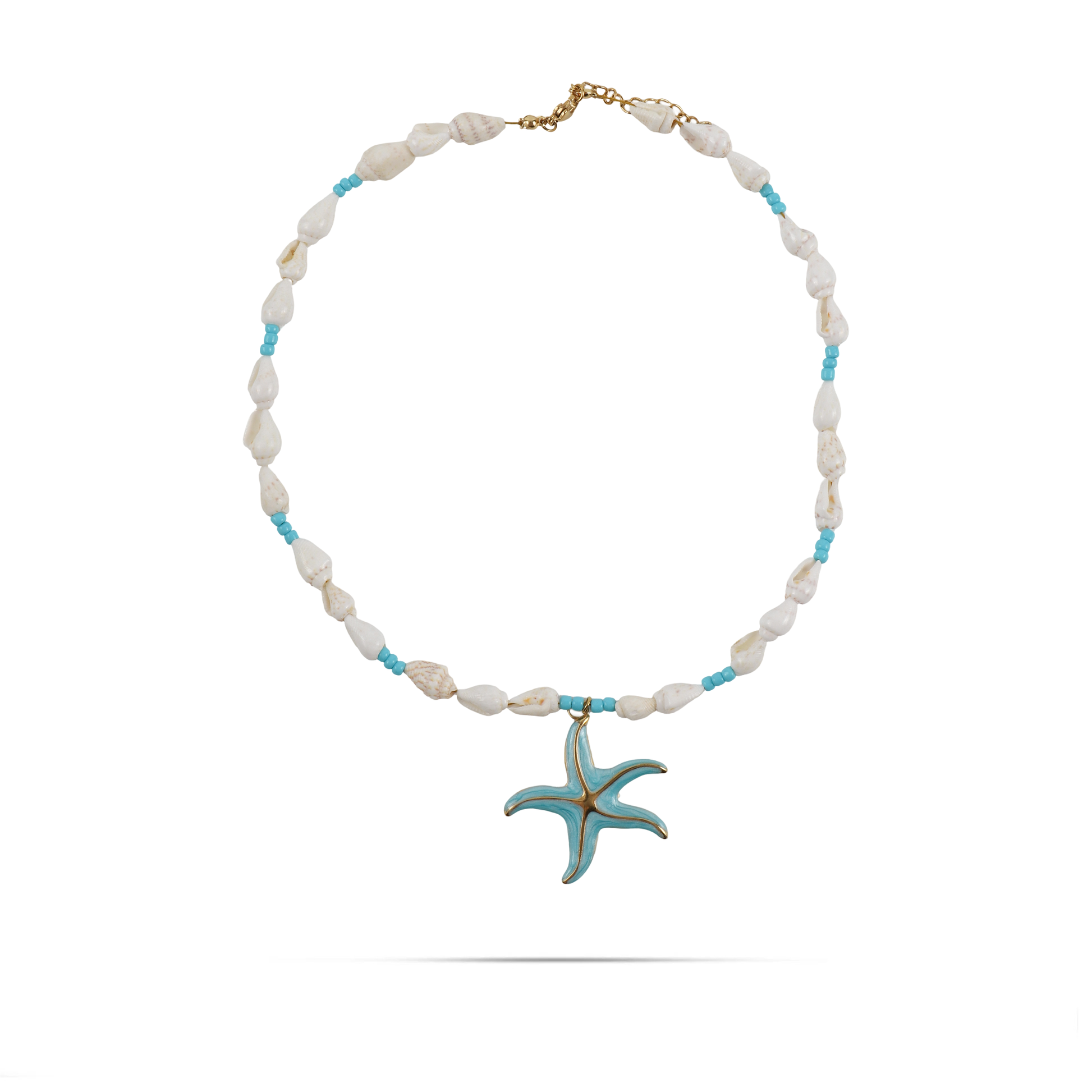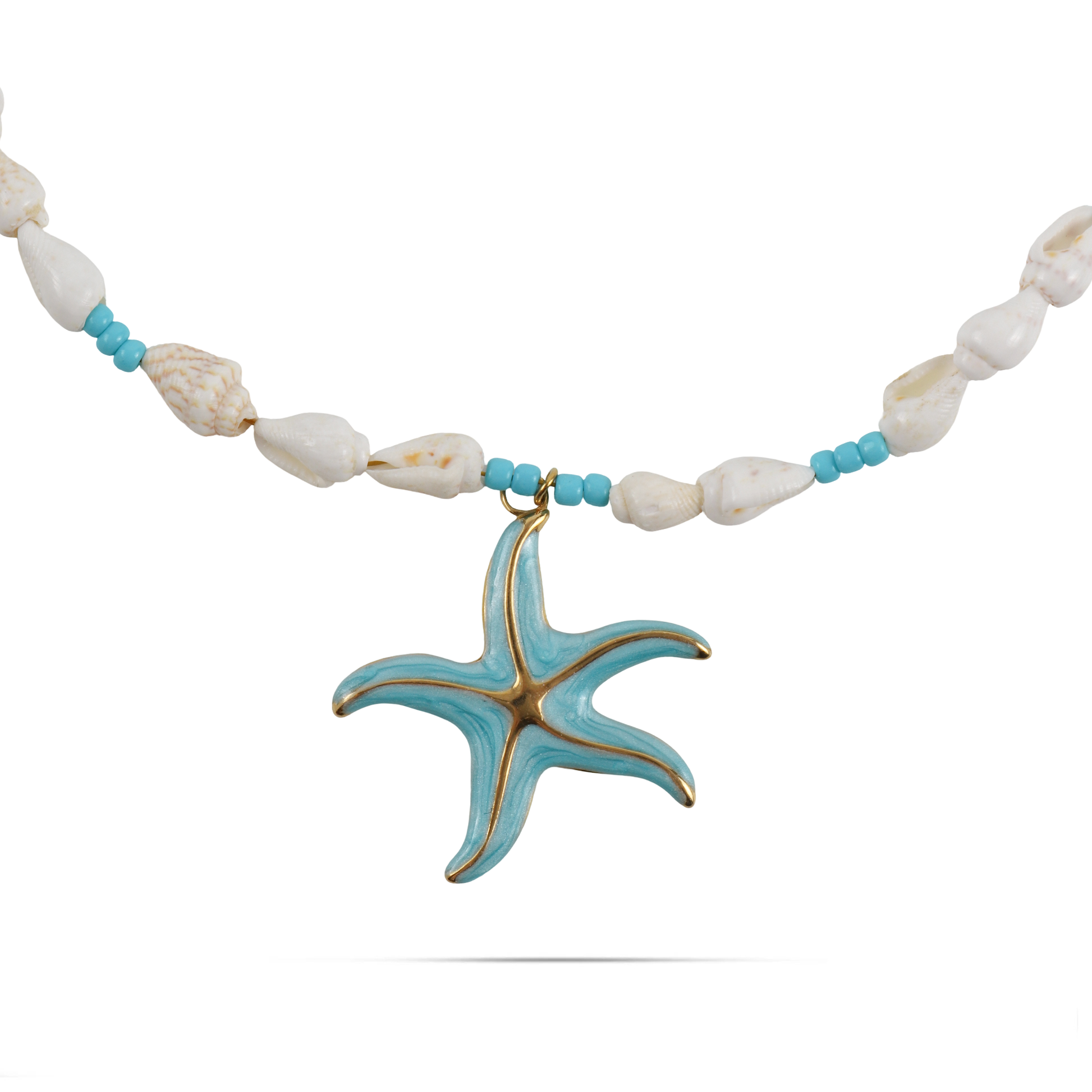 Χειροποίητο κολιέ με φυσικά κοχύλια και χάντρες Mar and Mar Jaleia Starfish από ανοξείδωτο ατσάλι
