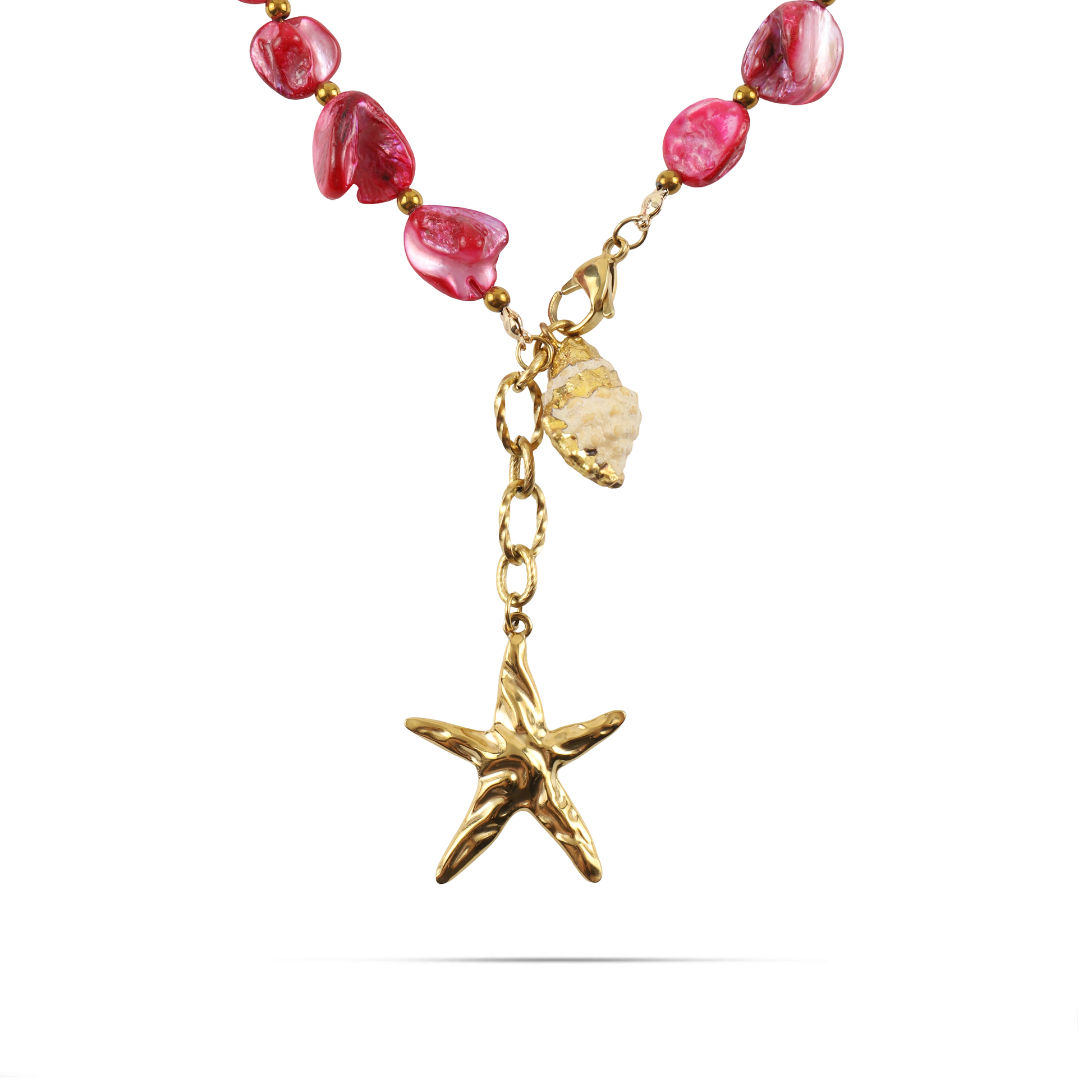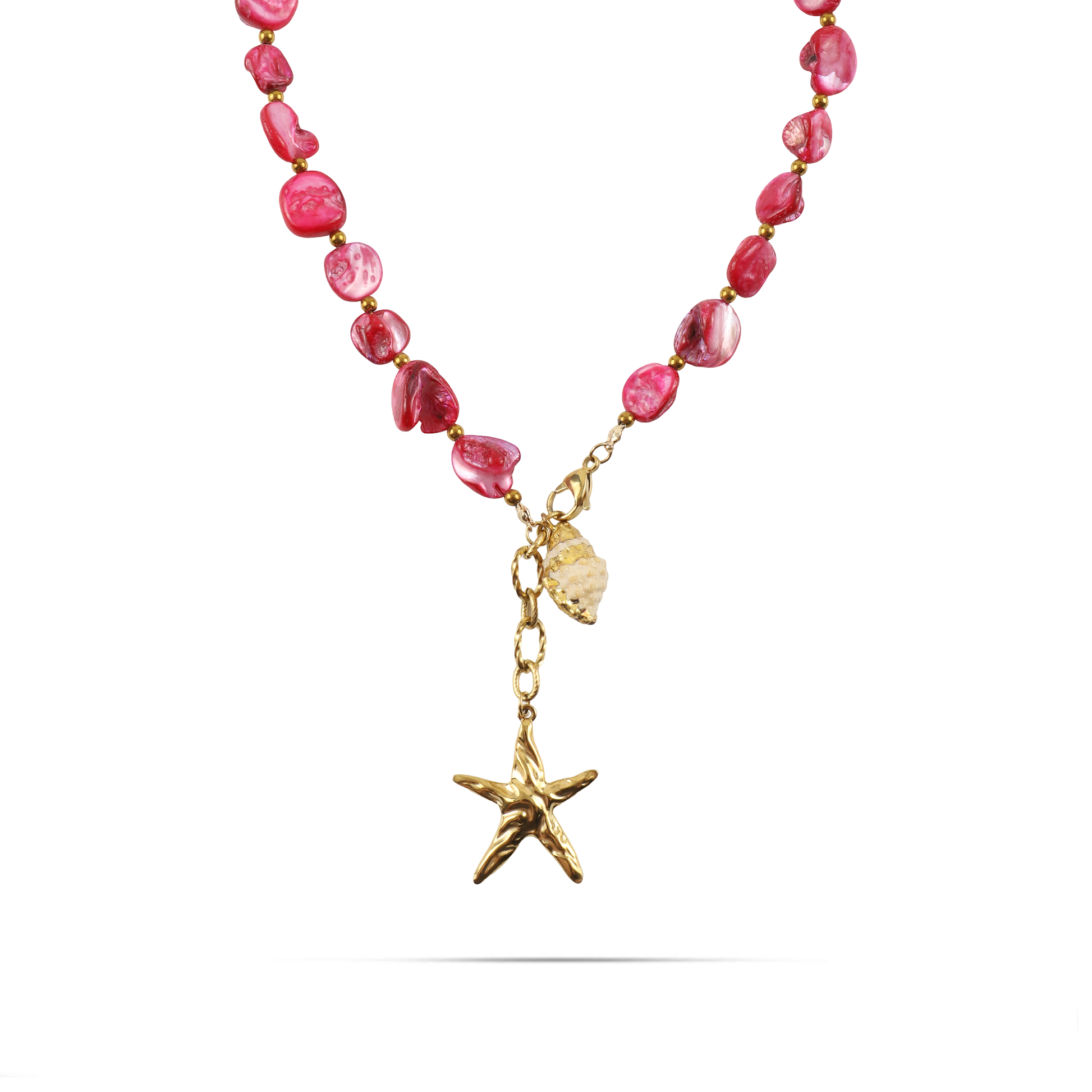 Χειροποίητο κολιέ με φυσικά κοχύλια/κοράλια Mar and Mar Coralia από ανοξείδωτο ατσάλι