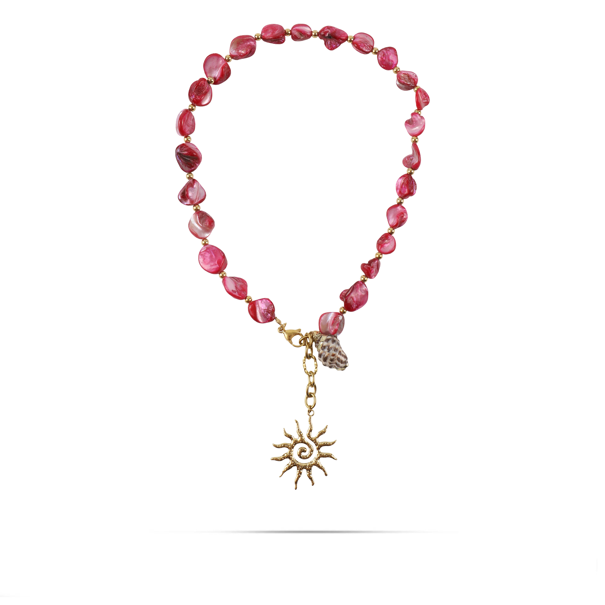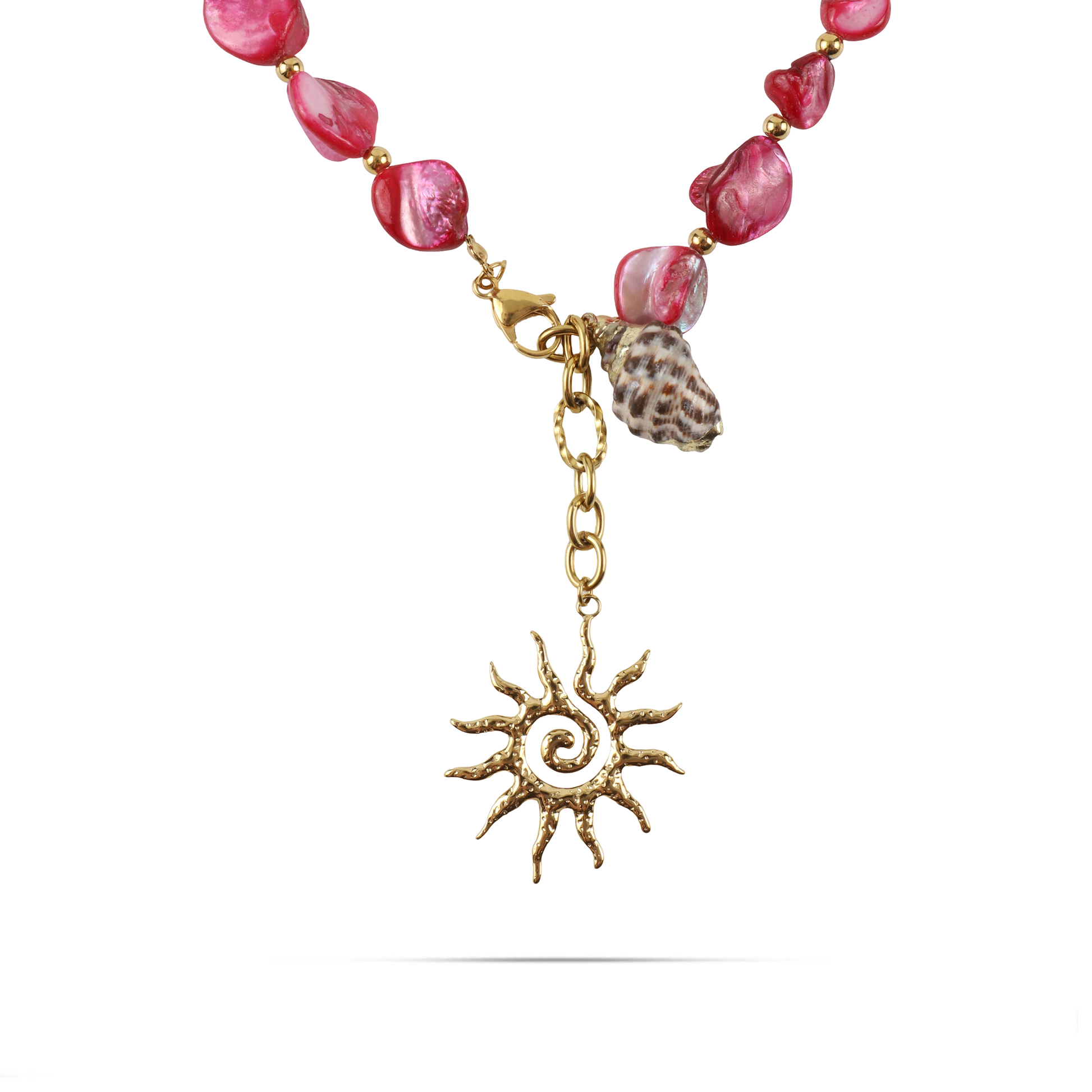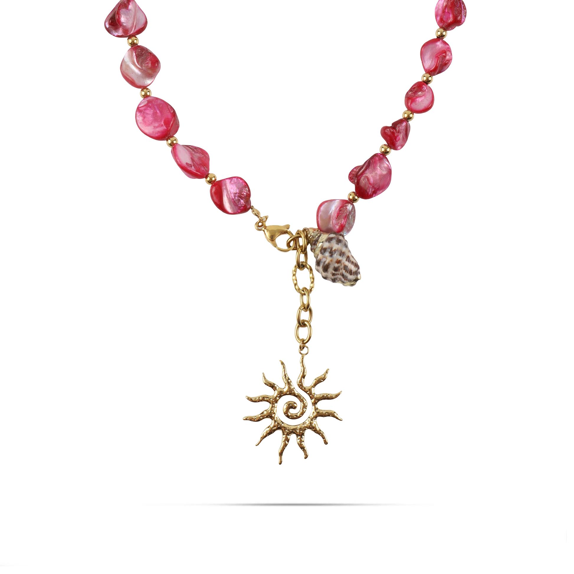 Χειροποίητο κολιέ με φυσικά κοχύλια/κοράλια Mar and Mar Coralia Sun από ανοξείδωτο ατσάλι
