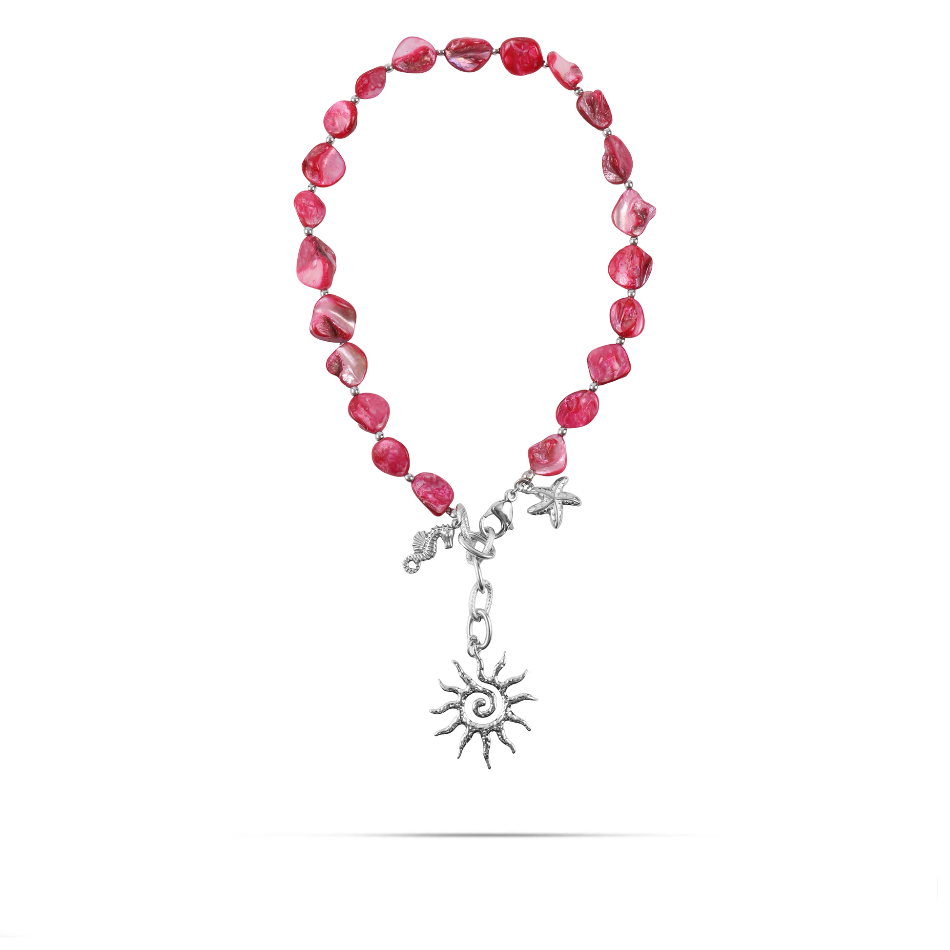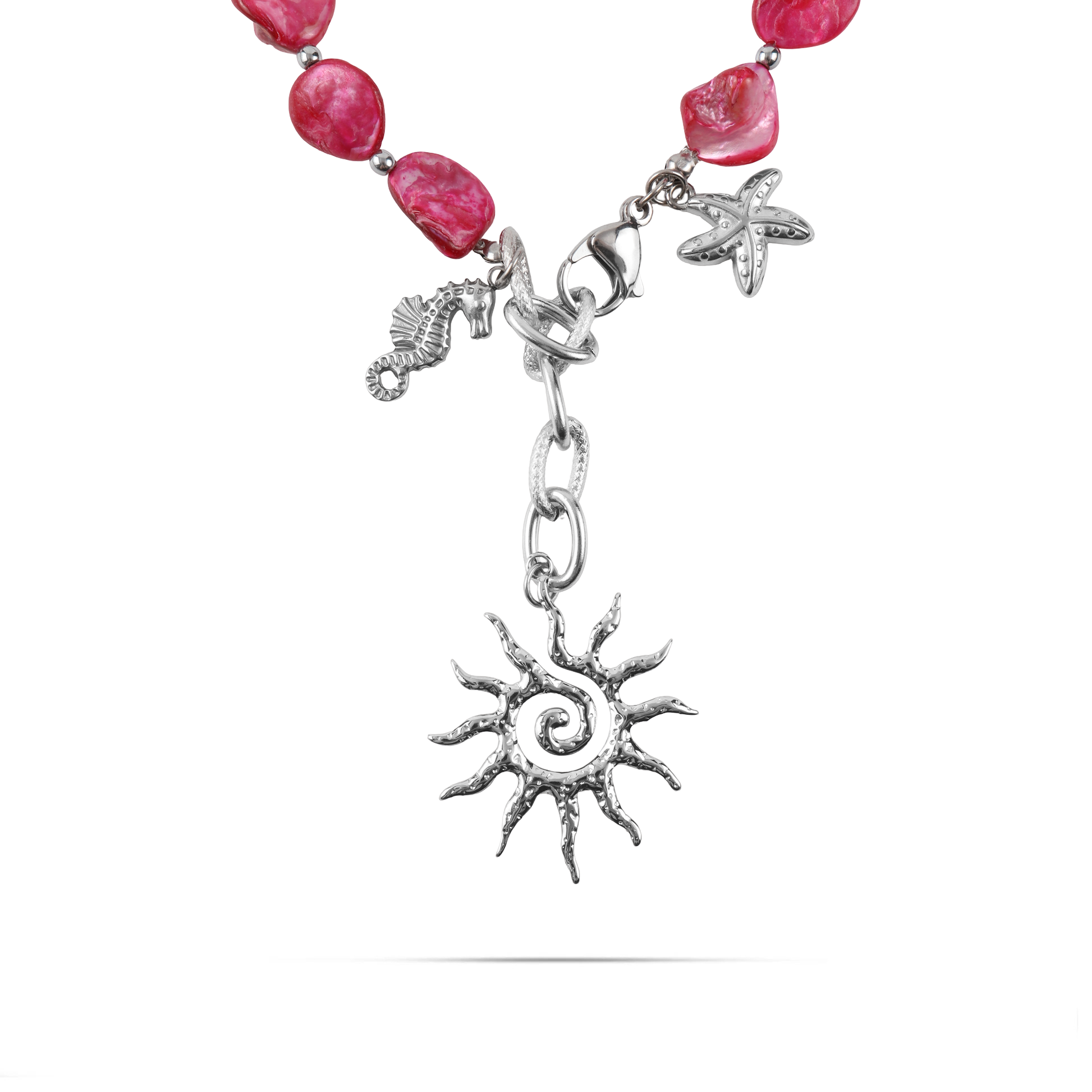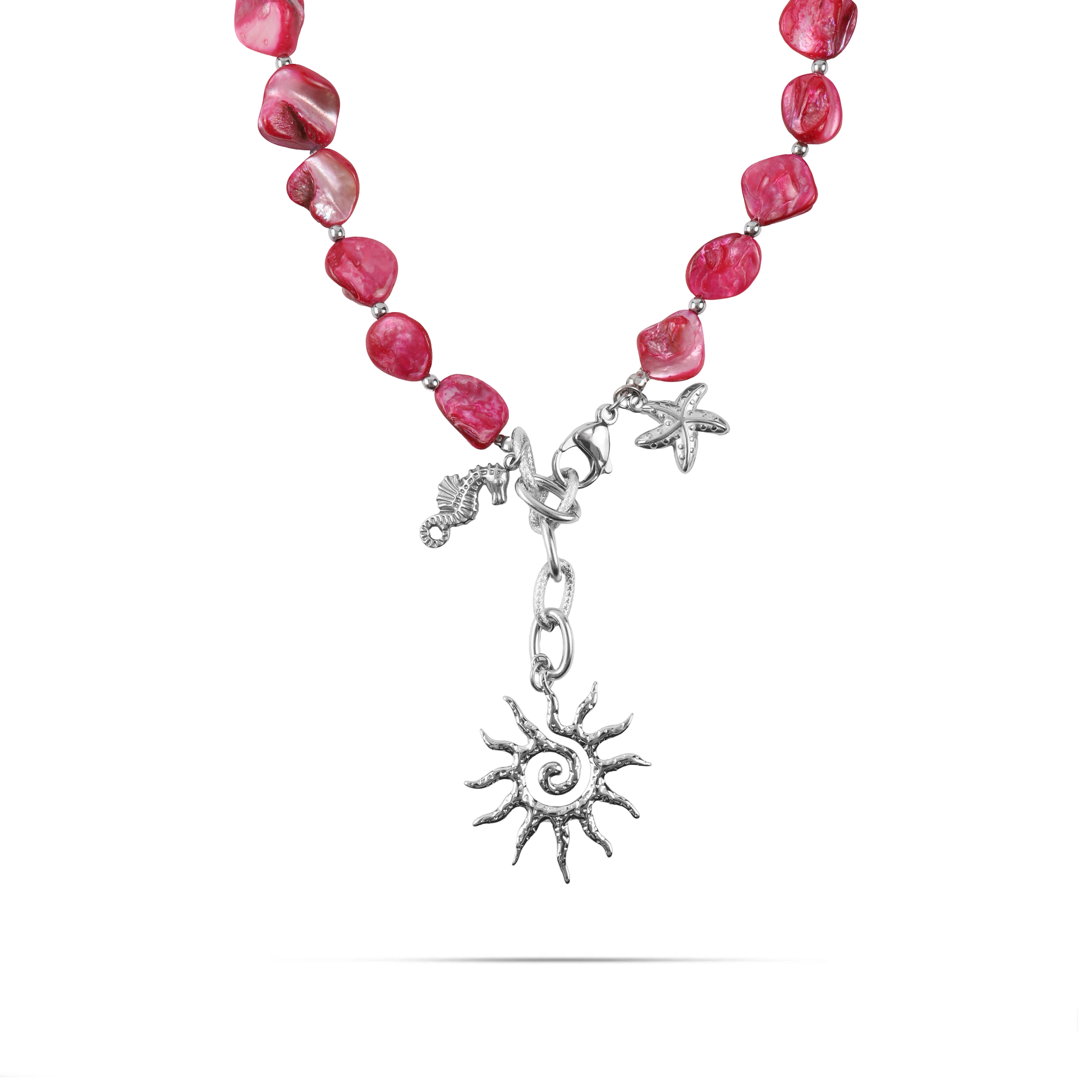 Χειροποίητο κολιέ με φυσικά κοχύλια/κοράλια Mar and Mar Coralia Sun Silver από ανοξείδωτο ατσάλι