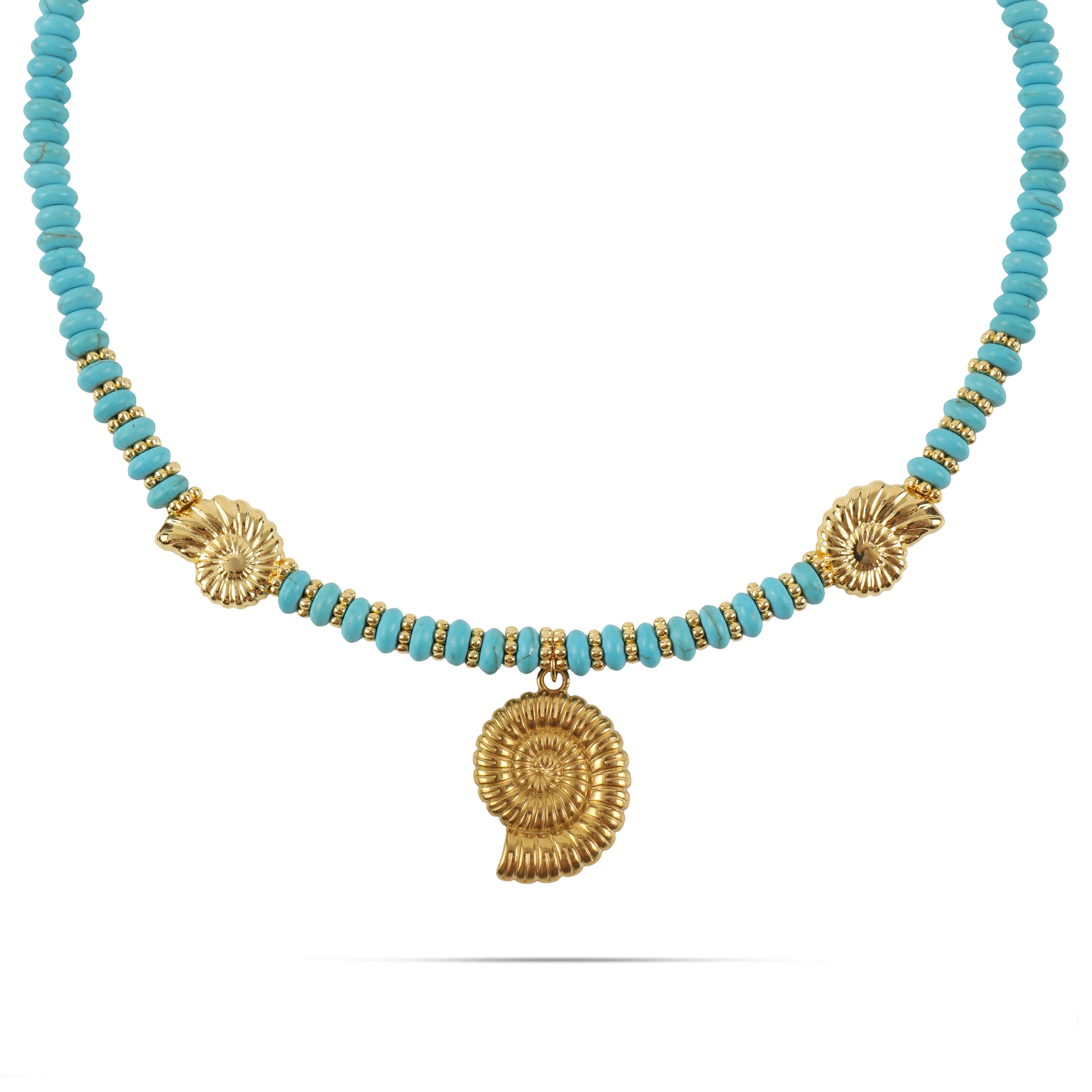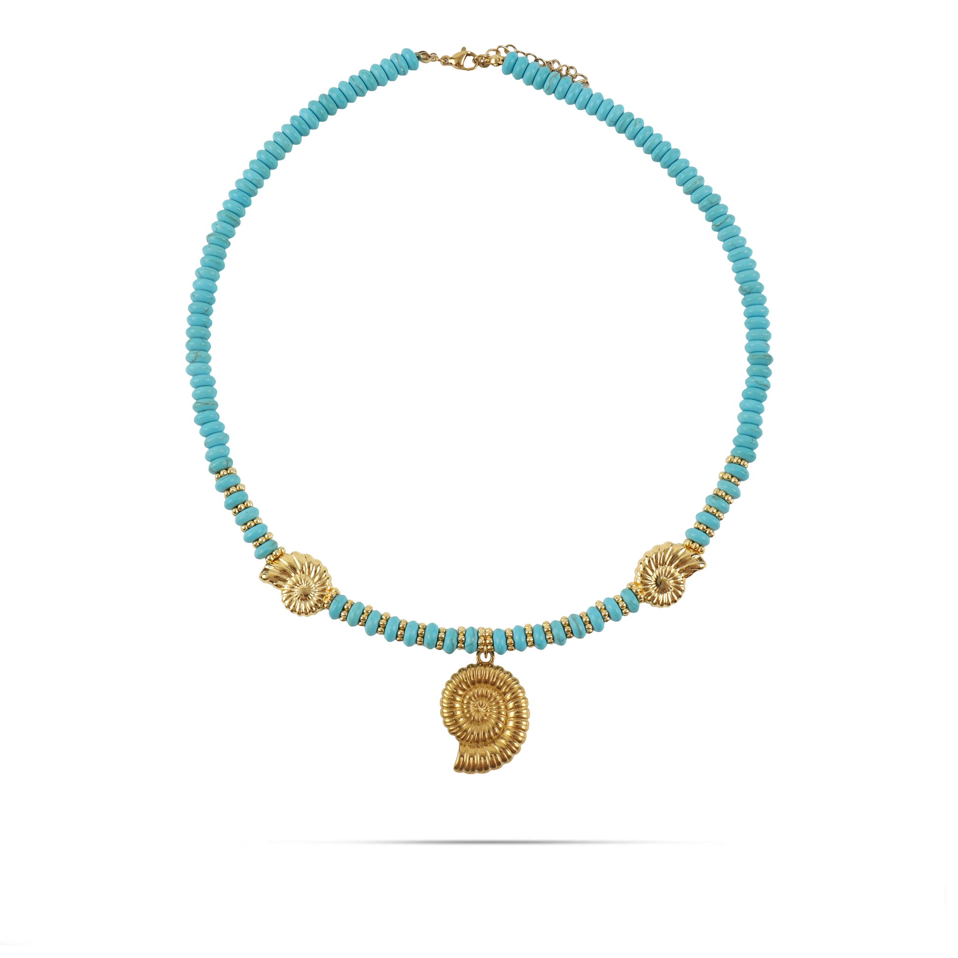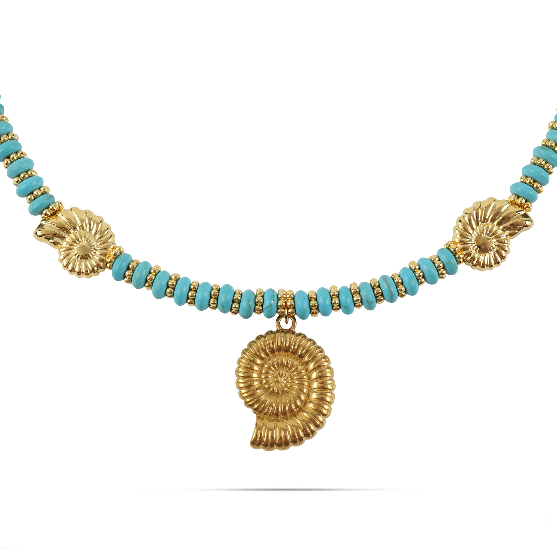 Χειροποίητο κολιέ με φυσικές ορυκτές πέτρες Χαολίτη Mar and Mar Soleina Seashell από ανοξείδωτο ατσάλι