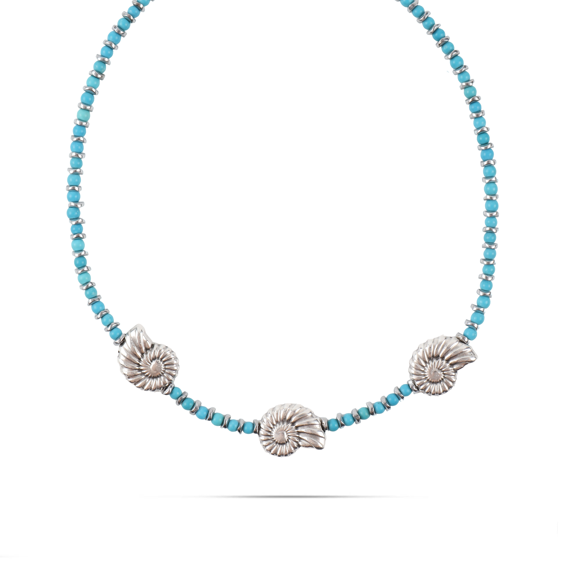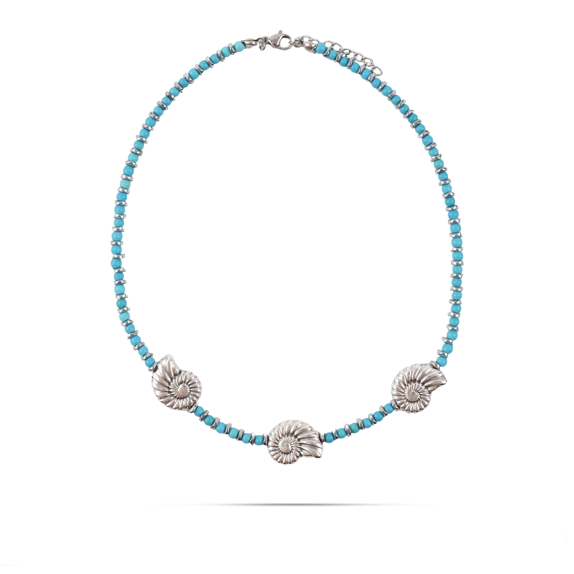 Χειροποίητο κολιέ με φυσικά κοχύλια Mar and Mar Soleina Seashell Silver από ανοξείδωτο ατσάλι