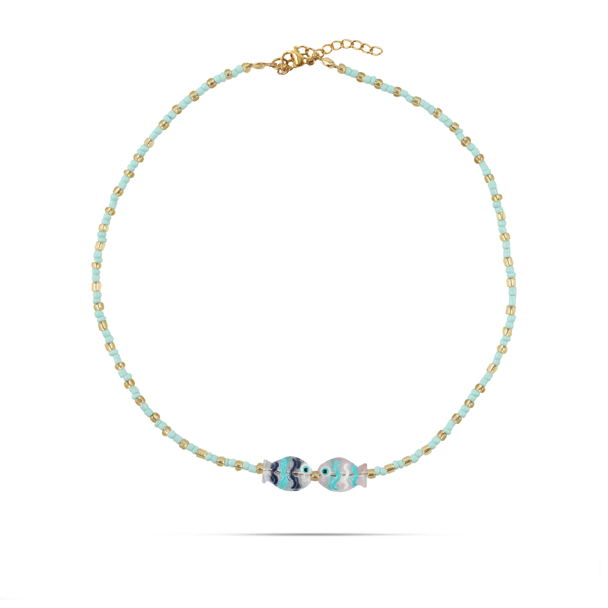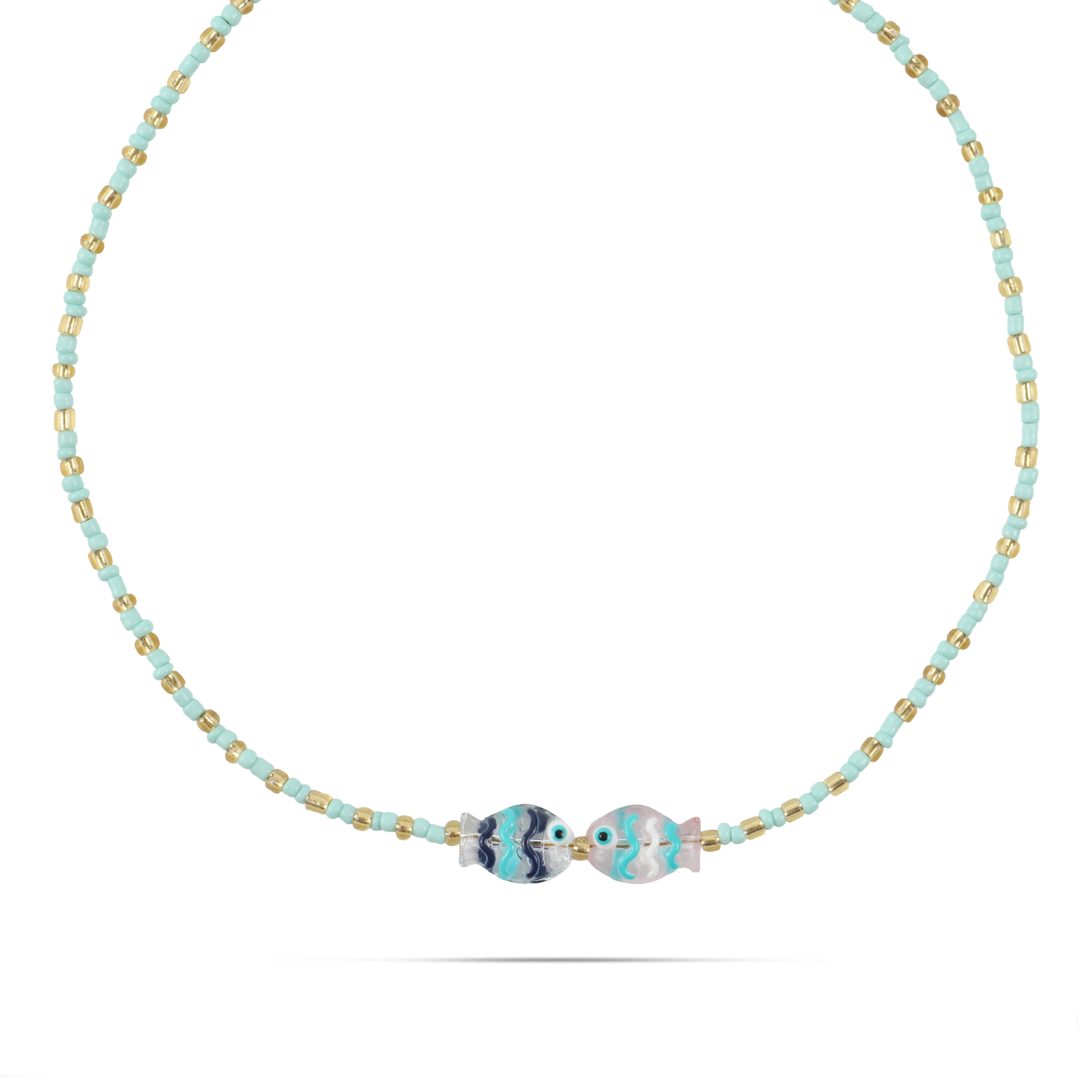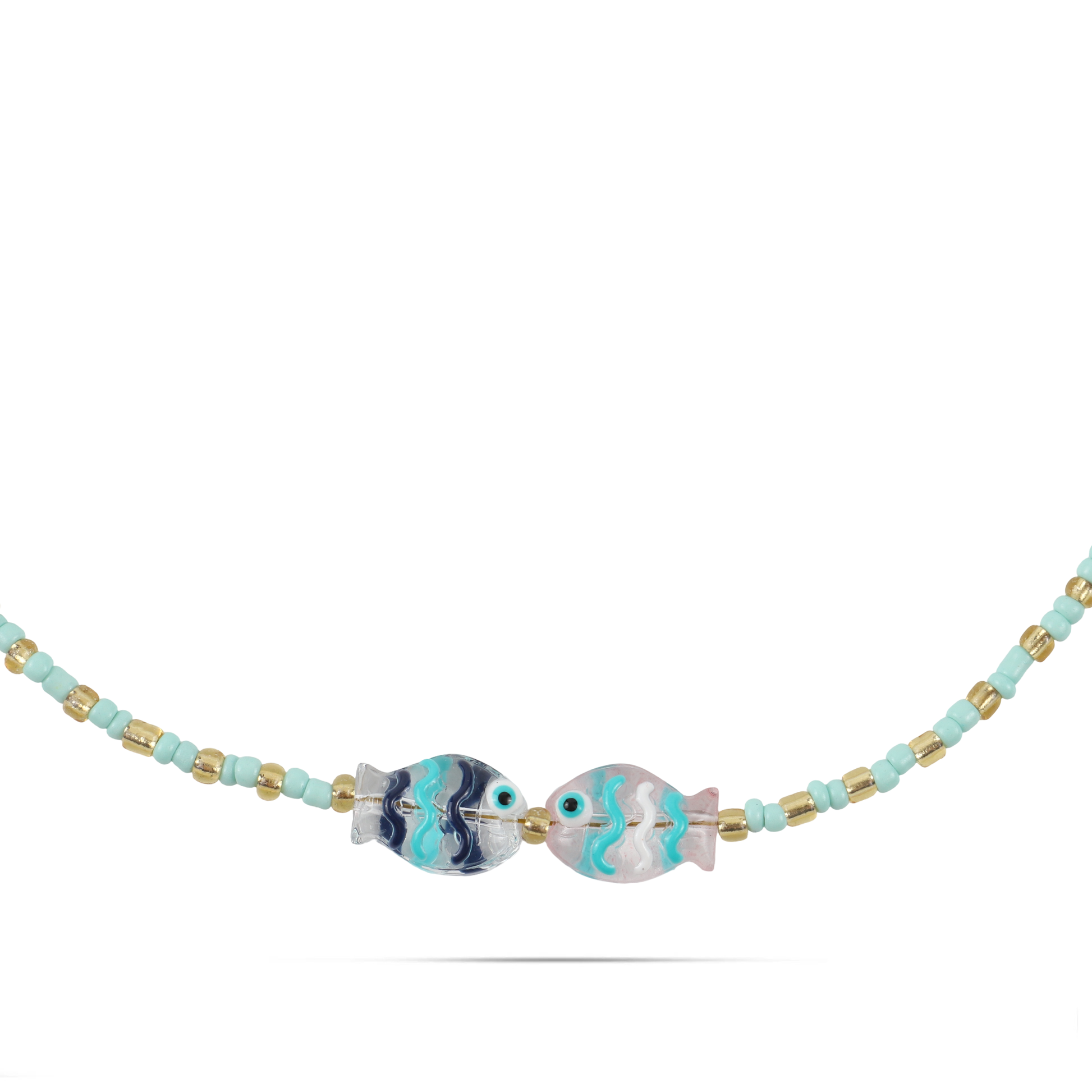 Χειροποίητο κολιέ με χάντρες και ψαράκια από Μουράνο Mar and Mar Selva (Petite) από ανοξείδωτο ατσάλι