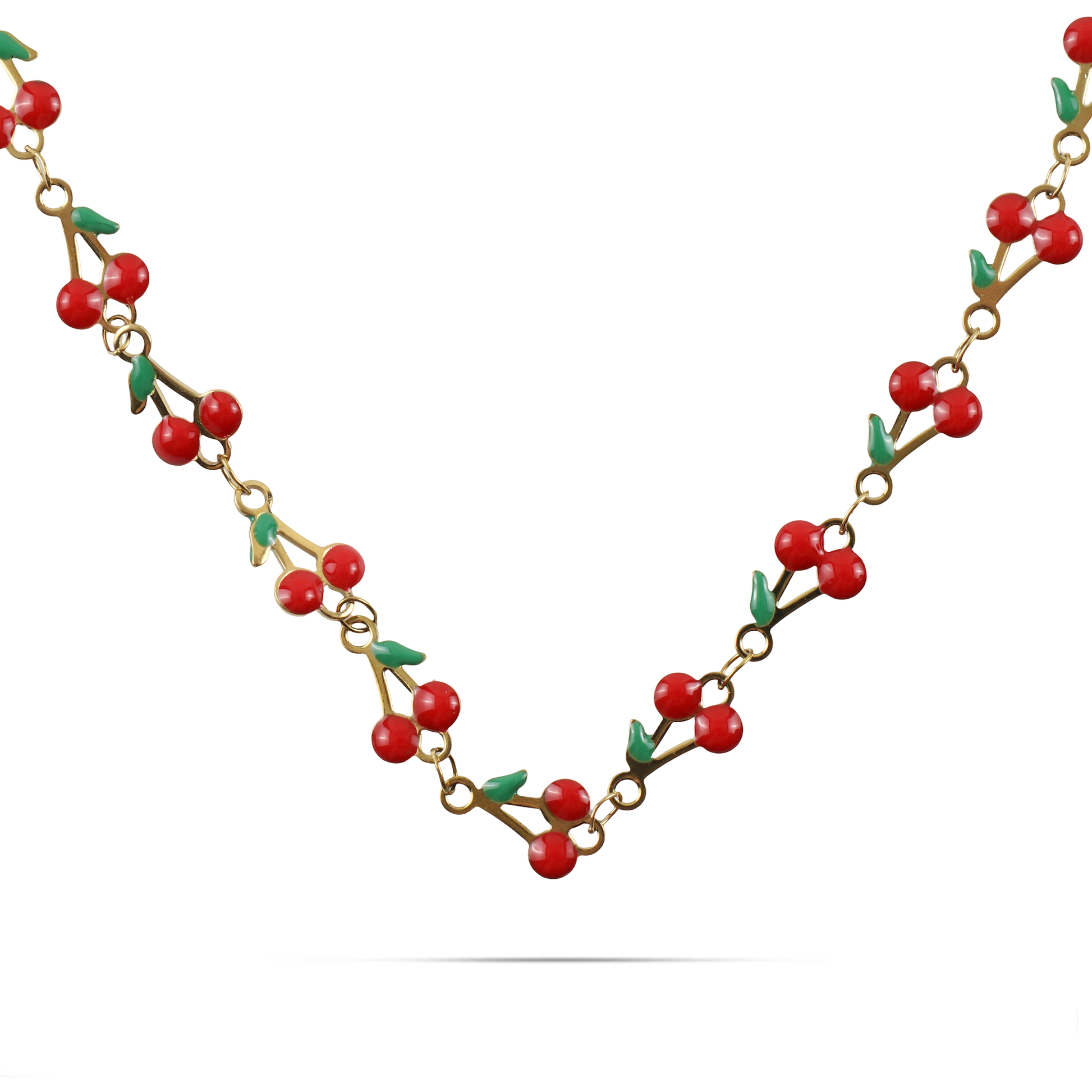 Χειροποίητο κολιέ choker με κεράσια Mar and Mar Cherries από ανοξείδωτο ατσάλι