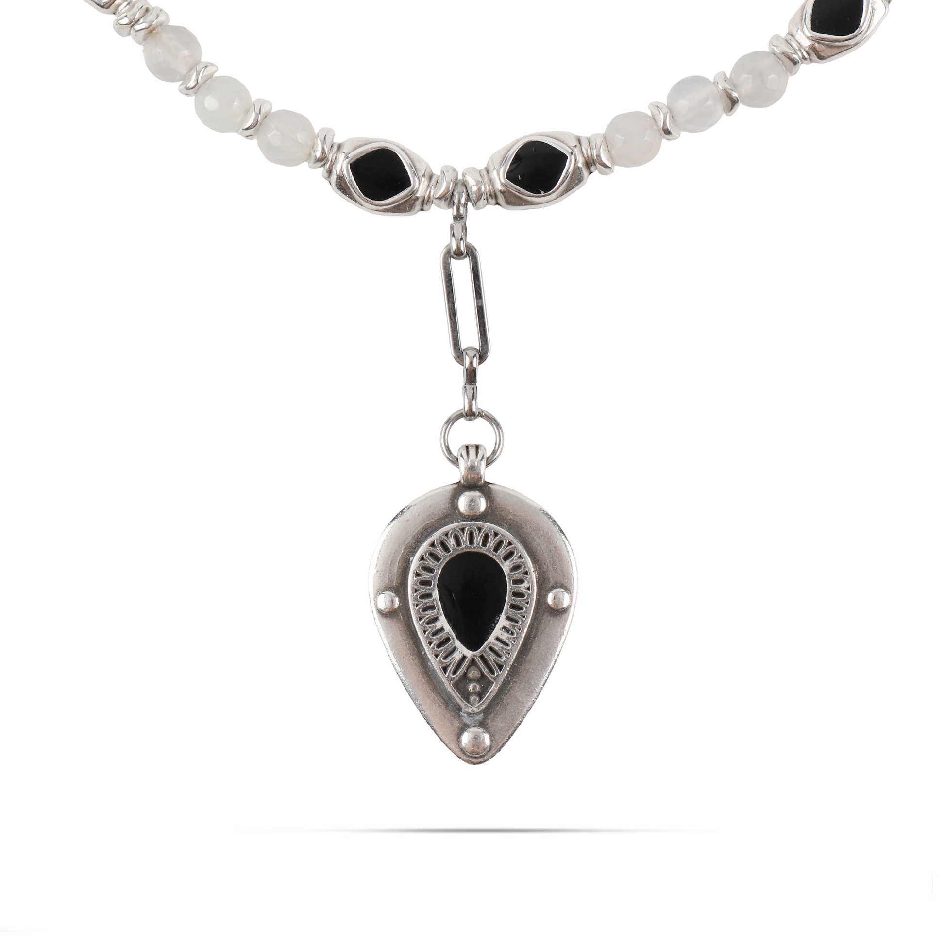Χειροποίητο κολιέ Mar and Mar Lumea (Black) με φυσικές ορυκτές πέτρες Σπεκτρολίτη από ανοξείδωτο ατσάλι