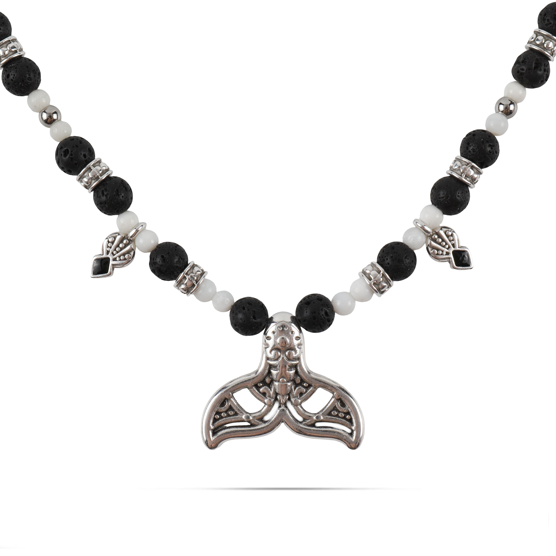 Αναβαθμίστε το στυλ σας με αυτό το εντυπωσιακό χειροποίητο κολιέ από τη σειρά Mar and Mar. Το Lustrina Black κολιέ συνδυάζει φυσικές ορυκτές πέτρες Λάβας και ένα φυσικό κοχύλι από ανοξείδωτο ατσάλι, δημιουργώντας ένα μοναδικό κομμάτι κοσμημάτων. Ιδανικό για τις επαγγελματικές σας εμφανίσεις ή για να προσθέσετε λάμψη στις καθημερινές εμφανίσεις σας.