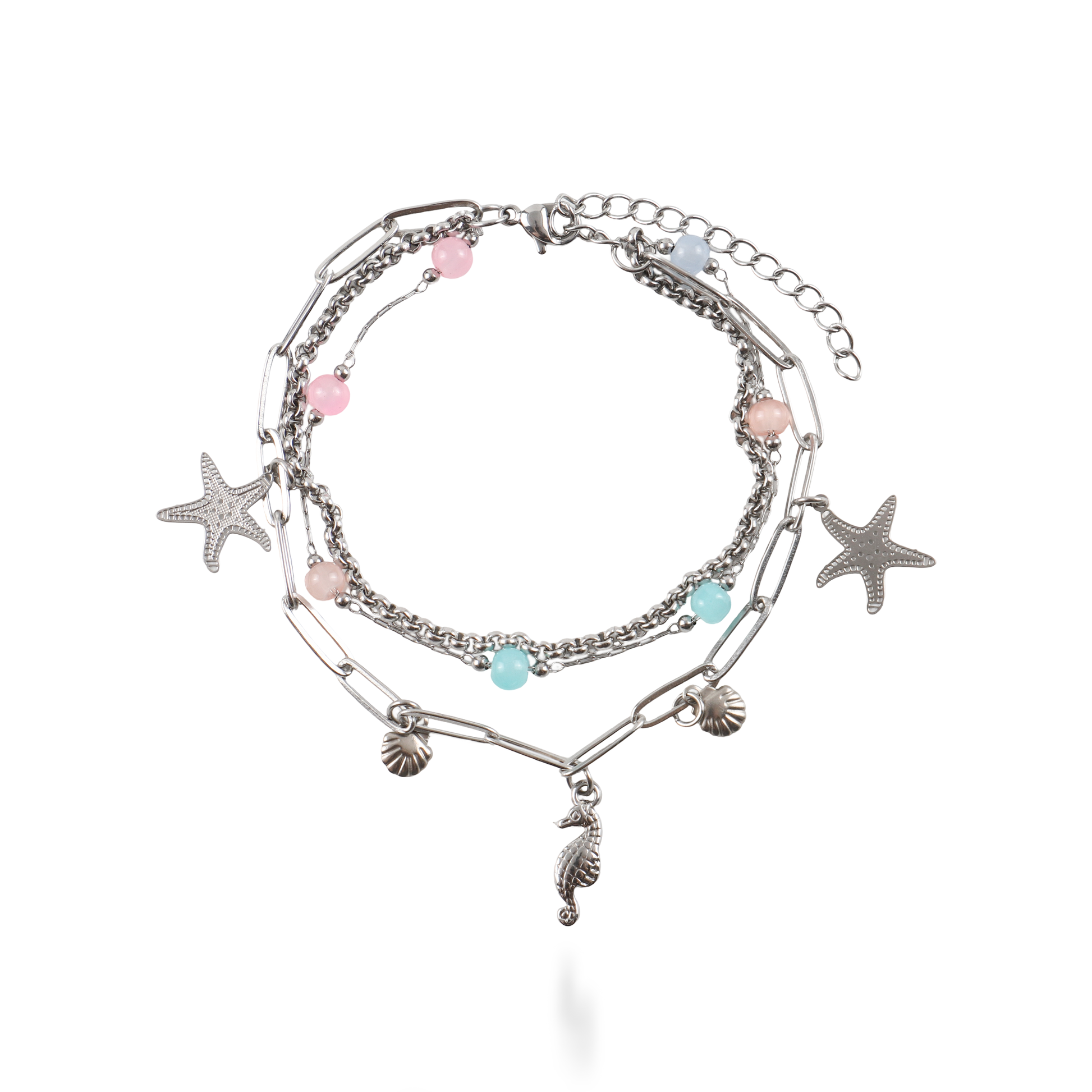 Χειροποίητο τριπλό βραχιόλι με χάντρες και κρεμαστά Mar and Mar Seona (Silver Mix) από ανοξείδωτο ατσάλι